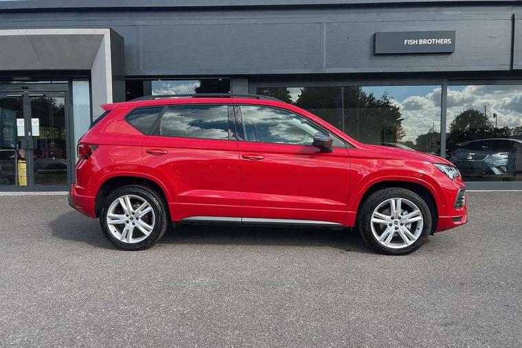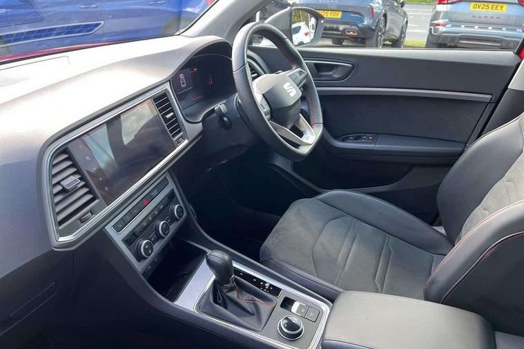 8" Digital cockpit, Colour multi-function on board computer display, Cruise control system with speed limiter, E-call, Outside temperature gauge, Progressive power assisted steering, SEAT drive profile with driving experience button - Normal, Sport, Eco and Individual mode, gearshift, steering and throttle response, Self parking functionality (includes front and rear parking sensors), Start/stop system, Tailgate, Trip computer, wired and wireless full link smartphone integration, Wireless phone charger, Steering wheel mounted audio/phone controls, Black roof rails, Black side window trim, Body colour bumpers, Body coloured wheel arch surrounds, Chrome front grille frame, Dark tinted rear windows, Daytime running lights, Door mirrors with welcome light silhouette, Dynamic headlight range control with self adjusting whilst driving, Electric adjustable/heated/folding door mirrors, Front and rear electric windows, Full LED headlamps with lens and LED front fog lamps with cornering function, Illuminated aluminium front door sill, LED 3rd brake light, LED rear tail lights with dynamic indicators, Rear exhaust tailpipe, Rear fog lights, Rear side wing doors, Rear wash/wipe, Roof spoiler, Variable front intermittent wipers, 12V socket in front, 3 seat bench in 2nd row, 60/40 split folding rear seat, Aluminium pedals, Dinamica upholstery with front comfort seats, Drawer under right front seat, Dual zone climate control, Front and rear head restraints, Front centre armrest, Front seat back storage pockets, Height adjustable driver and passenger seat with lumbar adjustment, ISOFIX points in outer rear seats with top tether anchorage points, Leather sports steering wheel and gear knob, Rear armrest and easy back seat release mechanism from boot, Single front passenger seat, Steering wheel mounted gearshift paddles, Convenience pack - Ateca, Interior lighting pack - Ateca, Navigation system pack with DAB - Ateca, Safety and driving pack with attention and drowsiness assist - Ateca, 3x3 point rear seatbelts, ABS, Traction control system (TCS), Electronic stability control (ESC) and Electronic differential lock system (XDS), Airbags - Driver and front passenger airbag with deactivation, front side, two curtain and driver's knee airbags, Electric parking brake with auto hold function, Front and rear seatbelt reminder, Front assist with autonomous emergency braking, Hill hold control, Manual rear child locks, Single tone horn, Tiredness recognition system, Tyre pressure monitoring system, Alarm, Keyless entry, Locking wheel bolts, Remote central locking, Chrome interior detailing, 18" Brillaint silver alloy wheels,