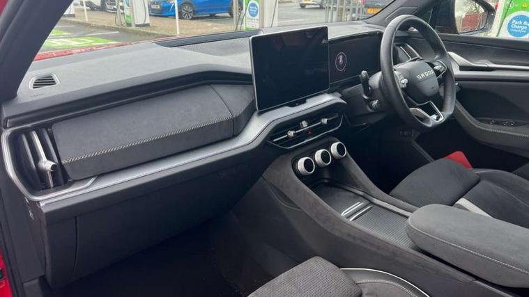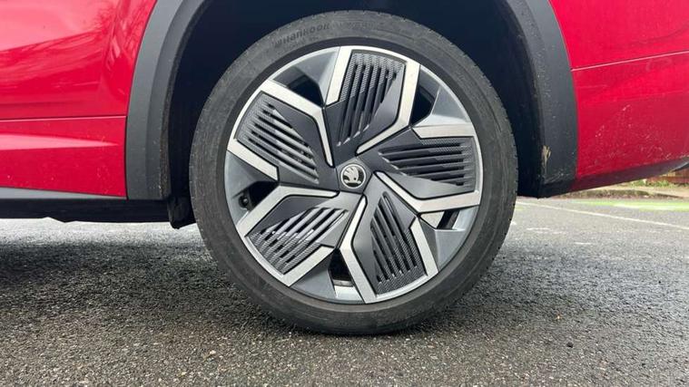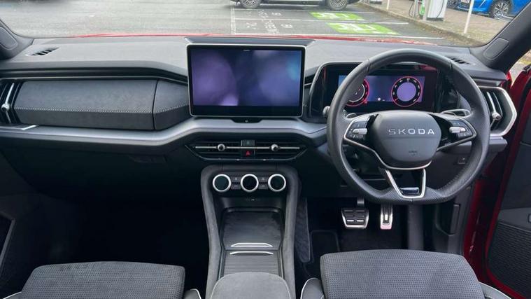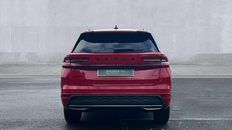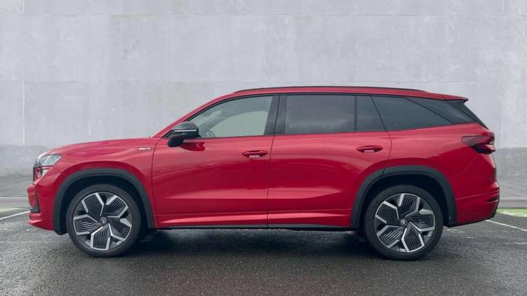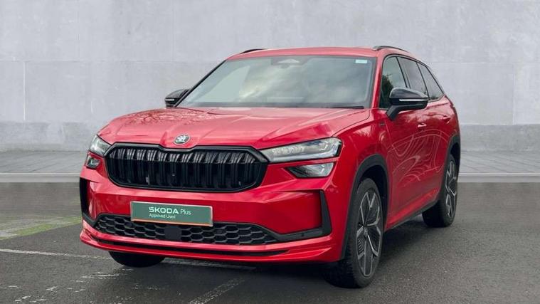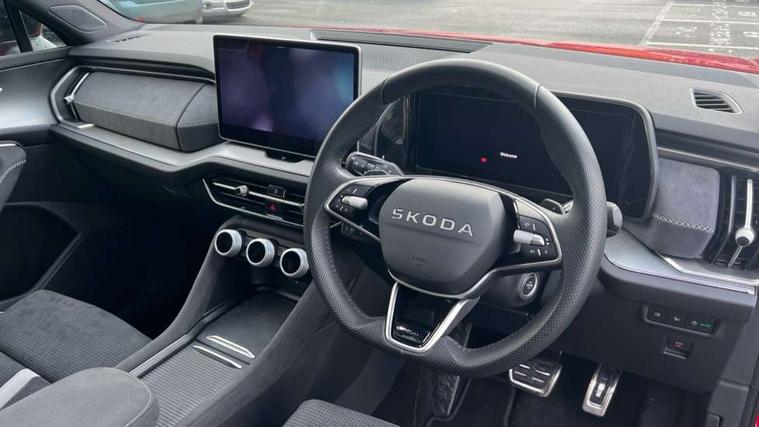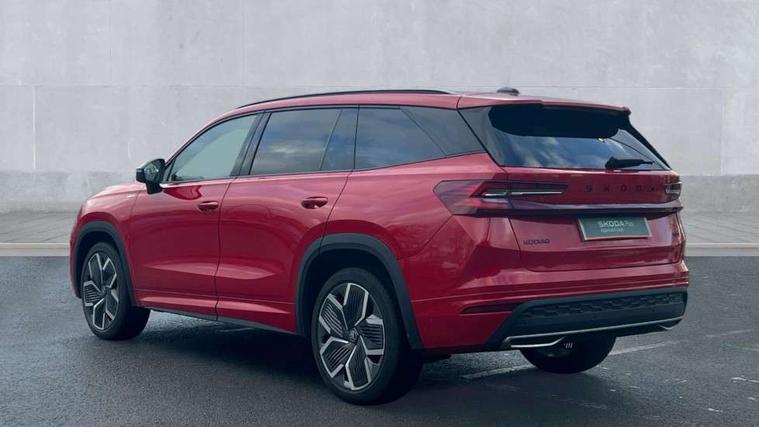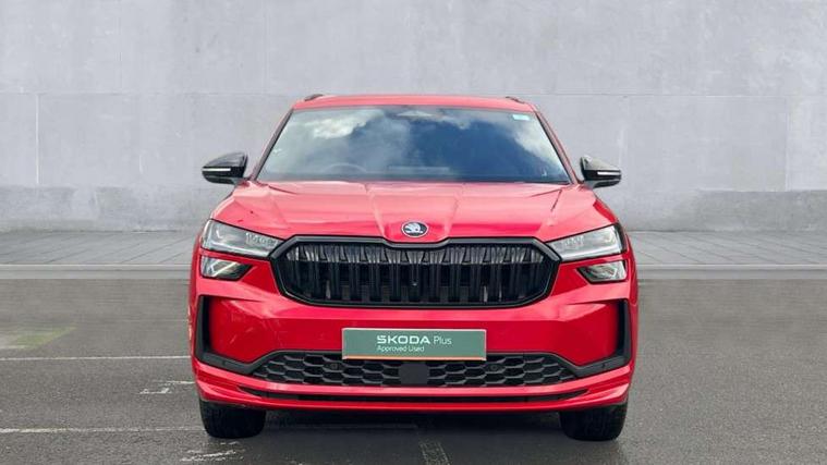 13" satellite navigation touchscreen display, Blind spot detection with door exit warning, Bluetooth system, ChatGPT functionality, Driver alert - Fatigue and drowsiness monitor, Dry display cleaner, Emergency call, Front and rear parking sensors, Front cross traffic assist, Lane assist, Off road modes, PAS, Rear traffic assist, Tailgate unlocking from outside, Traffic sign recognition, USB C Port x 2 in front centre console, Virtual Cockpit - 10.25" digital display, Voice control system, Wireless charging for two smartphones (15W) with cooling function, Wireless SmartLink for Apple CarPlay and Android Auto, Stop/start function, 2x USB-C in the rear, DAB Digital radio, Aero front windscreen wipers with intermittent function, Auto dimming rear view mirror, AWL (all weather lighting) and all weather light with cornering function, Black diffuser and decorative tailpipe with a unique dark chrome finish, Black roof rails, Black sports styling including front grille and window surrounds, Black wheel arch surrounds, Body colour door handles, Cornering light and poor weather light, Electric folding /adjustable/separted heated/folding door mirrors, auto dimming with boarding sports and memory function, Electric front and rear windows, Exterior black decorative trims, Front and rear sports bumpers including lower rear chrome strip, Gloss black door mirrors, Gloss black window frame and D pillar, Heat insulating glass in windshield, Heated rear window, Ice scraper in fuel tank cap, LED daytime running lights, LED third brake light in rear spoiler, Light assistant with automatic headlight control and coming home feature, Logo projection in door mirrors, Privacy glass, Rear roof spoiler, Rear side wing doors, Rear window wiper, Red decorative strip between rear LED lights, Safety reflectors on front and rear doors, Sportline badge on front fenders, Tailgate lettering in Black, Unique dark chrome design logo on alloy wheels, Window control switches with black trim, Windscreen wipers with rain sensor, Without engine designation, 1.5l bottle holder points in all door, 1x centre rear reading light, 2 seat bench in 3rd row, 3 configurable smart dials with 32mm coloured display, 3 seat bench in 2nd row, 4 foldable roof handles with rear coat hooks, Aluminium pedals, Ambient interior lighting - Dashboard, front-door stowage compartments, front and rear door panels and footwell lighting, Automatic gear selector on steering column, Chrome interior door handles, Driver/front passenger reading lights, Fabric headlining, Fixed bench 40:60:40 split folding backrests, Front and rear floor mats, Front centre armrest with jumbo box storage compartment, cup holder and 12V socket, Front sport seats, Height adjustable front headrests, Interior black decorative trims, Isofix child seat fittings in outer middle row rear seats and front passenger with top tether, Manually adjustable steering column, Pollen filter, Rear centre armrest with cupholders, Rear seat boot backrest release, Single front passenger seat, Skoda lettering on steering wheel, Storage pocket including mobile phone pockets on the backs of the front seats, Sunvisors with illuminated vanity mirrors, Three rear height adjustable headrests, Ticket holder on A Pillar, Tri zone climate control, Umbrella in door panel x1 made from sustainable materials, Upper and lower glovebox with card holder and coin compartment, USB C port by rear view mirror for charging only (15W), Acoustic package - Kodiaq, Performance package - Kodiaq, Sportline design selection pack - Kodiaq, Auto door release and activation of warning lights in the event of an accident, Driver and front passenger airbag with knee airbag and front passenger airbag deactivation, Electric child locks, Electronic parking brake, ESC (incl. ABS+EMD+MSR+ASR+EDL+HBA+DSR+RBS+ESBS+MCB+TSA+XDS), Front assist with braking reaction to vehicles, pedestrians and cyclists, Front disc brakes, Fuel cut off safety device, Height adjustable front 3 point seatbelts + pretensioners, Hill hold assist, Junction assist with automatic emergency braking, Rear disc brakes, Safety vest holder in door, Seat belt reminder for all seats, Three point rear seat belts, Two tone horn, Tyre pressure monitor, Alarm with interior monitoring and tilt sensor with safe function, Anti-theft wheel bolts, Immobiliser, Remote central locking with 2 keys, 20" Rila anthacite polished alloy wheel with black matte aero covers,