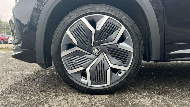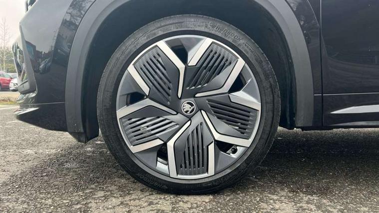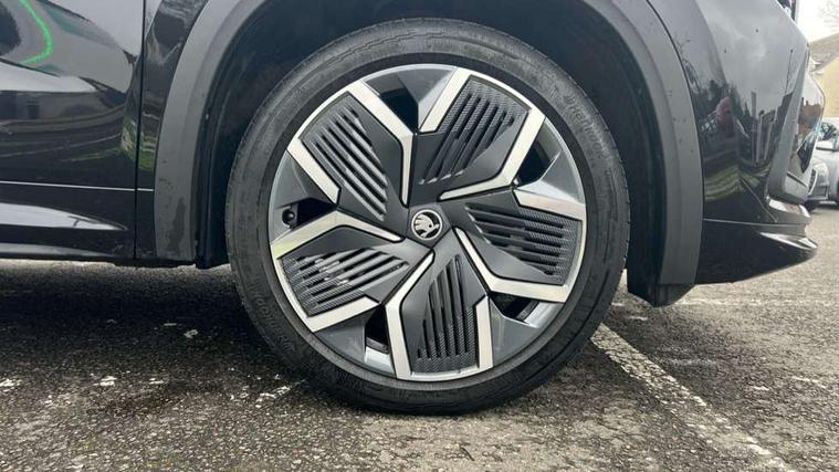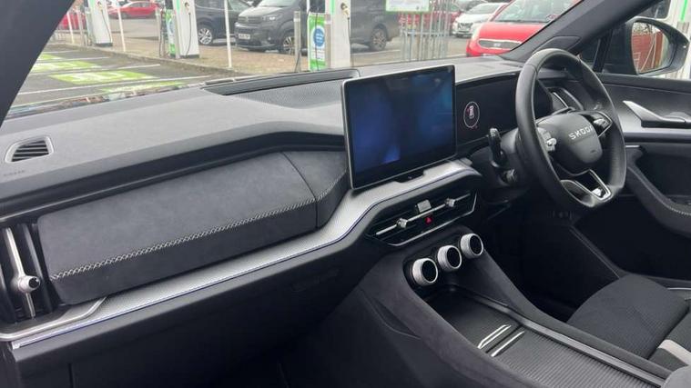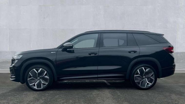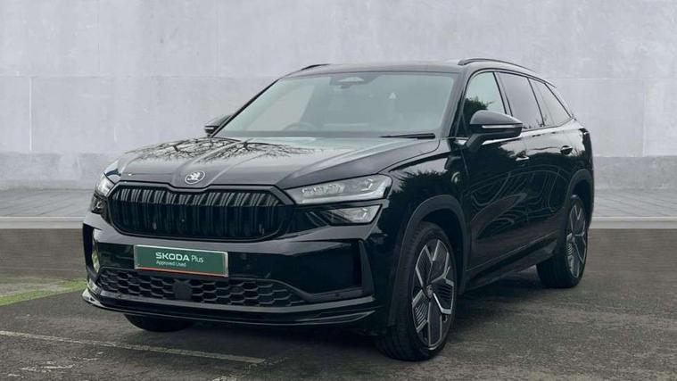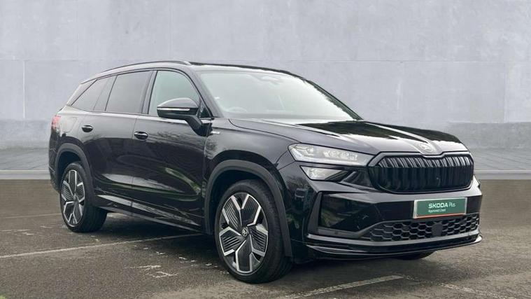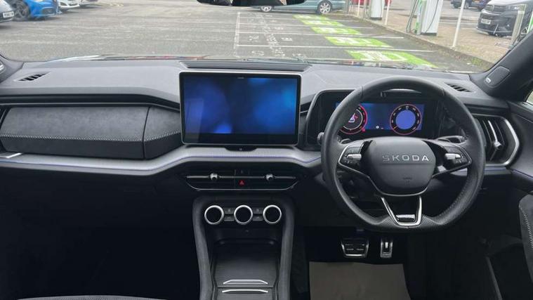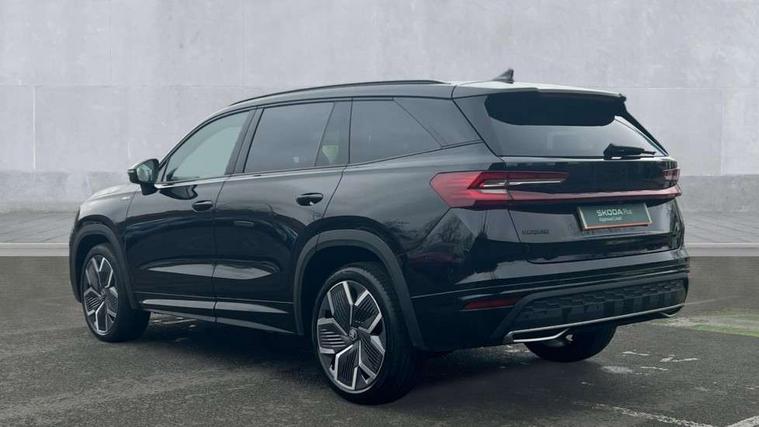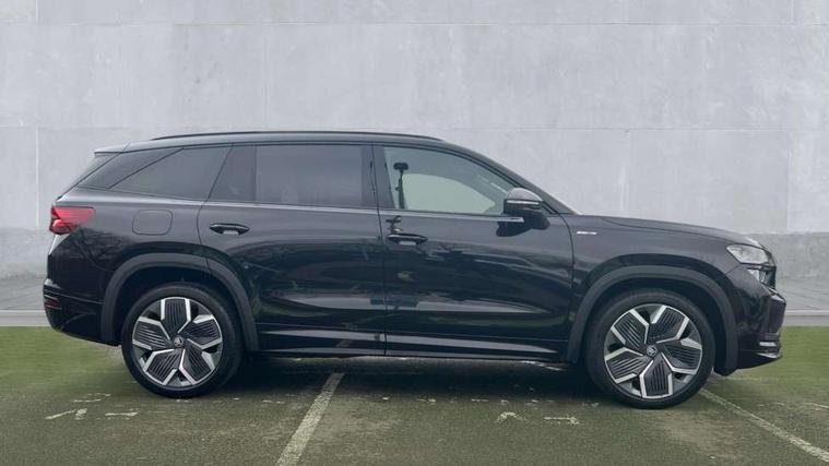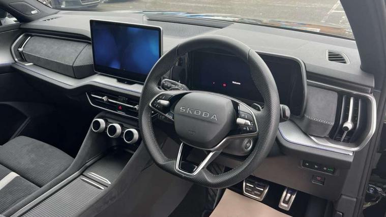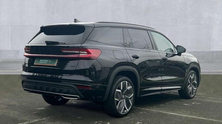 13" satellite navigation touchscreen display, Blind spot detection with door exit warning, Bluetooth system, ChatGPT functionality, Driver alert - Fatigue and drowsiness monitor, Dry display cleaner, Emergency call, Front and rear parking sensors, Front cross traffic assist, Lane assist, Off road modes, PAS, Rear traffic assist, Tailgate unlocking from outside, Traffic sign recognition, USB C Port x 2 in front centre console, Virtual Cockpit - 10.25" digital display, Voice control system, Wireless charging for two smartphones (15W) with cooling function, Wireless SmartLink for Apple CarPlay and Android Auto, Stop/start function, 2x USB-C in the rear, DAB Digital radio, Aero front windscreen wipers with intermittent function, Auto dimming rear view mirror, AWL (all weather lighting) and all weather light with cornering function, Black diffuser and decorative tailpipe with a unique dark chrome finish, Black roof rails, Black sports styling including front grille and window surrounds, Black wheel arch surrounds, Body colour door handles, Cornering light and poor weather light, Electric folding /adjustable/separted heated/folding door mirrors, auto dimming with boarding sports and memory function, Electric front and rear windows, Exterior black decorative trims, Front and rear sports bumpers including lower rear chrome strip, Gloss black door mirrors, Gloss black window frame and D pillar, Heat insulating glass in windshield, Heated rear window, Ice scraper in fuel tank cap, LED daytime running lights, LED third brake light in rear spoiler, Light assistant with automatic headlight control and coming home feature, Logo projection in door mirrors, Privacy glass, Rear roof spoiler, Rear side wing doors, Rear window wiper, Red decorative strip between rear LED lights, Safety reflectors on front and rear doors, Sportline badge on front fenders, Tailgate lettering in Black, Unique dark chrome design logo on alloy wheels, Window control switches with black trim, Windscreen wipers with rain sensor, Without engine designation, 1.5l bottle holder points in all door, 1x centre rear reading light, 2 seat bench in 3rd row, 3 configurable smart dials with 32mm coloured display, 3 seat bench in 2nd row, 4 foldable roof handles with rear coat hooks, Aluminium pedals, Ambient interior lighting - Dashboard, front-door stowage compartments, front and rear door panels and footwell lighting, Automatic gear selector on steering column, Chrome interior door handles, Driver/front passenger reading lights, Fabric headlining, Fixed bench 40:60:40 split folding backrests, Front and rear floor mats, Front centre armrest with jumbo box storage compartment, cup holder and 12V socket, Front sport seats, Height adjustable front headrests, Interior black decorative trims, Isofix child seat fittings in outer middle row rear seats and front passenger with top tether, Manually adjustable steering column, Pollen filter, Rear centre armrest with cupholders, Rear seat boot backrest release, Single front passenger seat, Skoda lettering on steering wheel, Storage pocket including mobile phone pockets on the backs of the front seats, Sunvisors with illuminated vanity mirrors, Three rear height adjustable headrests, Ticket holder on A Pillar, Tri zone climate control, Umbrella in door panel x1 made from sustainable materials, Upper and lower glovebox with card holder and coin compartment, USB C port by rear view mirror for charging only (15W), Acoustic package - Kodiaq, Performance package - Kodiaq, Sportline design selection pack - Kodiaq, Auto door release and activation of warning lights in the event of an accident, Driver and front passenger airbag with knee airbag and front passenger airbag deactivation, Electric child locks, Electronic parking brake, ESC (incl. ABS+EMD+MSR+ASR+EDL+HBA+DSR+RBS+ESBS+MCB+TSA+XDS), Front assist with braking reaction to vehicles, pedestrians and cyclists, Front disc brakes, Fuel cut off safety device, Height adjustable front 3 point seatbelts + pretensioners, Hill hold assist, Junction assist with automatic emergency braking, Rear disc brakes, Safety vest holder in door, Seat belt reminder for all seats, Three point rear seat belts, Two tone horn, Tyre pressure monitor, Alarm with interior monitoring and tilt sensor with safe function, Anti-theft wheel bolts, Immobiliser, Remote central locking with 2 keys, 20" Rila anthacite polished alloy wheel with black matte aero covers,