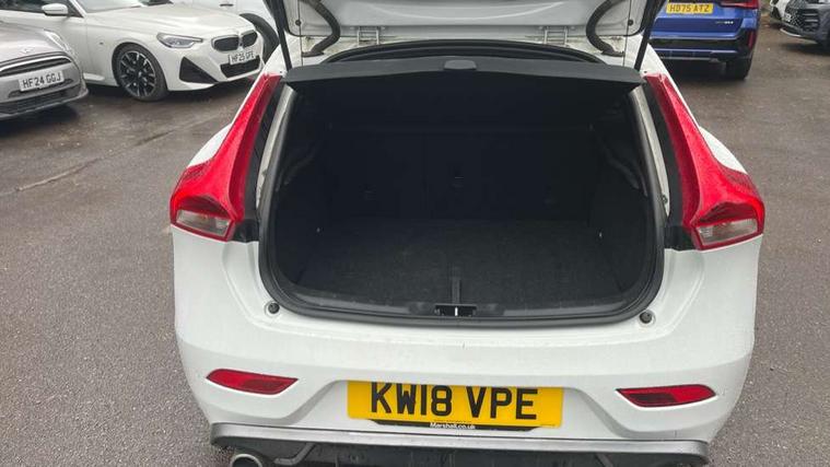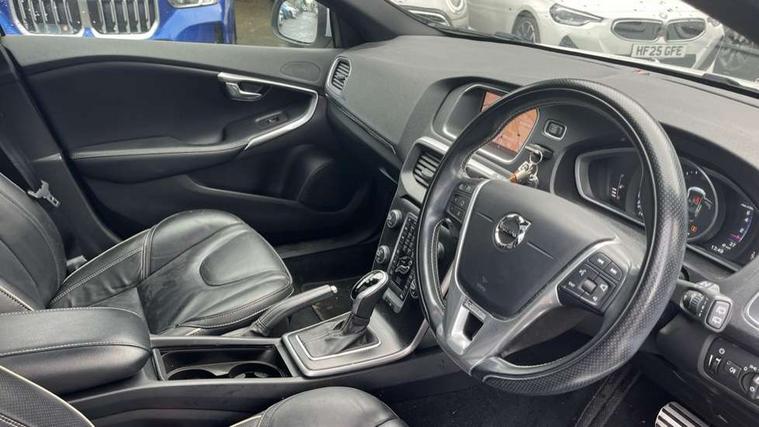 Active TFT crystal driver's instrument display, Intelligent driver information system (IDIS), Sensus navigation system, Service interval indicator, Speed limiter, Speed sensitive steering, DAB Digital radio, Steering wheel audio controls, Adaptive brake lights, Automatic folding door mirrors with ground lights, Body colour bumpers, Body colour door handles, Dark tinted rear side windows, Dual exhaust pipes, Electrically adjustable and heated door mirrors, Front and rear electric windows, Headlamp levelling, Home safe and approach lighting, LED daytime running lights, LED Headlights, Matt silver finish door mirrors, Rain sensor windscreen wipers, Rear diffuser, Rear wiper, Roof spoiler, Silk metal window trim surround, 12V socket in front + rear tunnel console, 5 headrests, 60/40 split folding rear seat, Adjustable front centre armrest, Charcoal headlining, Door sill tread plates, Electronic climate control (ECC), Folding front passenger seat with height/lumbar adjust, Footwell lights, Front cupholders, Front door step lamp, Front reading lights, Front sports seats, Front storage box, Height/reach adjustable steering column, Illuminated driver/passenger vanity mirrors, Illuminated gear knob, Isofix attachments on outer rear seats, Leather steering wheel with chrome inserts, Load cover, Lockable glovebox, Pollen filter, R Design leather sports upholstery, Rear armrest with cupholder, Rear reading lights, Rear theatre lighting, Sports floor mats, Sports pedals, Theatre dimming interior lights, Ticket holder, WHIPS - Whiplash Protection System, 5 x 3 point seatbelts, ABS+EBA, City safety braking system, Drivers knee airbag, DSTC-Dynamic Stability and Traction Control, Dual stage driver's airbag, Dual stage passenger airbag, Front/rear seatbelt pre-tensioners, Hill start assist, Passenger airbag cut-off device, Pedestrian airbag system, Side airbags, Side curtain airbags, Side impact protection, Tyre pressure monitor, Warning triangle, Anti-theft alarm including immobiliser/volume sensor + level sensor, Deadlocking system, Key integrated remote control central locking, Locking wheel nuts, Stealth aluminium trim, 18" Ixion IV diamond cut matt black alloy wheels,