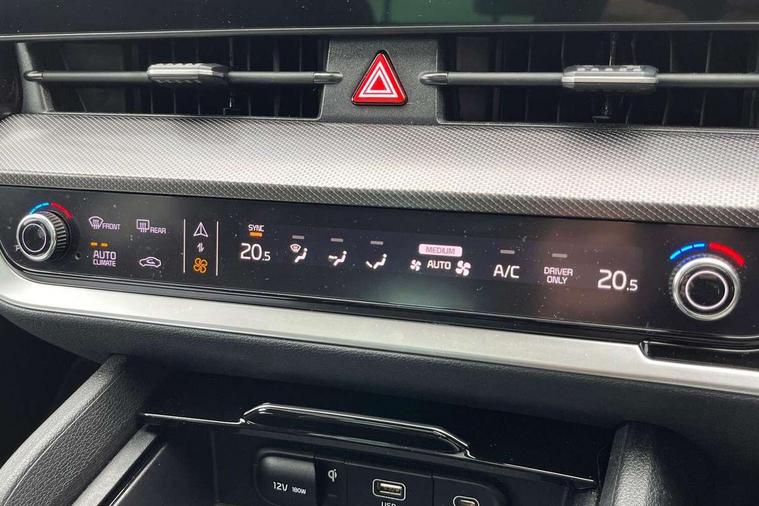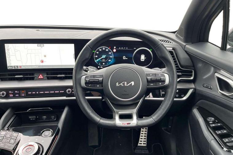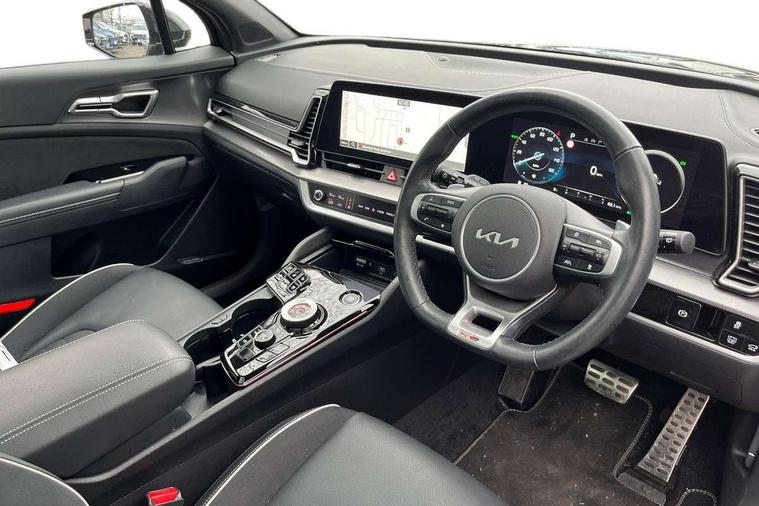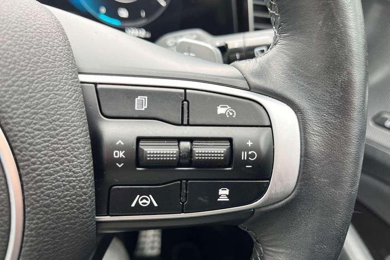 12.3" Display with navigation, 12.3" supervision colour cluster display, 360 degree around view monitor, Apple car play/Android Auto with voice control, Blind spot collision avoidance assist, Blind spot view monitor, Drive mode selector, E-call, Forward collision avoidance assist (FCA) - city/pedestrian/cyclist/junction covering, Front and rear parking sensors, Highway Driving Assist (HDA), Intelligent speed limit assist, Kia Connect (UVO), Lane Following Assist (LFA), Lane keep assist, Low washer fluid warning, Parking collision avoidance assist (PCA), Remote smart parking assist, Reversing camera system integrated into centre fascia screen, Smart cruise control with stop and go functionality, Smart power tailgate, Speed sensitive power steering, Trip computer, Windscreen washer level indicator, Wireless Smartphone charger, Intelligent Stop and Go, Bluetooth audio streaming, DAB Radio with MP3, Harman Kardon premium sound system, Rear USB port, Steering wheel mounted audio controls, USB C type charging ports on centre console, USB C type charging ports on side of front seats, USB port for connection of a media device, All round electric windows with drivers and front passenger auto up/down function, Automatic headlight control system, Automatic window defogger, Backlite glass heated with timer, Body colour and black bumper with silver accents, Body colour exterior door handles, Body colour radiator upper garnish and door garnish, Dual LED adaptive headlamps, Electric panoramic glass sunroof (Electric one touch with safety function), Electrically adjustable/heated/folding door mirrors with LED indicators, Front and rear chrome skid plates, Gloss black door mirrors, Gloss black radiator grille, Gloss black side sill and wheel arch body mouldings, Glossy black roof rack, High beam assist, Interior electrochromic mirror, LED daytime running lights, LED front fog lamps, LED High mounted stop light, LED rear combination lamp, Rain sensing wipers with aero blades, Rear fog lamp, Rear privacy glass, Rear side wing doors, Rear spoiler, Rear wiper, Satin finished beltline, Silver coloured inserts to bumpers, Tinted rear glass, Trailer stability assist, 10 way driver/8 way passenger electrically power adjustable seats, 12V power socket in front centre fascia and luggage compartment, 3 seat bench in 2nd row, 3 x passenger assist grips, 40/20/40 split folding rear seat, All-round height adjustable headrests, Ambient lighting, Black headlining, Centre console storage box, Cupholders in rear armrest, D-Shaped sports leather steering wheel and perforated inserts with GT-Line logo, Door courtesy lamps, Drink holder at centre armrest, Driver and front passenger side sunvisors with illuminated vanity mirrors, Driver seat memory function, Drivers seat power lumbar support, Front and rear door storage, Front seat and rear pockets, Front/rear centre armrests, Gear shift indicator, Glovebox illumination, Heated front and outer rear seats, Heated steering wheel, Interior door lock/unlock function, ISOFIX Child seat top tethers and anchor fixings outer rear seats, LED interior personal lamp, LED lighting in overhead console, Luggage area LED light, Luggage area load cover, Luggage net with hooks, Metal paint interior door handles, Paddle shift controls, Rear cabin light, Rear coat hooks, Single front passenger seat, Sports pedals, Suede leather upholstery, Three zone climate control, Tilt/telescopic adjustable steering wheel, Ventilated front seats, Ventilation ducts to rear compartment, Active front headrests, All round 3-point seatbelts, Anti-lock braking system (ABS), Dual front side airbags, Dual horn, Electronic parking brake, Electronic stability control with downhill brake control, Front passenger airbag cut-off switch, Front seatbelt pretensioners + load limiters, Height adjustable front seatbelts, Hill start assist control (HAC), Impact sensing auto door unlocking, Multi collision brake assist, Rear door child safety locks, Rear seat alert system, Traction control, Twin curtain airbags, Twin front airbags, Tyre pressure monitoring system, Advanced anti-theft system including immobiliser and alarm, Door deadlocks, Engine Start/Stop Button with Smart Entry System, Locking wheel nuts, Speed sensitive auto door locking, Visible vehicle identification number, Aluminium pattern finish centre fascia and door garnish, 18" GT-Line alloy wheels, Michelin tyres, Tyre mobility kit,