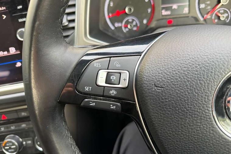 'Lights On' Reminder warning buzzer, 2 USB connection charging sockets, Adaptive cruise control with front assist, radar sensor controlled distance monitoring, city emergency braking, App-Connect, Automatic start/stop system, Bluetooth telephone and audio connection for compatible devices, Car information display, Driver tips and journey analysis, Lane assist, Multifunction computer with visual gear change recommendation for fuel consumption, Service interval indicator, Think blue trainer driver tips and journey analysis, Warning sound and light for doors and tailgate open, Warning sound and light for front seatbelts unfastened, We Connect Go Dongle, Battery regeneration during braking, DAB Digital radio, Multi device interface (MDI) with USB connection, Music playback - MP3, WMA and AAC files, Premium USB cable in choice of either Apple or Android smartphone compatibility, SD card slot, Simultaneous pairing of 2 compatible mobile devices, SMS functionality - read, compose and send SMS messages using touch-screen display, Title and cover art display, Auto dimming interior rear view mirror, Automatic hazard lights activation under emergency braking, Black grained lower door protectors, Black grained wheel arches, Body colour bumpers with silver metallic underbody fascia, Body colour door handles, Chrome trim on upper and lower radiator grille, Dusk sensor, Electrically foldable, adjustable and heated door mirrors with puddle lights and reverse activated kerb-view adjustment on passenger's door mirror, Front and rear electric windows, Front windscreen wiper with intermittent wipe and 4 position delay, Fully galvanised body, Heated rear window, High level 3rd brake light, LED rear number plate lights, Manual coming/automatic leaving home lighting function, Rain sensor, Rear wash/wipe with intermittent wipe setting, 12V socket in centre console storage area, 2 front reading lights, 3 rear head restraints, 4 load lashing points in luggage compartment, Climate control - 2 zone electronic air conditioning with automatic air recirculation and allergy filter, Drawer under drivers seat, Front centre armrest with storage compartment, longitudinal and height adjustable and two rear air vents, Front cupholders x 2, Front seat back storage pockets, Glovebox, Height adjustable front seats, Height/reach adjust steering wheel, Illuminated vanity mirrors, Instrument lighting, white adjustable panel illumination, Interior light delay, Isofix easy fit child seat preparation for 2 outer rear seats, Load through provision with single cup holder when folded down, Luggage compartment cover, removable, Luggage compartment lighting, Split folding rear seat backrests with centre armrest, Storage compartment in left and right luggage area, Storage compartment in rear doors, Storage compartments in driver and front passenger doors, 3 rear three point seatbelts, ABS, Curtain airbags, Driver and front passenger safety-optimised head restraints, Drivers and front passengers airbags with passengers deactivation switch, Electronic parking brake with auto hold, Electronic stability control (ESC) includes ASR, EDL, EDTC and trailer stabilisation function, Front seat side impact airbags, Predictive pedestrian protection, Rigid safety cell with front and rear crumple zones, Three point height adjust front seatbelts + pretensioners, Tyre pressure loss indicator, Ventilated front and rear disc brakes, Volkswagen roadside assistance, Alarm with interior protection and deactivation via infotainment system, Electronic engine immobiliser, Remote central locking with 2 remote folding keys, Limestone grey decorative inserts in dash and door panel, Steel space saver spare wheel,