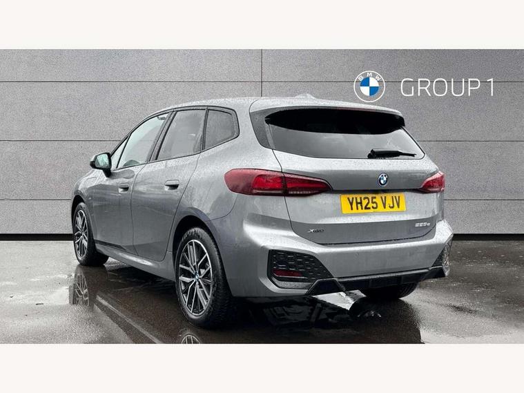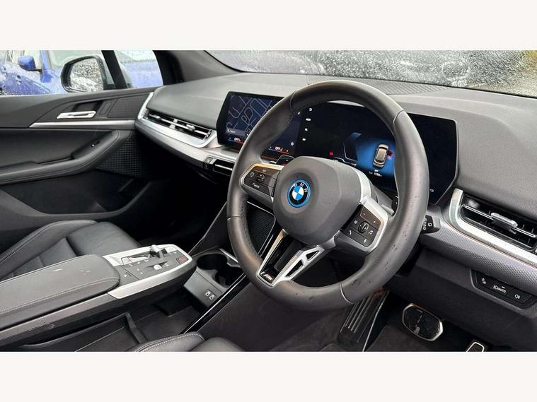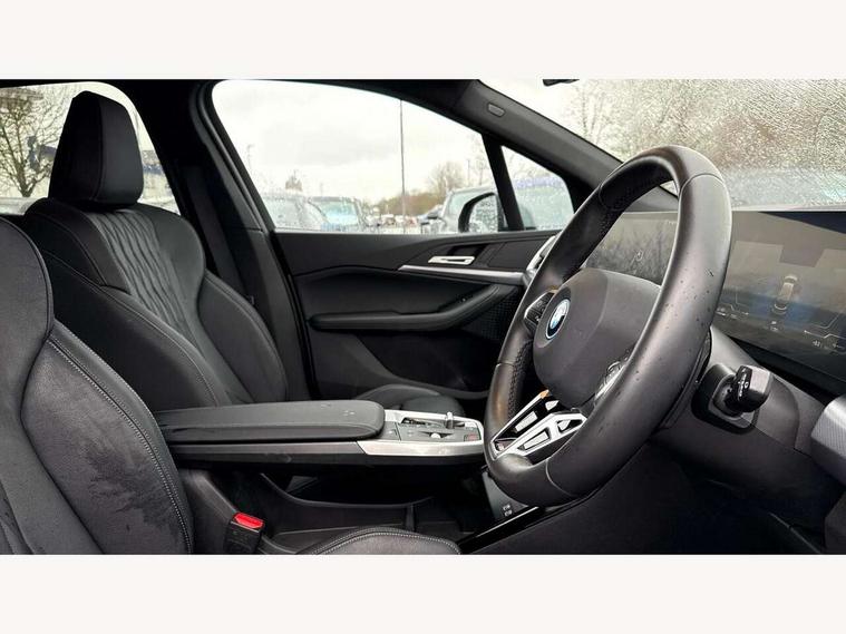 Active Guard, Attentiveness assist, Automatic powered tailgate, Automatic start/stop function, BMW Online services, BMW Operating system 9 with BMW Maps, real-time traffic information, in-car experiences, remote services and smartphone integration, BMW Teleservices, Brake pad wear indicator in front and rear, Condition based service, ConnectedDrive Services, Drive off assistant, Flat air vents on instrument panel in high gloss black, adjustable slats with elements in pearl chrome, iDrive controller, Instrument cluster with speedometer with miles per hour read out, tachometer and fuel gauge, Language version English, On board computer - average speed+fuel consumption, service interval, clock/date, odometer/trip meter, outside temperature display and ice warning, Parking assistant with active park distance control, reversing assistant, lateral parking aid and rear view camera, Servotronic variable electric power steering (EPS), Widescreen display, Wireless charging, 11kW AC charging, Drive performance control with ECO PRO comfort + sport mode, eDrive exterior sound, Gear selector switch with toggle operation, M Adaptive suspension, Mode 3 charging cable, Performance Control, Petrol Particulate Filter, Steptronic transmission with double clutch and gear shift paddles, 2x USB Type C ports in front centre console for charging and data transfer, 2x USB Type C ports in rear centre console for charging, DAB Digital radio, Personal eSim, Welcome sound upon opening of the front driver or passenger door, Air inlet middle part on front apron in lines specific design with trim strip in satinised aluminium, Automatic headlights, Black rear bumper trim strip, BMW emblem, engine compartment lid and tailgate, Body colour roof mouldings, Body coloured door mirror caps, Contoured rear roof spoiler in vehicle colour with side aeroblades in black high-gloss, Driver side exterior mirror lighting with BMW logo projection, Dynamic brake lights, Electric adjustable heated door mirrors, Electric windows - front and rear, with open/close fingertip control, anti-trap facility and comfort closing, Folding door handles integrated flush with surface, Front and rear windscreen wipers with heated front washer nozzles, Front bumper cover with independent design in body colour with inserts in black high gloss, Front bumper design elements in satinised aluminium, Front door exit lights, Front door sill finishers aluminium inserts with M inscription, Front entry sills with aluminium inserts + BMW inscription, Front oramental grille with radiator grille bars in satinised aluminium, Heated rear window, Hidden exhaust pipe, High gloss shadow line, High gloss shadowline roof rails, Home light, Key with M identification, LED Daytime running lights and parking lights with turn indicators, LED number plate light, LED third brake light in rear spoiler, M identification on sides, Manual headlight range control, Model inscription on right tailgate, Rain sensor, Rear bumper cover with independent design in body colour with inserts in black high gloss, Rear side wing doors, Shark fin antenna, Side sill covers with independent design in Body colour, Trailer stabilisation logic, Trims on front and rear bumper covers colour-coordinated with side window graphic, Visible VIN plate, Welcome lighting, Windscreen washer nozzle for rear view camera, 12V power socket in luggage compartment and front centre console, 12V socket in right side trim panel, 2 bag hooks in luggage compartment, 2 front reading lights, 2 open cup holders in front centre console, 2 x USB Type C ports for charging in front centre console + 2 x USB Type C ports for charging in rear centre console, 3 seat bench in 2nd row, 40:20:40 split folding rear seat backrests, Ambient lighting front and rear, Automatic two zone climate control air conditioning, Bottle trays in all doors, Child seat ISOFIX attachment for two outer rear seats and front passenger seat with anchorage points, Driver and front passenger sports seats, Embellishers on steering wheel spokes in pearl chrome, Four grab handles integrated in roof lining, Front and rear door pockets, Front and rear footwell lighting, Front and rear side armrest integrated into door trim, Front centre console storage compartment, Front head restraints, Glovebox with light, Heated front seats, Height adjustable 3 rear head restraints, Illuminated wireless charging tray, Interior door handle recess light on all doors, Luggage compartment lighting, M Anthracite headlining, M specific floor mats, M sport leather steering wheel, Manual adjustment of seat height, fore/aft position, seat depth, backrest tilt and head restraint height, Map pockets, Mechanical rear seats with fore/aft adjustment, Middle centre console storage compartment, Multi-function controls for steering wheel, One piece parcel shelf opens together with tailgate and removable, Rear cloth hooks, Single front passenger seat, Stainless steel pedals, Steering wheel column manual adjustment, Storage compartment lighting in centre console and storage tray in centre stack, Storage compartment net in left side trim panel, Storage compartment with folding cover under centre console armrest cushion, Sunvisors with illuminated vanity mirrors, 3 point seatbelts on all seats, front pyrotechnic belt tensioners, stopper and belt force limiters, rear coded belt buckles, Acoustic protection for pedestrians, Airbag - Front driver and passenger, front and rear head, front side, curtain head protection, manual deactivation of front passenger airbag possible, Anti lock braking system (ABS) with brake assist, Automatic hold function, BMW emergency call, Brake drying, Braking readiness, Child proof locking system in rear door, Cornering brake control, Crash Sensor - activates hazard/interior lighting + unlocks doors, DSC - Dynamic Stability Control, Dynamic brake control, Dynamic Traction Control - DTC, Electromechanical parking brake, Energy recovery system, Front disc brakes, Integrated brak