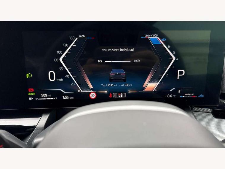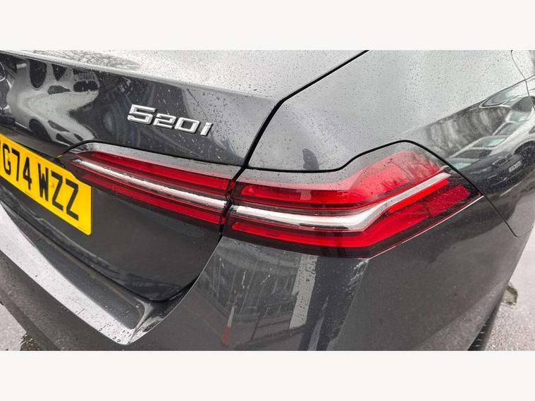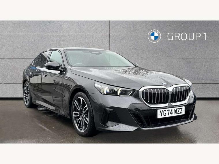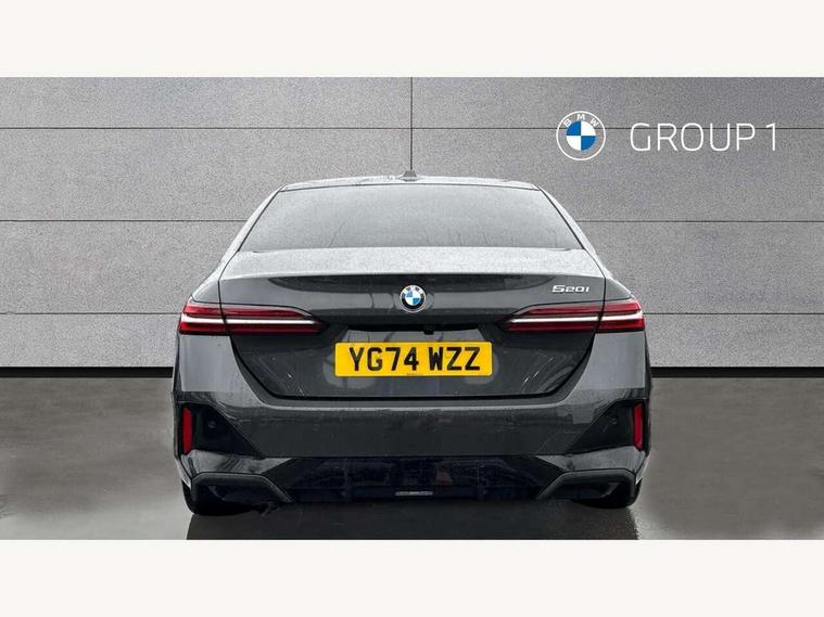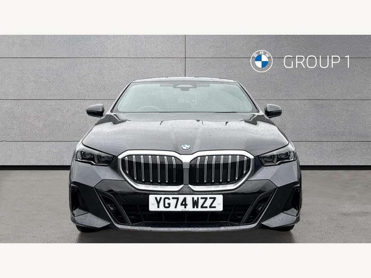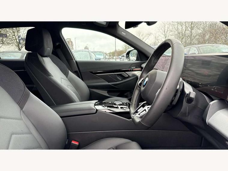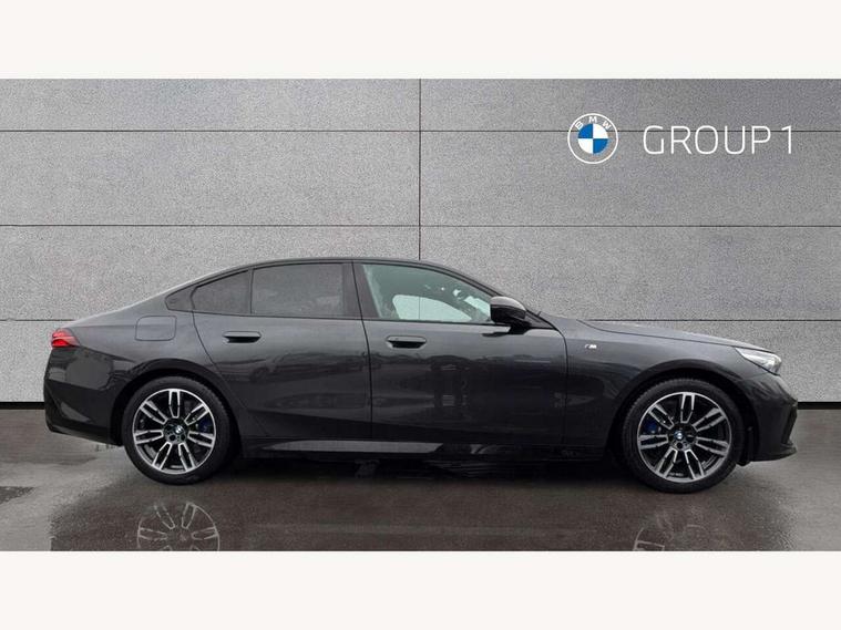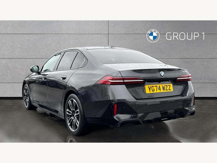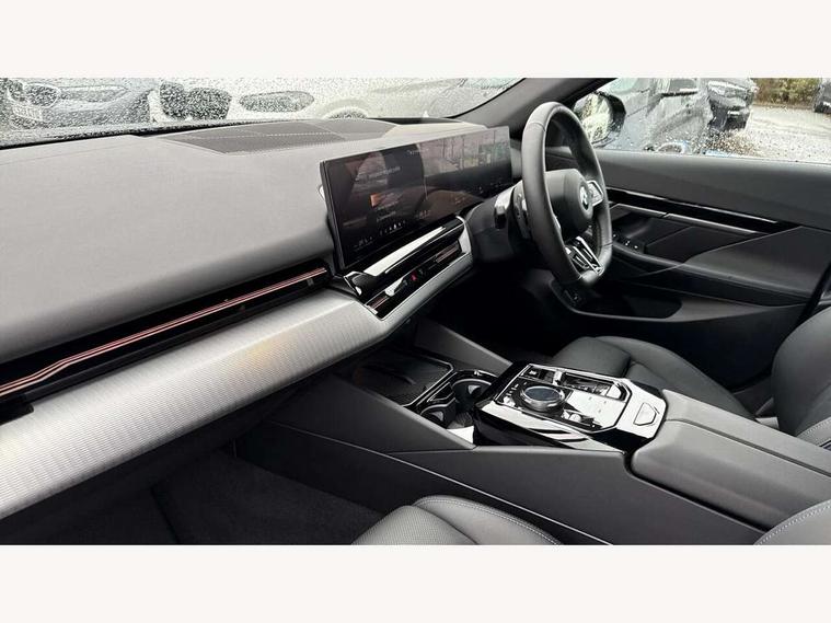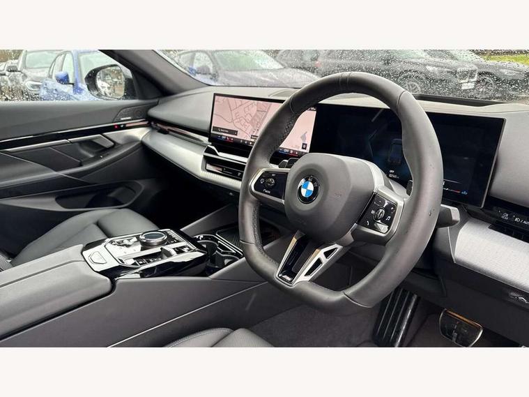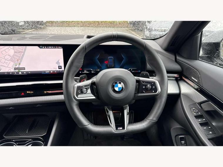 BMW ConnectedDrive online services, BMW legal emergency call, BMW Teleservices, Brake pad wear indicator, Cruise control with brake assist, Driving Assistant Plus Preparation, Front collision warning with brake intervention, Lane departure warning with active return, Left turn warning with brake function, Multifunctional instrument panel, Oil sensor for level and grade, On board computer inc. average speed, fuel consumption, liquid crystal Info display, journey computer, outside temperature display, personal profile, On-board diagnosis - OBD, PAS, Powered by Operating System 7.0, Run flat indicator, Service interval indicator, Speed limit Info with manual speed limit assist, Stop/start button, 8 speed automatic steptronic transmission with gearshift paddles, DAB tuner, Acoustic glazing, Adaptive LED Headlights, Automatic cornering lights, Automatic windscreen wipers and automatic headlight, BMW selective beam, Body colour door handles, Body coloured bumpers, Dynamic brake lights with LED technology, Electric adjustable door mirrors, Electric front and rear windows with fingertip open/close + anti-trap facility and comfort closing function, Follow me home headlight function, Headlight elements in blue, Heated windscreen washer jets, LED daytime running lights, LED third brake light, Light colour close to that of ordinary daylight, Optimum, homogeneous illumination of the road, Rear boot, Rear side wing doors, 2 zone automatic air conditioning, 3 seat bench in 2nd row, 3 spoke leather M steering wheel in BMW M specific design with M badge, Armrest - front and rear integrated door trim, centre console includes storage compartment, rear centre includes 2 cupholders, Child seat ISOFIX attachment with rear outer seats includes top tether, Electric adjustable front sports seats, Electric adjustable steering column, Electrically adjustable lumbar support for driver and front passenger, Heated driver and front passenger seats, M Anthracite headlining, M Sport pedal covers in stainless steel, Rear headrests, Single front passenger seat, Through loading system with 40/20/40 rear seat backrest split, Velour floormats, Wireless charging tray, Ambient lighting pack - 5 Series/I5, Connected package professional - 5 Series/I5, Driving assistance pack - 5 Series/I5, Expanded exterior mirror package - 5 series/I5, M high gloss shadow line pack - 5 Series/ I5, M Sport exterior styling pack - 5 Series/I5, 3 rear three point seatbelts, Active protection, Airbag deployment is controlled with respect to the intensity and scope, Anti-lock braking system (ABS), Brake assist, Brake energy regeneration, Cornering brake control (CBC), Crash sensor activating central locking release, hazard warning lights, fuel cut off and interior lighting, Driver and front passenger airbags, Driver central airbag, Driver/front passenger side airbags, DSC - Dynamic Stability Control, Dynamic brake control, Dynamic Traction Control - DTC, Electromechanical parking brake with automatic drive away release and auto hold function, Electronic brake force distribution, Engine drag torque control, Front and rear brake discs with interior ventilation, Front and rear curtain airbags, Front head restraints with anti-whiplash, Head airbags for first and second row seats, Hill start assist, Locking of doors after driving off, M Sport brakes in dark blue metallic painted brake callipers with M designation, Mechanical child proof lock on rear doors, PC iBrake PostCrash approach control warning with light braking function, Side impact protection, Trailer stability control, Two tone horn, Tyre pressure monitoring system, Warning triangle and first aid kit, Alarm system, Locking wheel bolts including wheel bolt adapter, Tyre repair kit,