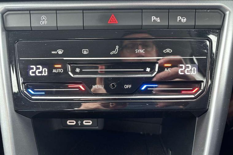Advanced driver attention and drowsiness monitor, Dynamic road sign display, Emergency call service, Lane keeping system Lane Assist, Mobile phone interface, Modified key software - reduce switch off time for key status change to Long no motion, Online services, Park assist including front and rear parking sensors, Power assisted speed sensitive steering, Service interval indicator, Tailgate/trunk lid release from outside, Think blue trainer driver tips and journey analysis, Warning sound and light for front seatbelts unfastened, Wireless app connect, Wireless Smartphone charger, Battery regeneration during braking, Front shock absorption, Rear shock absorption chassis with increased ride height, Start/stop function with battery regeneration, DAB Digital radio, Diversity antenna for FM reception, Front and rear 6 speakers, Music playback - MP3, WMA and AAC files, Premium USB cable in choice of either Apple or Android smartphone compatibility, SD card slot, Simultaneous pairing of 2 compatible mobile devices, Title and cover art display, We Connect and We Connect Plus functionality, Auto dimming interior rear view mirror, Automatic hazard lights activation under emergency braking, Automatic headlight control with LED separate daytime running lights with coming/leaving home function, Black roof rails, Body coloured bumpers and radiator grille with chrome trim and front fog lamps with chrome bezel, Body coloured exterior mirror housings and door handles, Electrically adjustable and heated door mirrors, Extended roof spoiler, Exterior mirrors aspherical on driver side, convex on front passenger side, External USB type C socket and charging sockets, Front windscreen wiper with intermittent wipe and 4 position delay, Heated rear window, LED 3rd brake light, LED rear combination lamps, LED rear number plate lights, Power windows with comfort operation and circuit breaker, Rain sensor, Rear exhaust tailpipe, Rear fog light on one side and reversing lights on both sides, Rear side wing doors, Rear wash/wipe with intermittent wipe setting, Remote electrically foldable door mirrors, puddle lights and reverse activated passenger's door mirror, 12V power socket in centre console, 3 rear head restraints, 3 seat bench in 2nd row, 4 load lashing points in luggage compartment, Air care climatronic air conditoning system with active combination filter and 2-zone temperature control, Ambient lighting with mirror logo projection, Cloth upholstery, Door and side trim panel in cloth, Drawer under drivers seat, Driver/front passenger seat height adjustment, Front centre armrest, Front comfort sports seats, Front cupholders x 2, Front reading light, Front seat back storage pockets, Glove compartment door with light, Instrument lighting, white adjustable panel illumination, Interior light delay, Isofix child seat preparation, Leather gearshift handle, Load-through provision with cup holder when folded down ('Unsplit rear seat bench, split folding backrest, with centre armrest), Luggage compartment lighting, Lumbar support for driver's and front passengers seat, Non-folding front passenger seat backrest, Single front passenger seat, Storage compartment in left and right luggage area, Storage compartment in rear doors, Storage compartments in driver and front passenger doors, Sunvisors with illuminated vanity mirrors, Variable boot floor, height adjustable and removable, Driver assistance pack without proactive passenger protection - T-Roc Life/Match, 3 point height adj front seatbelts + pretensioners, 3 point seatbelts in outer rear with ECE label, ABS, Child locks on rear doors, City emergency braking and pedestrian monitoring, Driver and front passenger airbag with front passenger airbag deactivation, Driver and front passenger safety-optimised head restraints, Drivers seatbelt reminder, Electronic parking brake, Electronic Stability Control (ESC) inc EDL (Electronic Differential Lock) and ASR (Traction Control), Front and rear passengers curtain airbag system including front side airbags, Front disc brakes, Hill start assist, Predictive pedestrian protection, Rear disc brakes, Two tone horn, Tyre pressure loss indicator, Volkswagen roadside assistance, Alarm with interior protection, Pewter matt decorative inserts for intrument panel, centre console and door panels at the front, Trims for alloy wheels,