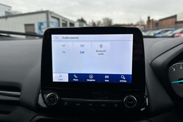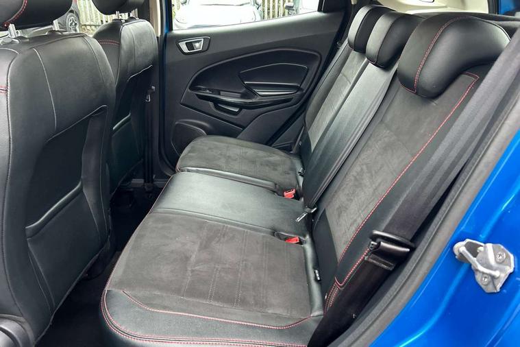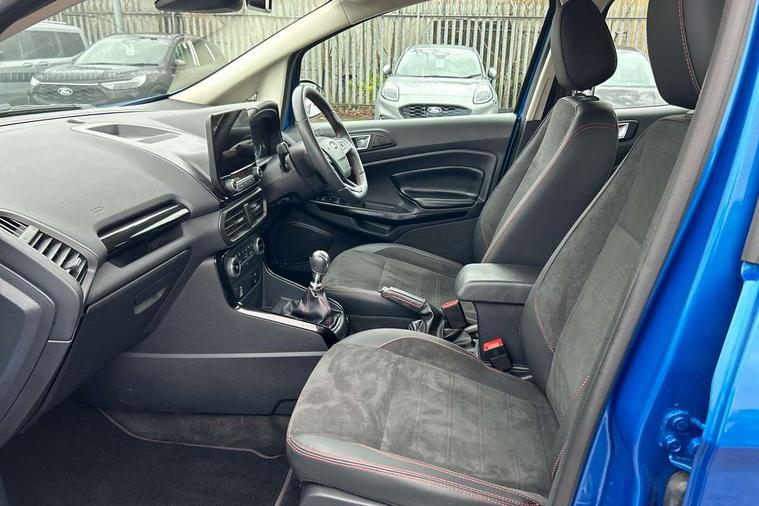 Cruise control, e-Call (emergency call), Easy fuel capless refuelling system, Ford SYNC 3 nav system with DAB radio, 8" screen, emergency assistance, Apple car play/Android auto, 2x USB, 6 speakers, Ford pass connect, Intelligent speed limiter, PAS, Rear parking sensors, Rear view camera, Traffic sign recognition, Trip computer, Sports suspension, Steering wheel mounted audio controls, Auto dimming rear view mirror, Automatic front wipers, Automatic headlights, Black roof rails, Body colour door handles, Body coloured bumpers, Chrome lower window surround, Electrically adjustable and heated door mirrors, Front fog lights, Front grille bars and surround in black, Headlight levelling control, Large rear roof spoiler, LED day running lights, LED third brake light, Power front and rear windows, Puddle lights, Quick-clear heated windscreen, Rear side wing doors, Rear wiper, ST Line body styling kit - Black headlamp bezel, front and rear sport bumpers, body colour lower door claddings, 12V socket in front and rear, 3 seat bench in 2nd row, 60/40 split rear seats, Ambient lighting, Centre console with sliding front armrest, Cooled glovebox, Courtesy lights with map reading light, Driver seat height/lumbar adjust, Driver's side glovebox, Driver/passenger sunvisors and lidded vanity mirrors, EATC - Electronic Auto Temperature control, Folding grab handles, Front head restraints, Front seat back map pockets, Illuminated glovebox, Illuminated luggage compartment, Isofix system on outer rear seats, Luggage compartment carpet, Neosuede/Partial sensico leather upholstery, Overhead console with sunglasses holder, Rake adjustable rear seats, Reach + rake adjustable steering column, Rear headrests, Sensico trimmed steering wheel, handbrake and gearshift gaiter with red stitching, Single front passenger seat, ST-Line Front floor mats with red stitching, Stainless steel sports pedals, Storage drawers under front seats, Tie down hooks, Variable boot floor, 3x3 point rear seatbelts, ABS, Autonomous emergency braking, Child locks on rear doors, Curtain airbags, Driver airbag, Drivers knee airbag, Electronic Stability Programme with hill launch assist, Front passenger airbag deactivation, Front side airbags, Passenger airbag, Pre collision assist system with AEB, Seatbelt reminder for driver and front passenger, Traction control, Tyre pressure monitoring system, Immobiliser, MyKey system, Remote central locking, Thatcham 1 volume sensing alarm, Low rolling resistance tyres, Tyre inflation kit,