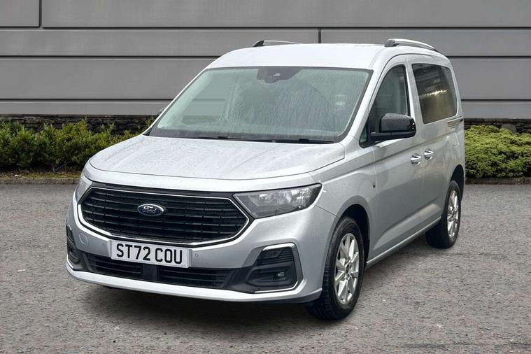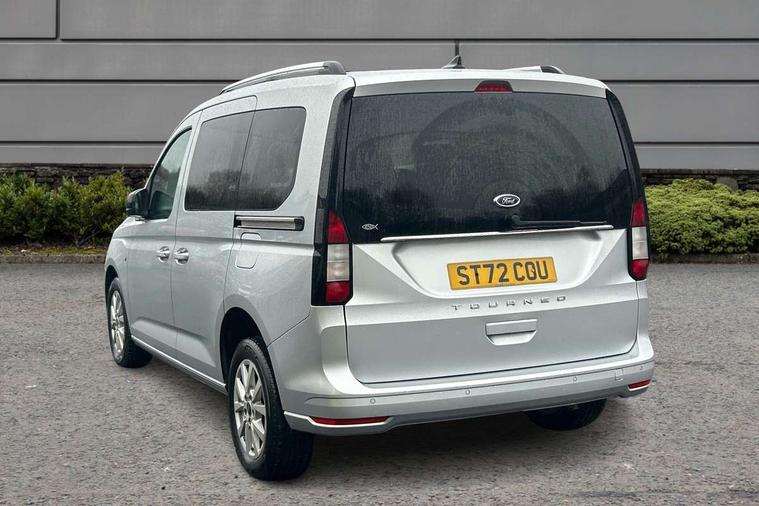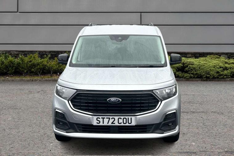 Analogue cluster, Brake wear indicator, Driver impairment monitor, E-call, Embedded modem, Mobile phone interface, PAS, Stop/start system with regenerative braking, Trip computer, 50 litre fuel tank, Diesel particulate filter, Standard duty alternator, Media hub 2x USB and rear USB Unit, Steering wheel mounted radio controls, Adaptive cornering lamps includes fog lamp, Auto headlamps On/off, Automatic windshield wiper, Black coloured exterior mirror finish, Black grille with chrome surround, Body coloured exterior door handles, Body coloured exterior tailgate handles, Body coloured plastic front bumper, Body coloured plastic rear bumper, Dark tinted rear privacy glass, Daytime running lights, Dual power fold heated mirrors, Dual sliding side load doors, Electric rear window defroster, Electric windshield defroster, Electrochromic inside mirror, Fixed 3rd row LHS and RHS window, Fixed rear window, Follow me home headlamps, Front bumper with chrome insert, High mounted stop lamp, Intermittent variable windshield wiper, Liftgate rear cargo door, Privacy glass, Rear registration plate light, Rear window wash/wipe, Roof rack silver painted rails, Standard green glass windscreen, Tail lamp - Level 1, Weather protection seals, 2 front row cupholders, 2nd row rear overhead courtesy light, 3 seat bench in 2nd row, 3x hooks on trim panel storage, 4 tie down hooks, A/C Refrigerant - HF01234YF, Air register Chrome, B Pillar assist handle, Base luggage compartment trim, Bubble fabric upholstery, Carpet load floor cover, Carpet partial floor cover, Center console level 4, Driver seat rotary recliner, Front door trim panel - Level 2, Front interior grab handles, Front seat tray table, Front throw in carpet floor mats, Glovebox lid with light, Header courtesy light with maplight, Height adjustable headrests, IP open storage above driver area, LED Load compartment light, Misfuel protection cap, Overhead storage shelfs, Painted instrument panel, Passenger seat rotary recliner, Passenger sunvisor with mirror, Passenger under seat storage tray, Pollen filter without carbon filter, Power point plug 2 off, Reach + rake adjustable steering column, Rear luggage compartment bag hook, Recirculation heater, Regular size washer tank, Second row 60/40 folding seats, Sensico gearshift knob, Sensico steering wheel, Side/rear door trim panel - Level 1, Single driver sunvisor illuminated with mirror, Single front passenger seat, Standard design foot pedal, Storage in front cab doors with bottle holder, Storage in rear doors with bottle holder, Driver assistance package - Tourneo Connect/ Grand Tourneo Connect, High acoustics package - Tourneo Connect/ Grand Tourneo Connect, Ice feature pack 4 - Tourneo Connect/ Grand Tourneo Connect, Restrain device pack 3 - Tourneo Connect/ Grand Tourneo Connect, Seat pack 18 - Tourneo Connect/ Grand Tourneo Connect, 2nd row rear seat belts, 4 wheel disc brakes, Black seat belts, Brakes - (HLA)Hill launch assist/TC, Driver, passenger and 2nd row rear seat belt reminder, Electric parking brake with auto hold function, Electronic emergency brake assist, Emergency brake light flashing, ESC with ABS, Front 2 way head restraints, Front active seat belts and manual adjuster seat belts, Front airbag restraint and passenger airbag restraint, Front side airbags, Isofix hard point attachment, Manual passenger airbag deactivation function, Post collision braking, Rear 2 way head restraints, Rear removeable package tray, Tire pressure sensors, 2 remote flip keys, Child proof rear door locks, Configurable Unlocking 2, Engine immobilizer - Securilock, Keyless entry and start with double locking, Locking wheel lug nuts, Power door dead locks and enabled door automatic relocking, Thatcham category 1 alarm B, 16" Titanium alloy wheels with centre wheel hub caps and standard tread, Front tire and rear tire tread, Less wheel cover, Tyre repair kit,
