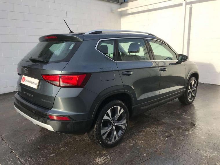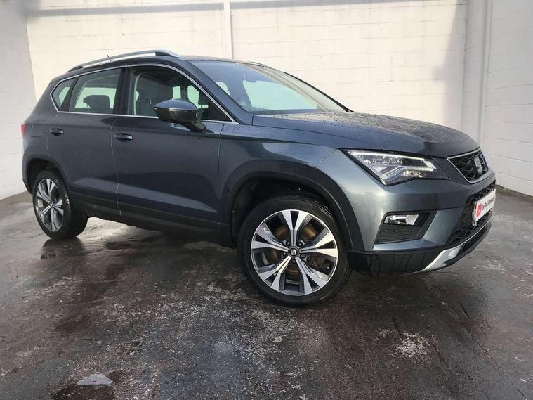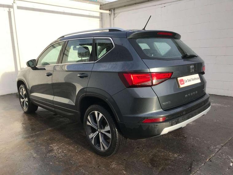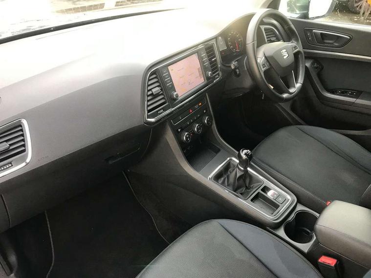 'Lights On' Reminder warning buzzer, Driver alert system, Electric speed sensitive power steering, Full Link App interface, Low fuel warning light, Multi function display, Outside temperature gauge, Rear parking sensor, Remote fuel flap release, SEAT logo boot release, Trip computer, Comfort suspension, XDS electronic differential lock, Steering wheel mounted audio/phone controls, Aluminium roof rails, Body colour bumpers, Body colour door handles, Body colour door mirrors, Chrome headlight surround, Chrome side window trim, Chromed centre radiator grille surround, Electric folding door mirrors, Electrically adjustable and heated door mirrors, Front and rear electric windows, LED daytime running lights, LED front fog lights with static cornering light function, LED Headlights, LED tail lights, Rear wash/wipe, 12V power point front, 3 height adjustable rear headrests, 4 Lashing eyes in boot, 60/40 split folding rear seat, Active head restraints, Adjustable front armrest with storage compartment, Card holder, Cloth upholstery, Comfort front seats, Driver/passenger lumbar adjustment, Driver/passenger sunvisors with illuminated vanity mirrors, Dual zone climate control, Footwell illumination, Front cupholders x 2, Front reading lights, Front seat back storage pockets, Height adjustable driver's seat, Height adjustable front headrests, Height adjustable passenger seat, Illuminated boot, Illuminated glovebox, Isofix child seat preparation, Leather steering wheel and gear knob, Rear armrest, Rear central air outlet, Rear reading lights, Storage box under drivers seat, Navigation system pack - Ateca, Seat Media System Plus pack - Ateca, 3x3 point rear seatbelts, ABS, Auto hold function, Automatic post collision braking, Curtain airbags, Driver/Front Passenger airbags, Drivers knee airbag, Electronic parking brake, Electronic stability control, ESP+EBA, Front and rear seatbelt reminder, Front assist including city emergency braking, Front passenger airbag deactivation, Front side airbags, Hill hold control, Predictive pedestrian protection, Tiredness recognition system, Traction control, Tyre pressure monitoring system, 2 folding remote keys with window open/close function, Immobiliser, Locking wheel bolts, Remote central locking, Volumetric alarm with back up horn, Chrome effect dashboard facia, 18" Bi-colour alloy wheels,