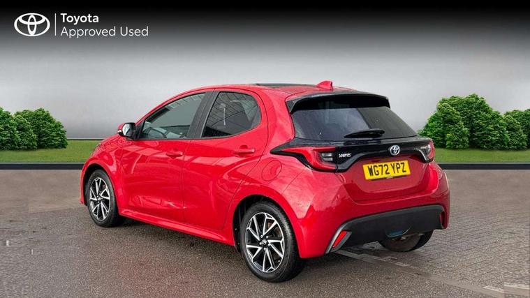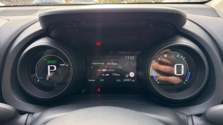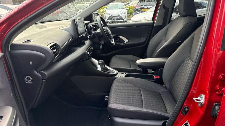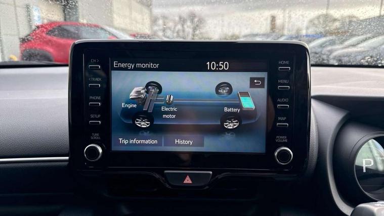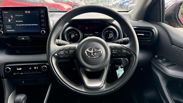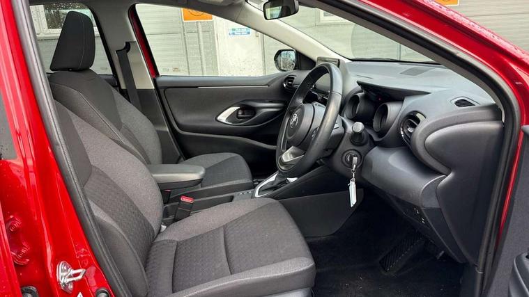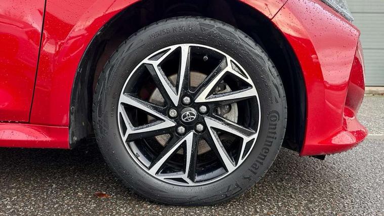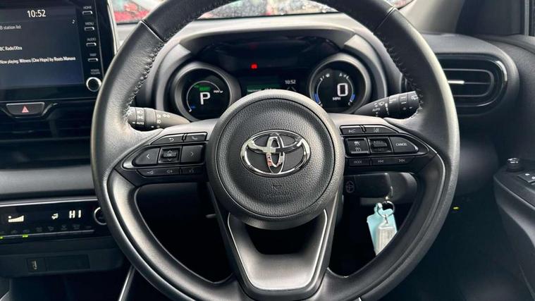 Adaptive cruise control, Adjustable speed limit with speed warning, Bluetooth connectivity, Colour binocular inspired displays with digital speedometer, E-call, Electric power steering, Hybrid energy display, Multi information display switches on steering wheel, Reversing camera, Smartphone integration with Apple CarPlay and Android auto, Tailgate, Voice recognition, Vehicle Stability Control (VSC), 4 speakers, 8" Multimedia display touch screen, USB connection, Acoustic windscreen glass, Auto windscreen wipers, Automatic headlights, Body coloured door mirrors, Electric adjustable heated door mirrors, Follow me home headlights, Front auto power windows with anti jam protection, Full LED rear lights, LED daytime running lights, LED front fog lights, LED front light guide, LED Headlights, LED High mounted stop lamp, LED Indicators, LED rear light guide, Manual headlight levelling, Painted chequered front grille, Rain sensor, Rear auto power windows with anti jam protection, Rear privacy glass, Rear side wing doors, Rear spoiler, Rear wiper, Shark fin antenna, Turning signal integrated indicators in door mirrors, Variable front intermittent wipers, 3 adjustable rear headrests, 3 spoke leather steering wheel, 60/40 split folding rear seat, Active headrests, Adjustable boot height, Auto air conditioning, Coat hooks in rear grab handles, Cup holders (2 front & door), Data Communication Module (DCM) connected services, Fabric upholstery, Front armrest, Glovebox, Grey roof lining, Height adjustable driver's seat, Isofix seat fixing, Leather gearshift, Pollen filter, Shopping bag hooks, Single front passenger seat, Tilt/telescopic steering column, 3 point seatbelts on all rear seats, ABS+EBD+Brake assist, Electronic parking brake, Emergency brake light system (EBS), Front passenger airbag on/off switch, Front seatbelt reminder, Hill start assist control (HAC), Rear child proof door locks, Rear seat belt reminder, Supplemental Restraint System (SRS) 8 airbags: Driver & passenger's airbags, dual side curtain airbags, side impact airbags, front centre airbag, Toyota Safety Sense 2, Precollison + Night time Pedestrian & Cyclist Detection, Lane Trace Assist, Auto High Beam, Intelligent ACC & Road Sign Assist, Tyre pressure warning system, 2x Master key, Alarm/immobiliser, Remote powered central double locking doors, Soft touch instrument panel, Space saver spare wheel,