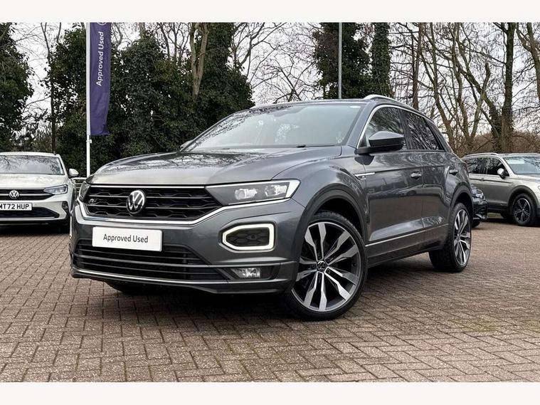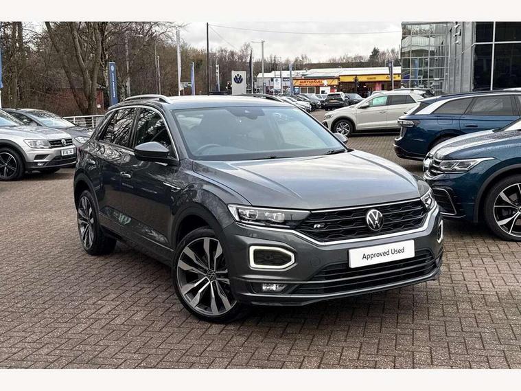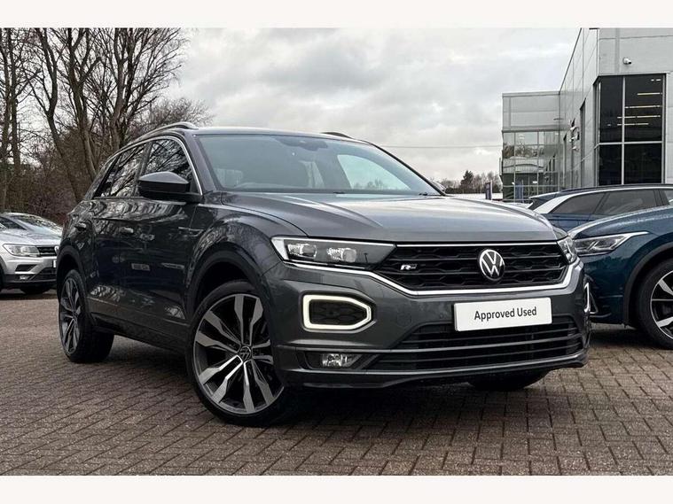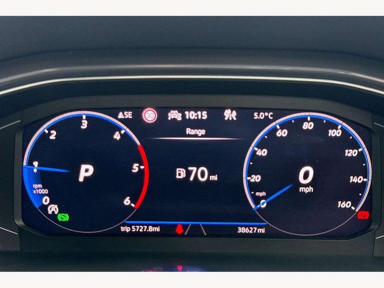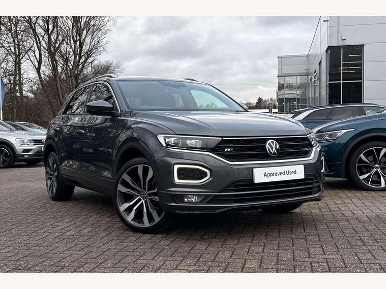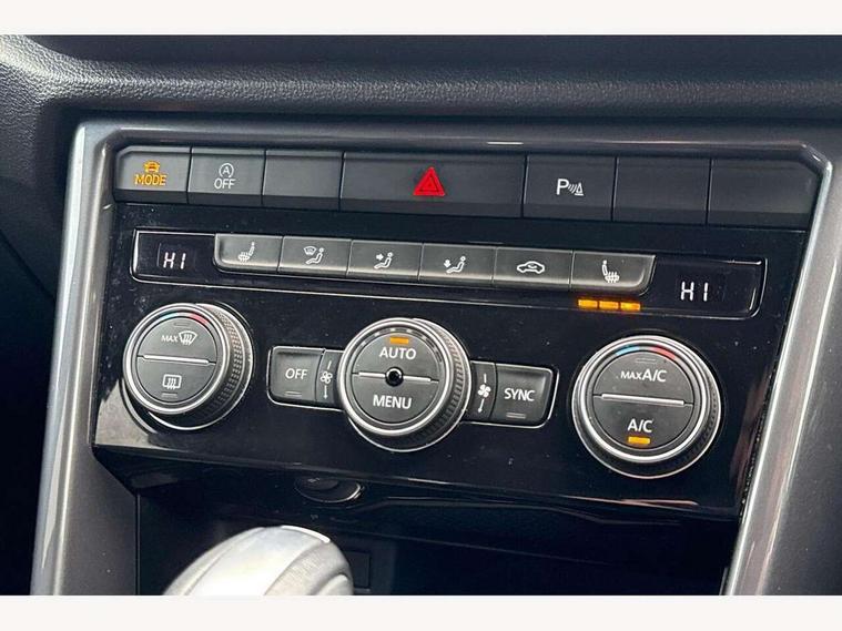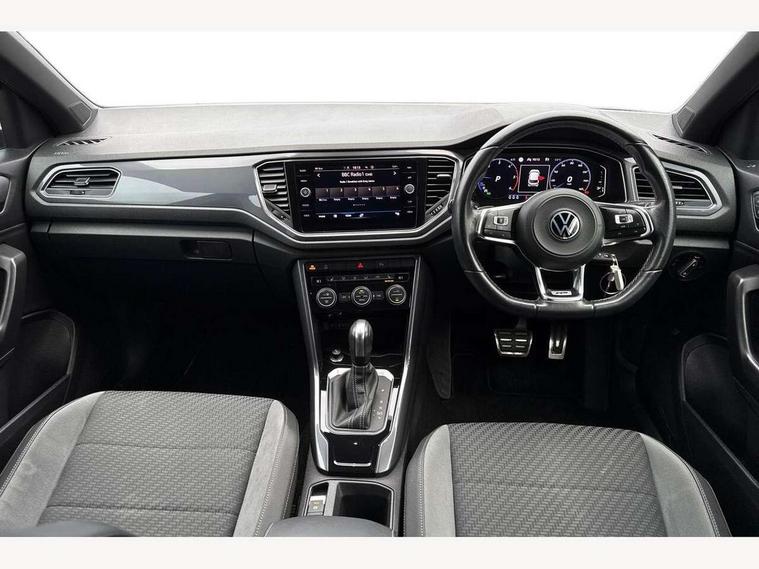 'Lights On' Reminder warning buzzer, Adaptive cruise control with front assist, radar sensor controlled distance monitoring, city emergency braking, Automatic start/stop system, Bluetooth telephone and audio connection for compatible devices, Car information display, Digital Cockpit Pro - Active info display, Discover navigation including 8" touch screen display, streaming and internet, Driver alert system with audible and visual fatigue detection system, Driver tips and journey analysis, Lane assist with warning text instrument cluster, Modified key software - reduce switch off time for key status change to Long no motion, Multifunction computer with visual gear change recommendation for fuel consumption, Service interval indicator, Think blue trainer driver tips and journey analysis, Voice activation, Wireless app connect for apple carPlay, Battery regeneration during braking, Misfuel prevention device for diesel engine, Centre arm rest including USB type C interface and USB charging socket, DAB Digital radio, Diversity antenna for FM reception, Front USB type C Interface 2X and USB charging socket, Music playback - MP3, WMA and AAC files, Premium USB cable in choice of either Apple or Android smartphone compatibility, SD card slot, Simultaneous pairing of 2 compatible mobile devices, SMS functionality - read, compose and send SMS messages using touch-screen display, Storage compartment with longitudinal and height adjustable in armrest and two rear air vents, Three route options - Fast, Short, Eco, Title and cover art display, Auto dimming interior rear view mirror, Automatic hazard lights activation under emergency braking, Black grained lower door protectors, Body colour door handles, Body colour rear roof spoiler, Chrome effect left and right trapezoid exhaust tailpipe fascia surround, Chrome trim on upper and lower radiator grille, Dusk sensor, Electrically foldable, adjustable and heated door mirrors with puddle lights and reverse activated kerb-view adjustment on passenger's door mirror, Front and rear electric windows, Front fog lights with static cornering function, Front windscreen wiper with intermittent wipe and 4 position delay, Fully galvanised body, Heated rear window, High level 3rd brake light, LED darkened rear light clusters, LED dipped and main beam headlights with automatic range adjustment including signature LED daytime running lights, LED rear number plate lights, Manual coming/automatic leaving home lighting function, Rain sensor, Rear tinted glass from B-pillar backwards approx 65% tinted, Rear wash/wipe with intermittent wipe setting, Volkswagen roundel, 2 Front and rear reading lights incorporating LED technology, 3 rear head restraints, 4 load lashing points in luggage compartment, Aluminium pedals, Ambient lighting in front footwell and light strips below trim in front doors, Black roof lining and sun visors, Branded points of interest, Carbon flag cloth upholstery, Climate control - 2 zone electronic air conditioning with automatic air recirculation and allergy filter, Drawer under drivers seat, Front + rear carpet mats, Front cupholders x 2, Front seat back storage pockets, Front sports seats with R-Line logo on seat backrest, Glovebox, Height adjustable front seats, Height/reach adjust steering wheel, Illuminated vanity mirrors, Instrument lighting, white adjustable panel illumination, Interior light delay, Isofix easy fit child seat preparation for 2 outer rear seats, Load through provision with single cup holder when folded down, Luggage compartment cover, removable, Luggage compartment lighting, R Line badge, Split folding rear seat backrests with centre armrest, Storage compartment in left and right luggage area, Storage compartment in rear doors, Storage compartments in driver and front passenger doors, Three spoke multi function leather trimmed steering wheel and gear knob including paddle shift, Unique R Line door sill protectors, R line styling pack - T-Roc, Winter pack - T-Roc, 3 rear three point seatbelts, ABS, Curtain airbags, Driver and front passenger safety-optimised head restraints, Drivers and front passengers airbags with passengers deactivation switch, Drivers seatbelt reminder, Electronic parking brake with auto hold, Electronic stability control (ESC) includes ASR, EDL, EDTC and trailer stabilisation function, Front seat side impact airbags, Predictive pedestrian protection, Rigid safety cell with front and rear crumple zones, Three point height adjust front seatbelts + pretensioners, Tyre pressure loss indicator, Ventilated front and rear disc brakes, Volkswagen roadside assistance, Alarm with remote central locking and interior protection, Electronic engine immobiliser, Remote central locking with 2 remote folding keys, Shadow grey decorative inserts in dash and door panel, 19" Suzuka alloy wheels with low rolling resistance tyres and anti wheel bolts,