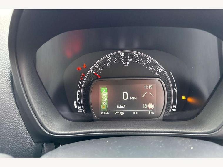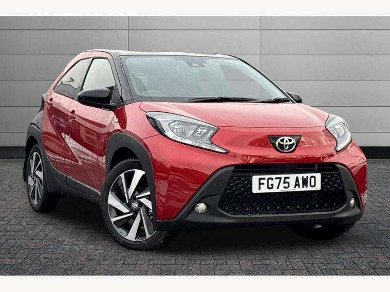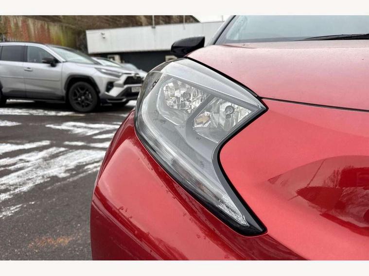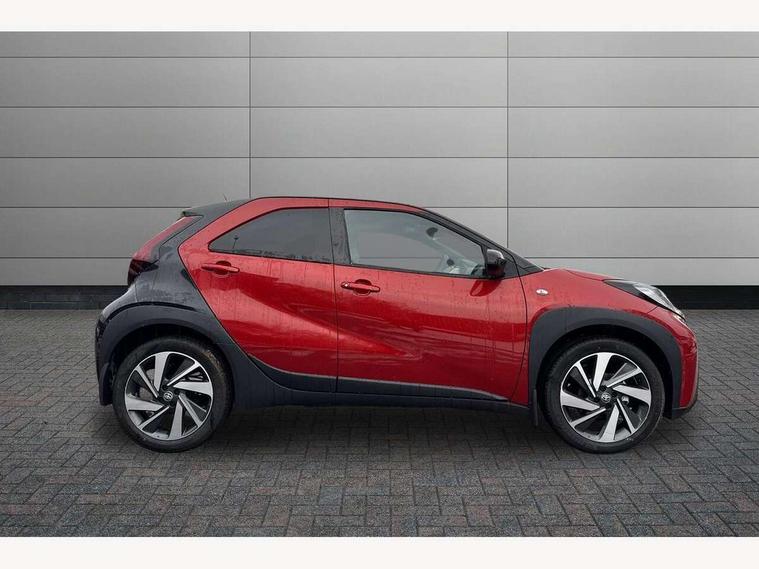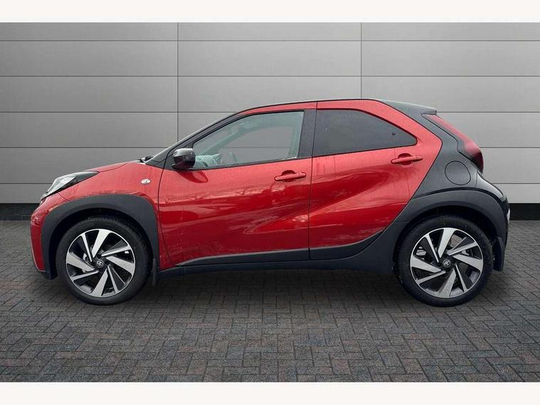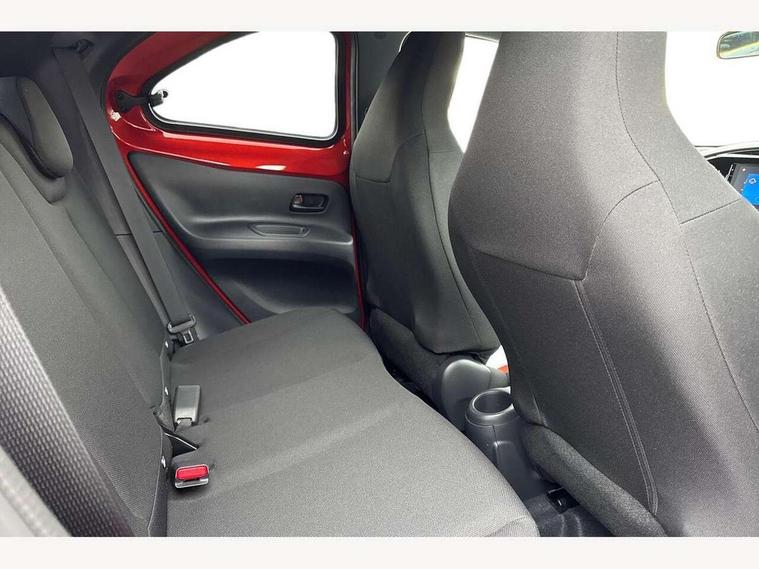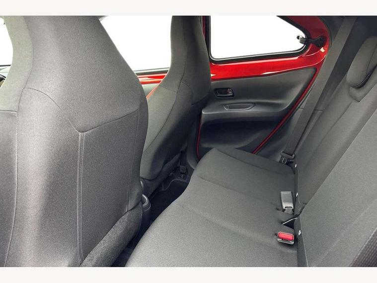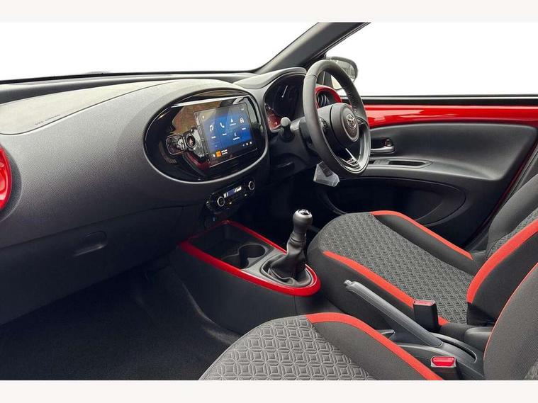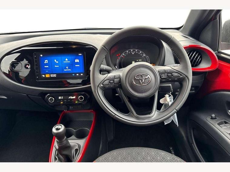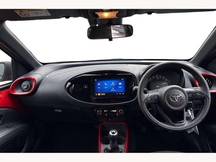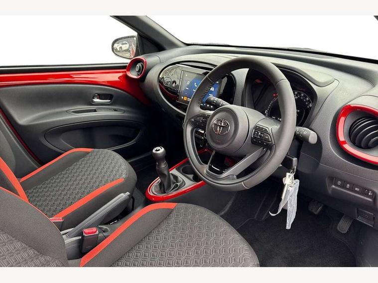4.2" TFT colour screen, Adjustable speed limiter, Analogue speedometer, Bluetooth connectivity, Digital tachograph, Driver attention alert system, eCall emergency call system, Electric power steering, Intersection turn assist, Key reminder warning, Noise reduction kit, Pre collision system with emergency steering assist, Reversing camera with static guide lines, Smart phone integration with Apple car play/Android Auto, Speed limit display, Start and stop, Vehicle Stability Control (VSC), 4 speakers, 9" HD multimedia display touch screen with Toyota smart connect, DAB digital audio broadcast, USB connector, Auto headlights, Auto wipers, Automatic headlights cut-off, Bicycle towing hook, Black contrast roof, Black side protection mouldings, Black wheel arch mouldings, Body colour door handles, Body coloured front bumper, Boot door scuff plate, Eclipse black rear bumper, Electric heated door mirrors, Follow me home headlights, Front fog lights, Front power windows, Gloss black door mirrors, Gloss black upper front grille, Headlight cut-off reminder, LED daytime running lights, LED front light guide, LED High mounted stop lamp, Manual day/night rear view mirror, Manual headlight levelling, Pagoda roof, Power adjustable door mirrors, Power back door, Privacy glass, Projector halogen headlights, Rain sensor, Rear combination lights LED bulb type, Rear side wing doors, Rear windscreen defogger, Rear windscreen wiper, Short antenna, Variable intermittent windscreen wipers, 12v power outlet - front, 2 seat bench in 2nd row, 3 spoke leather steering wheel, 50/50 split folding rear seat, Adhesive roof headlining, Adjustable speed limiter switch on steering wheel, Audio and telephone switches on steering wheel, Auto air conditioning, Black insert on steering wheel, Black roof lining, Boot light, Centre room light, Chrome interior door handles, Chrome surround on air conditioning buttons, Clean air filter, Console box storage in body color, Fabric upholstery, Floor mats, Front and rear cup holders, Front head rest deco art, Front head restraints, Height adjustable driver seat, Intelligent adaptive cruise control switch on steering wheel, ISOFIX child restraint system on rear seats, Lane departure alert switch on steering wheel, Leather gearshift knob, Manual tilt steering wheel, Manually reclining and sliding driver seat, Manually reclining and sliding front passenger seat, Multimedia switches on steering wheel, Pollen filter, Rear door pockets, Rear head restraints, Satin silver insert on gear shift knob, Single compartment glovebox with lights, Single front passenger seat, Soft tonneau cover, Sun visors with mirror on driver and passenger side, Voice recognition switch on steering wheel, Toyota safety sense pack - Aygo X, Anti lock braking system + Electronic brake force distribution, Child safety door lock, Emergency brake light signal (EBS), Hill start assist control (HAC), Passenger airbag on/off switch, Seat belt reminder for front and rear seats, Supplement restraints system (SRS) - 6 airbags, Traction control, Tyre pressure warning system, Immobiliser, Remote power door locks, Black wheel centre caps, Tyre repair kit,
