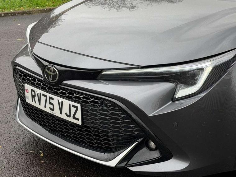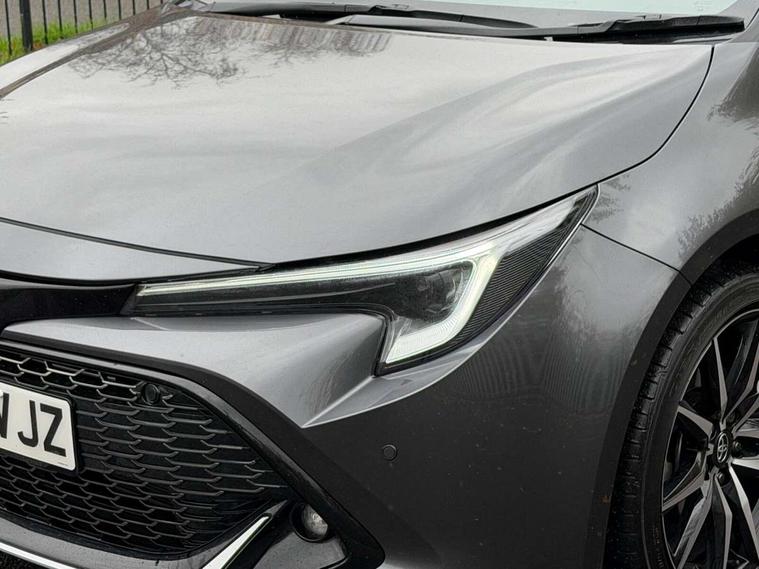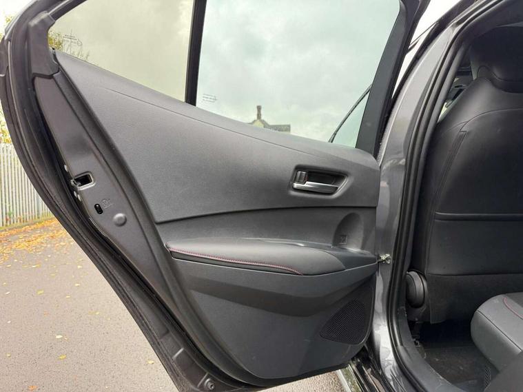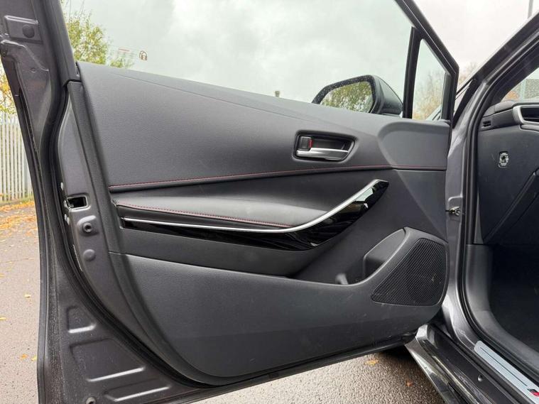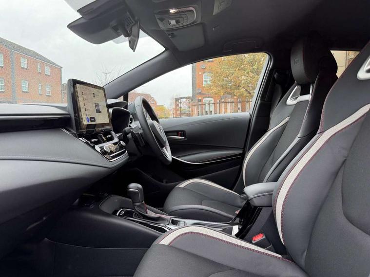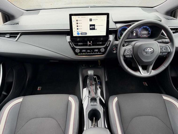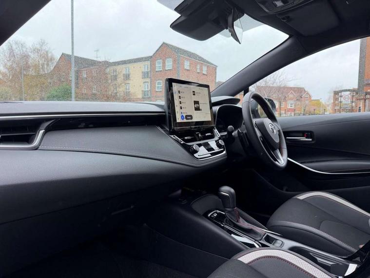 10.5" Multimedia display screen, Bluetooth telephone connectivity, Connected car functionality upgrade, tracker, remote status and e-care, Drive mode select (Eco, Normal), E-call, Electrically assisted power steering, EV drive indicator, Front and rear parking sensors, Full Digital 12.3" TFT Digital Combimeter, Intelligent clearance sonar, Key reminder warning, Lane Departure Alert (LDA) switch on steering wheel, Memory on adjustable speed limiter, MyT connected services, Proactive driving assist (PDA), Reversing camera, Smart entry and push button start with GR Logo, Smartphone integration with Apple CarPlay and wired android auto, Tailgate, Toyota remote services, Toyota smart connect navigation, Wireless charger, Gasoline particulate filter, Vehicle Stability Control (VSC), 6 speakers, AM/FM radio, DAB Digital radio, Front USB-C in centre console, Front USB-C in dashboard, Smart voice assist/ Voice recognition, USB and Aux in connectors + 12V front outlet, Anti-jam protection on power windows, Auto up and down function on all power windows, Automatic folding mirrors, Automatic headlights with high beam assist, Black centre and side air vents, Black toyota logo in front, Body coloured bumpers, Body coloured door mirrors, Body coloured outside door handles, Dark chrome lower grille, Electrochromatic mirror, Follow me home headlights, GR Sport dark chrome front mesh grille and black rear grille, GR Sport exclusive under guard, GR sport scuff plates, LED daytime running lights, LED dual beam projector headlights, LED front fog lights, LED High mounted stop light, LED rear combi lights with LED lightguide, Manual headlight levelling system, New grille pattern, Noise reduction layer on windscreen, Piano black diffuser, Power adjustable heated door mirrors, Power front windows, Power rear windows, Privacy glass with UV filter, Rain sensing wipers, Rear side wing doors, Rear window defogger, Rear window wiper, Reverse tilting door mirrors, Rocker and door lower moulding, Roof spoiler, Satin chrome insert on front air vents, Satin chrome insert on front door assist grips, Satin silver front spoiler, Shark fin antenna, Tailgate release with push button, Time adjustment on intermittent wiper, Turning signal integrated indicators in door mirrors, Unique lower skirt, Unique side rocker with black insert, UV-filter on driver and passenger windows, 2 Shopping bag hooks in luggage compartment, 3 rear headrests, 3 seat bench in 2nd row, 3 spoke steering wheel with satin insert and red stitching, 4 tie down hooks in luggage compartment, 60/40 split folding rear seat, Adaptive cruise control (ACC) switch on steering wheel, Adjustable speed limiter switch on steering wheel, Audio, multimedia and telephone switches on steering wheel, Black armrest on centre console box, Black gear shift console, Boot light, Boot underfloor storage, Centre room light, Driver and front passenger personal light, Driver and passenger assist grip, Driver and passenger seatback pockets, Driver and passenger sun visor with mirror and light, Dual zone automatic air conditioning with ECO mode switch, Electric lumbar support for passenger, Fabric/synthetic leather upholstery, Front and rear cup and bottle holders, Front door pockets, Front head restraints, Front passenger seat, Front sliding synthetic leather armrest, Gear knob, GR Sports seats with partial leather bolsters, Heated front seats, Illuminated entry system in room lamp, ISOFIX seat fixing (2 fixings on rear outer seats), Manual height adjustable for driver and front passenger seat, Manually tilt with sliding driver and front passenger seat, Nanoe-X air purifier, Paddle shifts, Parcel shelf, Pollen filter, Power adjustable lumbar support on driver seat, Power window switches with satin chrome inserts, Rear armrest with 2 cupholders, Rear passenger coat hooks (2), Red stitching on gear shift, Remote air conditioning, Satin chrome inside door handles, Satin chrome surround on speedometer, Sliding armrest on centre console box, Slow opening glovebox with lights, Textile floor mats, Tilt/telescopic steering column, Voice recognition switch on steering wheel, Whiplash Injury Lessening (WIL) feature (active headrest) for seats, White ambient lighting on open tray and front cup holder, Toyota safety sense 3 pack - Corolla, 3x3 point rear seatbelts, Adjustable driver and front passenger seat belt extender to top anchor point, Anti lock braking system + Electronic brake force distribution, Brake assist function, Child locks on rear doors, Downhill Assist Control (DAC), Electronic parking brake, Emergency brake light signal (EBS), Front passenger airbag on/off switch, Front seatbelt reminder, HAC - Hill start assist control, Rear seat belt reminder, Seatbelt pretensioners and force limiters, Supplemental restraint system (SRS) 7 airbags - dual driver, dual side curtain, side impact and driver knee airbags, Traction control, Tyre pressure warning system, Acoustic vehicle alert system (AVAS), Alarm with motion sensor and immobilizer, Power passenger window lock, Remote central locking + deadlocks, GR Sport interior and exterior styling, Satin chrome dash trim, Soft touch texture on upper dashboard, Stitching on lower dashboard, 18" 10 spoke black machined face alloy wheels, Tyre repair kit, Unique wheel finish with red wheel cap,