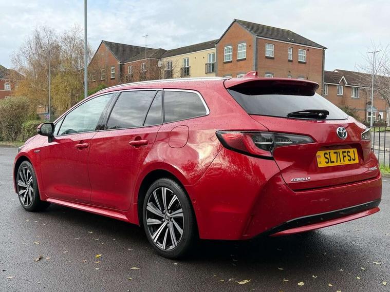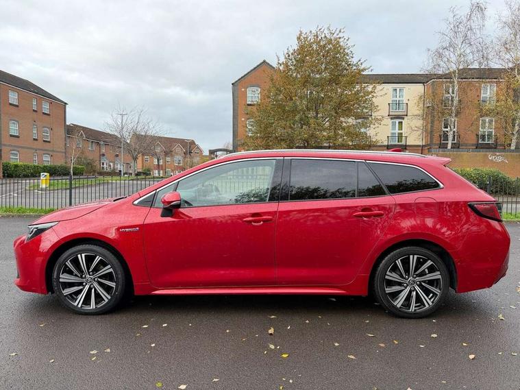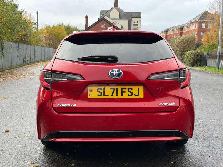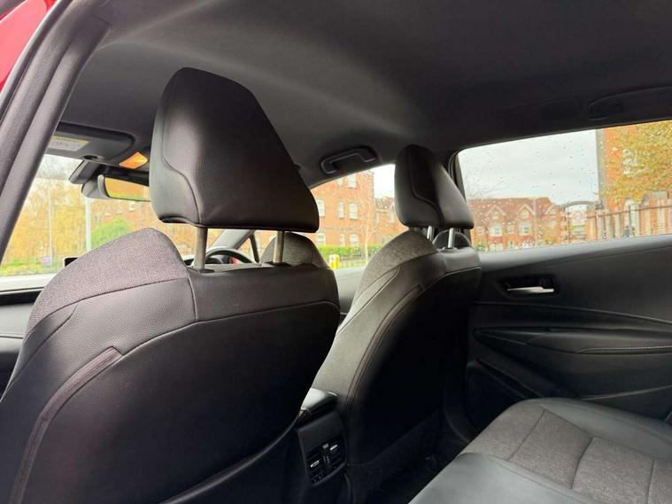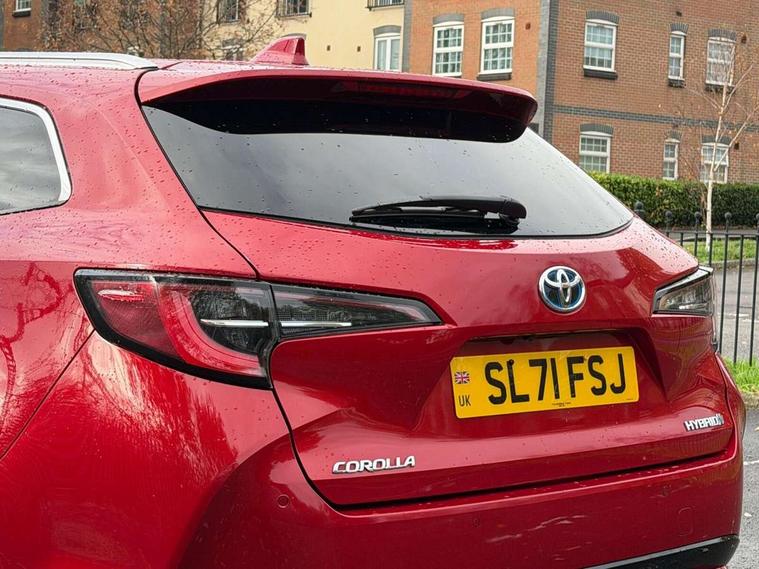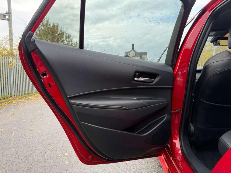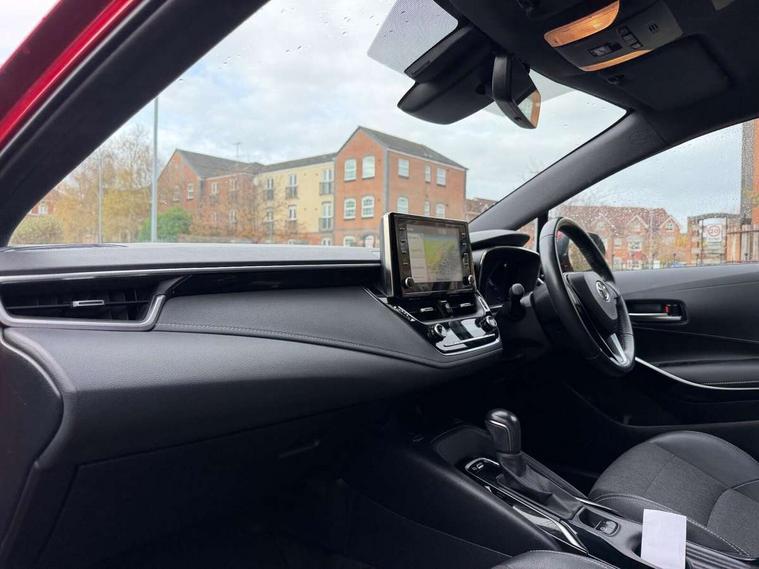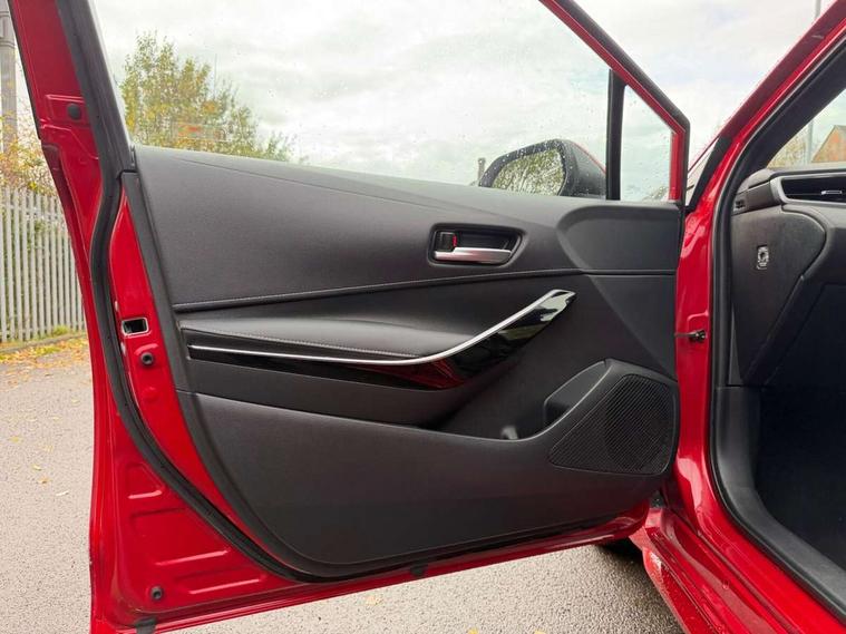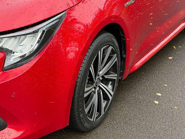 7" Multi information display screen, Bluetooth telephone connectivity, Connected car functionality upgrade, tracker, remote status and e-care, Door trim and centre console material, Dynamic radar cruise control (with RSA) including switch on steering wheel, E-call, Electrically assisted power steering, EV drive indicator, Intelligent park assist, Lane Departure Alert (LDA) switch on steering wheel, Memory on adjustable speed limiter, Push button start, Reversing camera, Smartphone integration with Apple CarPlay and Android auto, Gasoline particulate filter, Vehicle Stability Control (VSC), 6 speakers, 8" Touchscreen with MM19 Multimedia system and voice recognition, AM/FM radio, DAB Digital radio, Toyota touch 2 with go navigation system, USB and Aux in connectors + 12V front outlet, USB charging port in centre storage box, Aluminium roof rails, Anti-jam protection on power windows, Auto dimming inside rear view mirror, Auto up and down function on all power windows, Automatic folding mirrors, Automatic headlights with high beam assist, Black metallic surround on lower front grille, Black toyota logo in front, Body colour rear spoiler, Body coloured bumpers, Body coloured door mirrors, Body coloured outside door handles, Follow me home headlights, LED daytime running lights, LED front fog lights, LED Headlights, LED High mounted stop light, LED rear combi lights with LED lightguide, Noise reduction layer on front windows, Power adjustable heated door mirrors, Power front windows, Power rear windows, Privacy glass, Rain sensing wipers, Rear window defogger, Rear window wiper, Reverse tilting door mirrors, Shark fin antenna, Time adjustment on intermittent wiper, Turning signal integrated indicators in door mirrors, Unique lower skirt, Unique side rocker with black insert, UV-filter on driver and passenger windows, 12v power outlet - luggage side, 3 rear headrests, 3 spoke leather steering wheel + gear knob, 60/40 split folding rear seat, Adjustable speed limiter switch on steering wheel, Audio, multimedia and telephone switches on steering wheel, Blue ambient interior illumination to centre tray, front cup holders and front door trim, Boot light, Boot underfloor storage, Clean air filter, Driver and front passenger personal light, Driver and passenger assist grip, Driver and passenger sun visor with mirror and light, Dual sided deck board in boot, Dual zone automatic air conditioning with ECO mode switch, Fabric/synthetic leather upholstery, Front and rear cup and bottle holders, Front and rear door pockets, Front head restraints, Heated driver and front passenger seats, Illuminated entry system in room lamp, ISOFIX seat fixing (2 fixings on rear outer seats), Leather gear shift with satin chrome on gear shift console, Leather style armrests, Manual height adjustable for driver and front passenger seat, Passenger seat back pocket, Pollen filter, Power adjustable lumbar support on driver seat, Power window switches with satin chrome inserts, Rear armrest with 2 cupholders, Rear passenger air vents, Rear passenger coat hooks (2), Rear passenger personal lights, Retractable tonneau cover with luggage partition net, Satin chrome inside door handles, Shopping bag hooks in luggage compartment, Side storage in boot, Sliding armrest on centre console box, Slow opening glovebox with lights, Tilt/telescopic steering column, Tonneau cover with under floor storage, Voice recognition switch on steering wheel, Whiplash Injury Lessening (WIL) feature (active headrest) for seats, Parking pack - Corolla, Toyota safety sense 2 pack - Corolla, 3x3 point rear seatbelts, Adjustable driver and front passenger seat belt extender to top anchor point, Anti lock braking system + Electronic brake force distribution, Brake assist function, Downhill Assist Control (DAC), Electronic parking brake, Emergency brake light signal (EBS), Front passenger airbag on/off switch, Front seatbelt reminder, HAC - Hill start assist control, Rear seat belt reminder, Seatbelt pretensioners and force limiters, Supplemental restraint system (SRS) 7 airbags - dual driver, dual side curtain, side impact and driver knee airbags, Traction control, Tyre pressure warning system, Acoustic vehicle alert system (AVAS), Alarm with motion sensor and immobilizer, Remote central locking + deadlocks, Smart entry, Satin chrome dash trim, Soft touch texture on upper dashboard, Stitching on lower dashboard, Tyre repair kit, Unique wheel finish with red wheel cap,