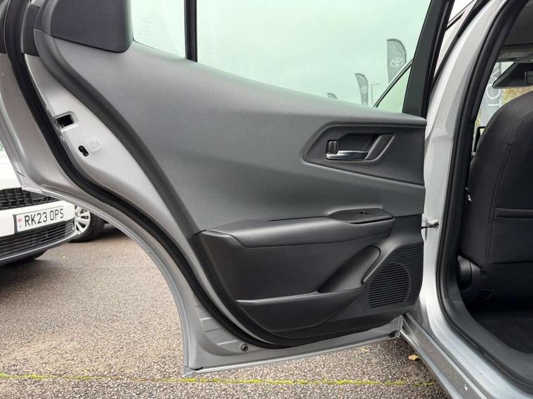 12.3" multimedia display screen, 7" Multi information screen, Acceleration suppression at low speed, Adaptive cruise control [ACC] switch on steering wheel, Blind spot monitor and safe exit assist, Bluetooth connectivity, Digital speedometer, Driver monitoring camera, Dynamic guide lines on reversing camera, eCall emergency call system, Emergency driving stop system, Emergency steering assist with active support and pre collision system, Front Cross Traffic Alert, Hybrid system indicator, Intelligent adaptive cruise control, Intelligent parking sensors front and rear with rear pedestrians, Lane change assist, Lane trace assist, Multi information display switches on steering wheel, MyT connected services, PAS, Pre collision system with intersection detection, Precaution Illumination on dashboard ambient light, Proactive driving assist (PDA), Push button start, Rear cross traffic alert with brake assist, Remote boot door release in cabin, Reversing camera, Road sign assist - RSA, Safe exit assist, Smart entry and push button start, Smart voice assist, Speed limiter switch on steering wheel, Speed limiter with road sign assist, Telephone switches on steering wheel, Touch 2 Go navigation system, Toyota smart connect multimedia system, Voice recognition, Wireless Smartphone integration incl Apple CarPlay, 3.3 kW Standard charger, Fast charger 32A Mennekes cable, Vehicle Stability Control (VSC), 2 USB-C connectors front, 2 USB-C connectors rear, 2x USB sockets in front armrest, 6 speakers, DAB Radio (Digital Audio Broadcasting), Road events, Anti-jam protection on power windows, Auto headlights, Auto up and down function on power windows, Auto wipers, Automatic high beam, Automatic rear flashing hazard lights, Black door moulding, Black rear bumper, Black surround on lower front grille, Black wheel arch mouldings, Boot door release with push button, E-switch operated rear door handles, Electric heated door mirrors, Follow me home headlights, Grille shutter, Indicators integrated on door mirrors, Infrared filter on windshield, LED daytime running lights, LED Headlights, LED High mounted stop lamp, LED Indicators, LED rear combination lights, Manual day/night rear view mirror, Manual front door handles, Manual headlight levelling, Noise reduction layer on windscreen, Power adjustable door mirrors, Power retractable door mirrors, Privacy glass for rear window, Rear fog lights, Rear side wing doors, Rear spoiler, Rear window wiper, Rear windscreen defogger, Shark fin antenna, Silver lower front grille, UV-filter on driver and front passenger windows, 12v power outlet - front, 2 cup holders in front, 2nd row rear passenger room LED light, 3 seat bench in 2nd row, 3 spoke premium animal friendly leather steering wheel, 60/40 split folding 2nd row rear seats, Adjustable rear headrests, Ambient lighting on dashboard, Assist grips front, Assist grips rear, Boot 230V power outlet, Boot light, Boot underfloor storage, Charge cable bag, Driver and front passenger personal LED lights, Driver and front passenger Whiplash Injury Lessening seats, Foldable tonneau cover, Front and rear door pockets, Front head restraints, Front passenger seatback pockets, Gloss black insert on centre pillar, Glovebox with light, Heat pump system with humidifier, ISOFIX child restraint system, LED front room light, Luggage floor board with protection mat, Manual telescopic steering wheel, Manual tilt steering wheel, Manually height adjustable driver seat, Manually reclining driver seat, Manually reclining front passenger seat, Manually sliding driver seat, Manually sliding front passenger seat, Microphone on front personal light, Mirror on driver sun visor, Mirror on passenger sun visor, Multimedia switches on steering wheel, Nanoe-X air purifier, Pollen air filter with deodorising odour eliminator, Power adjustable lumbar support on driver seat, Power window switches with satin chrome inserts, PVC gear shift knob, Rear cup holders, Rear headrests, Remote dual zone automatic air conditioning, Satin chrome interior door handles, Single front passenger seat, Soft-touch front door armrests, Soft-touch rear door armrests, Sports fabric upholstery, White ambient lighting in footwell, 3 point seatbelts on all seats, Acoustic vehicle alerting system, Anti lock braking system + Electronic brake force distribution, Child safety door lock, Driver and passenger central airbags, Driver and passenger front airbags, Driver and passenger side airbag, Driver knee airbag, Electronic parking brake, Front to front oncoming car and motorbike daytime detection, Passenger airbag on/off switch, Pre collision system with pedestrian, cyclist and motorbike detection, Pre-tensioners and force limiters, Rear seat reminder alert, Toyota safety sense with over the air updates, Tyre pressure warning system, Driver power door lock, Glass-breaking alarm sensors, Immobiliser, Intrusion alarm, Intrusion sensor, Motion sensor alarm, Remote door lock, Smartphone remote door lock, Smartphone remote hazard lights system, Wheel Nuts, Metallic effect insert on dashboard, Soft-touch front door trim, 17" 5 spoke dark grey aerodynamic alloy wheels with full wheel caps, Tyre repair kit,