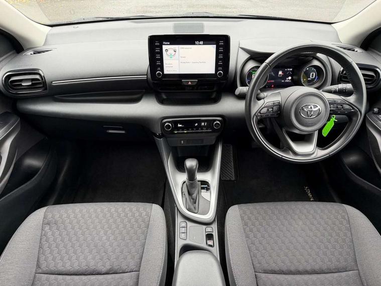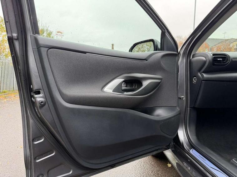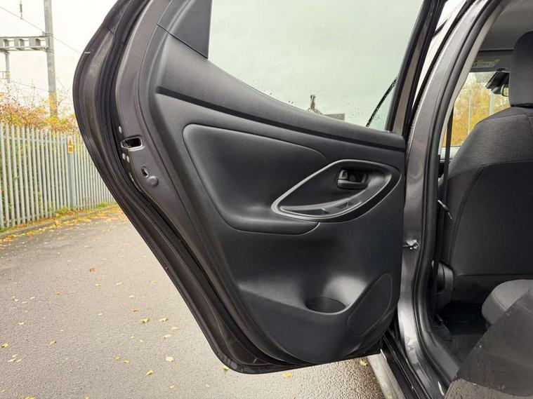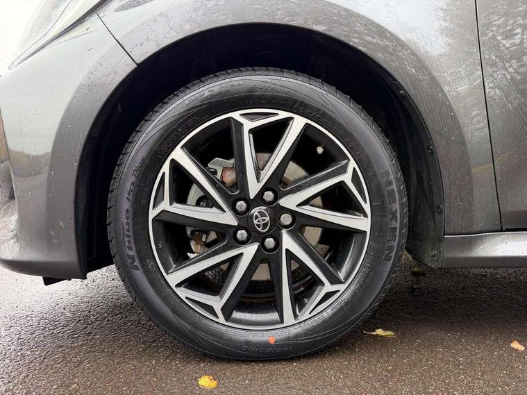 Adaptive cruise control, Adjustable speed limit with speed warning, Bluetooth connectivity, Colour binocular inspired displays with digital speedometer, E-call, Electric power steering, Hybrid energy display, Multi information display switches on steering wheel, Reversing camera, Smartphone integration with Apple CarPlay and Android auto, Tailgate, Voice recognition, Vehicle Stability Control (VSC), 4 speakers, 8" Multimedia display touch screen, Toyota Touch 2 with DAB, USB connection, Acoustic windscreen glass, Auto windscreen wipers, Automatic headlights, Body coloured door mirrors, Electric adjustable heated door mirrors, Follow me home headlights, Front auto power windows with anti jam protection, Full LED rear lights, LED daytime running lights, LED front fog lights, LED front light guide, LED Headlights, LED High mounted stop lamp, LED Indicators, LED rear light guide, Manual headlight levelling, Painted chequered front grille, Rain sensor, Rear auto power windows with anti jam protection, Rear privacy glass, Rear side wing doors, Rear spoiler, Rear wiper, Shark fin antenna, Turning signal integrated indicators in door mirrors, Variable front intermittent wipers, 3 adjustable rear headrests, 3 seat bench in 2nd row, 3 spoke leather steering wheel, 60/40 split folding rear seat, Adjustbale boot height, Auto air conditioning, Coat hooks in rear grab handles, Cup holders (2 front & door), Data Communication Module (DCM) connected services, Fabric upholstery, Front armrest, Glovebox, Grey roof lining, Height adjustable driver's seat, Isofix seat fixing, Leather gearshift, Pollen filter, Shopping bag hooks, Single front passenger seat, Tilt/telescopic steering column, 3 point seatbelts on all rear seats, ABS+EBD+Brake assist, Active headrests, Electronic parking brake, Emergency brake light system (EBS), Front passenger airbag on/off switch, Front seatbelt reminder, Hill start assist control (HAC), Rear child proof door locks, Rear seat belt reminder, Supplemental Restraint System (SRS) 8 airbags: Driver & passenger's airbags, dual side curtain airbags, side impact airbags, front centre airbag, Toyota Safety Sense 2, Precollison + Night time Pedestrian & Cyclist Detection, Lane Trace Assist, Auto High Beam, Intelligent ACC & Road Sign Assist, Tyre pressure warning system, 2x Master key, Alarm/immobiliser, Remote powered central double locking doors, Soft touch instrument panel, Space saver spare wheel,
