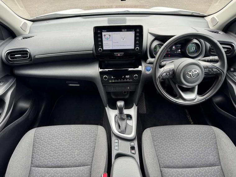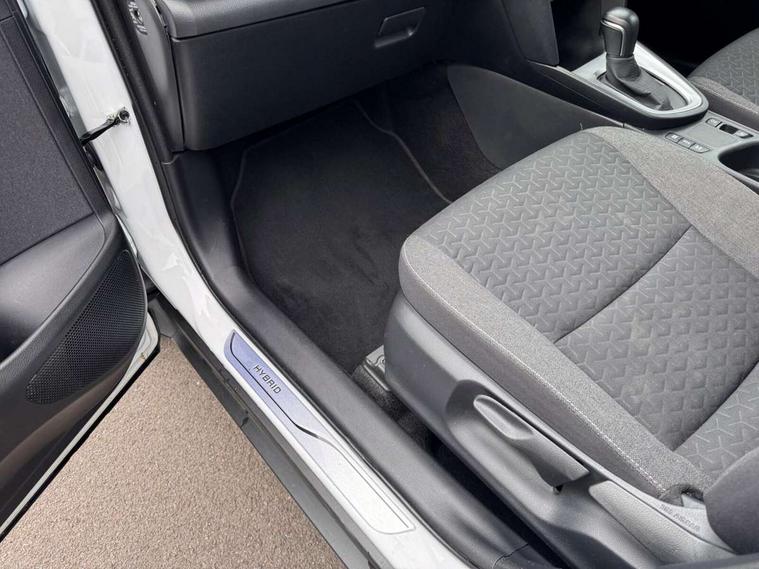 4.2" multi information display, 8" Toyota touch 2 multimedia system with Smartphone integration with Apple CarPlay and Android auto, Adjustable speed limiter, Bluetooth connectivity, Digital speedometer, Driver attention alert system, eCall emergency system, Electric power steering, Full range intelligent adaptive cruise control, Hybrid system indicator, Key reminder warning, Lane trace assist, Multimedia, audio, telephone and voice recognition switches on steering wheel, My T Connected services, Pre-collision system enhanced with emergency steering assist, Reversing camera, Road sign assist - RSA, Steering assisted vehicle stability control, 6 speakers, DAB Digital radio, USB connection, 3rd brake light, Acoustic windscreen glass, Anti-jam protection on power windows, Auto high beam [AHB] with on/off switch, Automatic headlights, Black lower front grille, Black Shark-fin antenna, Black upper front grille, Black wheel arch mouldings, Body colour door handles, Body colour front bumper, Body colour rear bumper, Electric adjustable heated door mirrors, Follow me home headlights, Front and rear electric windows with auto up/down function, Front intermittent wipers, Halogen projector headlights, Headlight cut off reminder, Indicators integrated on door mirrors, Intermittent rear wiper, LED daytime running lights, LED Indicators, Manual headlight levelling, Manually retractable door mirrors, Noise reduction layer on windscreen, Rain sensor, Rear side wing doors, Rear spoiler, Rear window defogger, 12v power outlet - front, 2x Rear coat hooks, 3 seat bench in 2nd row, 3 spoke leather steering wheel, 60/40 split folding rear seat, Adjustable speed limiter switch on steering wheel, Auto air conditioning, Boot light, Central armrest, Driver and front passenger personal lights, Fabric door trim, Fabric upholstery, Front console box, Front cup holders, Front head restraints, Glovebox, Grey roof lining, Height adjustable driver's seat, Height adjustable front passenger seat, ISOFIX child restraint system, Lane departure alert switch on steering control, Leather gearshift, Manual telescopic and tilting steering wheel, Mirror on driver and passenger sun visor, Pollen air filter, Rear head restraints, Single front passenger seat, Soft tonneau cover, 3x3 point rear seat belts, ABS+EBD+Brake assist, Driver and passenger central airbags, Driver and passenger front airbags, Driver and passenger side airbags, Electronic parking brake, Emergency brake light system (EBS), Front seat belt reminder, Hill start assist control (HAC), Passenger airbag on/off switch, Pre-collision system with pedestrian and cyclist detection, Rear door child safety locks, Rear passenger side airbags, Rear seat belt reminder, Traction control, Tyre pressure warning system, Immobiliser, Intrusion alarm, Keyless smart entry with push button start, Power door locks, Power passenger window lock, Remote door lock, 16" 10 spoke alloy wheels, Tyre repair kit,