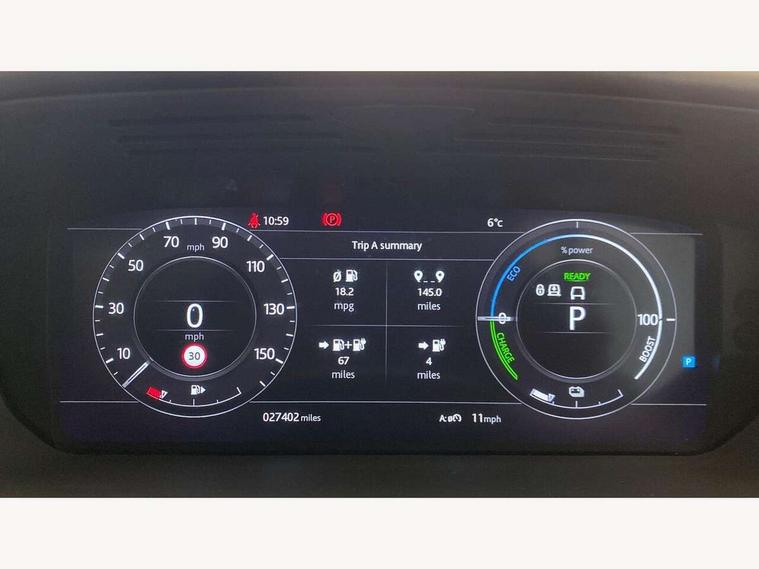 360 degree Park Distance Control, 360 degree surround camera, Blind spot assist, Bluetooth mobile phone connection, Clear exit monitor, Driver condition monitor, Dynamic route guidance, Electric power assisted steering (EPAS), InControl remote premium, InControl secure Tracker, Interactive Driver display instrument cluster, Lane keep assist, Navigation pro system with 10" touch screen, app interface and media storage, Park Assist - Parallel Park/Parking Exit/Perpendicular park, Powered gesture tailgate/boot lid, Pro services and wifi hotspot, Push button starter, Rear camera wash, Rear traffic monitor, Rotary shifter, Service interval indicator, Surround camera system, Touch pro duo system, Traffic sign recognition with adaptive speed limiter, Trip computer, Voice control system, 8 speed automatic transmission, Adaptive dynamics, All Wheel Drive (AWD), Automatic access height, Electronic air suspension, Home charging cable, Terrain Response 2 Auto, Twin speed transfer box, Digital Audio Broadcast radio-DAB, Digital TV, InControl app, InControl protect, USB socket, Acoustic windscreen, Auto dimming interior rear view mirror, Auto self levelling headlights, Automatic headlights, Body coloured bumpers, Centre high mounted stop light, Door/quarter lights in toughened plate glass, Electric windows with one touch open/close and anti trap, Electrical towing preparation, Follow me home headlights, Front and rear recovery eyes, Front fog lights, Headlamp power wash, Heated rear window, Heated windscreen, Illuminated aluminium treadplates with Autobiography script, Integrated twin tailpipes, Laminated front and rear side glass, LED rear lamps, LED tail lights, P400e Autobiography badge, Power fold, auto-dimming, heated door mirrors with memory and approach lights, Power front/rear windows with global close, Rain sensing windscreen wipers, Rear fog lights, Rear wash/wipe, Side repeater indicators in mirror, Trailer stability assist, 12V power point in luggage area, 12V power sockets, 3 rear headrests, Centre console with storage and armrest, Configurable Ambient interior lighting, Customer configurable single point entry, Driver and passenger front seat armrests, Easy boot loading, Electrically adjustable steering column, Extreme passenger seat away, Folding rear seats, Four zone climate control, Front and rear cupholders, Front and rear grab handles, Front seat back map pockets, Heated steering wheel, Loadspace cover, Loadspace light, Lockable glovebox, Luggage compartment lighting, Luggage tie down in loadspace, Parking heat with remote control, Perforated Semi-Aniline leather upholstery, Power deployable rear centre console, Premium carpet mats, Rear centre armrest, Rear ISOFIX, Rear seat lumbar and powered headrest with wings, Remote intelligent seat fold, Soft close doors, Through load facility, Twin blade sunvisors with Illuminated vanity mirrors, 3 rear 3 point seatbelts, Anti-lock braking system (ABS), Auto lock system when vehicle in motion, Cornering brake control (CBC), Curtain airbags, Customer configurable autolock, Driver/front passenger head+thorax airbag, Drivers knee airbag, DSC - Dynamic Stability Control, Electronic brake force distribution, Electronic parking brake, Electronic traction control, Emergency brake assist, Emergency braking, ESP, Front airbags with passenger seat occupant detector, Front seatbelt pretensioners with force limiters, Front side airbags, Height adjustable front seatbelts, High speed emergency braking, Hill descent control, Hill launch assist, Low traction launch, Power operated child locks, Roll stability control, Tyre pressure monitoring system (TPMS), Immobiliser, Intrusion sensor and alarm, Keyless entry, Locking wheel nuts, Remote central locking, Tyre repair system,