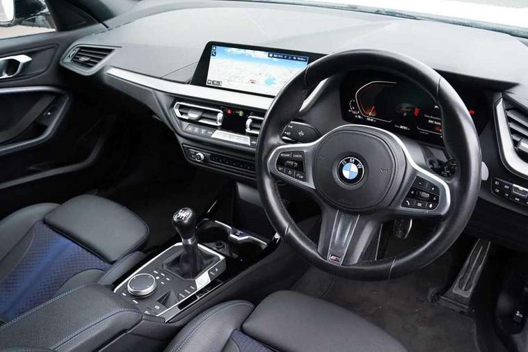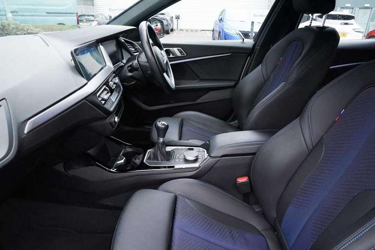 Active guard plus, Attentiveness assist, Bluetooth / WiFi interface for wireless connection of mobile terminal devices and audio streaming, BMW ConnectedDrive online services, BMW Teleservices, Check Control warning system for monitoring of lights and door/luggage compartment open warning, Cruise control with brake assist, Eco pro mode, Front axle single joint with specific axle kinematics to minimise drive influences on steering + provide increased rigidity agile driving behaviour, Integrated owners handbook, Lane departure warning system, Oil sensor for level and grade, On board computer, Optimum shift indicator, Personal Profile, Pull away assistant, Rigidly mounted rear subframe - Multi link construction with separate spring / damper configuration and excellent driving characteristics, Speed limit Info including no-overtaking indicator, Speed limiter, Aluminium lightweight construction, Anti roll bar front and rear, Balancer shaft, Double VANOS twin scroll turbocharging system, Drive Performance Control, Electronic differential lock, High precision injection, M sport suspension, Petrol Particulate Filter, Twin tube gas filled shock absorbers with degressive characteristic curve, VALVETRONIC engine management, DAB Digital radio, Auto dimming rear view mirror, Automatic headlight beam throw control, Automatic windscreen wipers and automatic headlight, Body colour door handles, Body colour mirror caps, Body colour roof trims, Chrome 'M' logo side designation, Chrome exhaust twin tailpipes round 90mm in left, Chrome kidney grille frame with Satin Aluminium struts, Direction indicator side lights in exterior mirrors, Fading support, Folding side mirrors with auto dimming/folding wing mirrors with auto dimming, Follow me home headlights, Front and rear bumper system with replaceable deformation elements, Front and rear electric windows with open and close fingertip control, anti trap facility and comfort closing, Front door sill finishers in black plastic with M designation in metallic look, Green tinted heat protection glazing, Heated, electrically adjustable exterior mirror aspheric on driver side, convex on passenger side, High gloss shadowline window frame, Recess cover mirror frames and B/C pillar embelisher trim, High level third brake light, Integrated front windscreen with washer jets, LED daytime running lights, LED eyebrow turn indicators, LED front fog lights, Lightweight engineering, Matt black air guide grilles, Matt black wheel arch trim, Model designation on electric bootlid, Nearside reverse light in rear light cluster, Preparation for high beam assistant, Rear fog lights, Rear side wing doors, Rear window wiper, Shark fin antenna, Trailer stabilisation logic, Visible VIN plate, Welcome lighting, 12V power socket in front centre console with blanking plug, 3 rear seat head restraints, 3 seat bench in 2nd row, 3 spoke sports leather steering wheel in black leather with black stitching and decorative finisher in pearl chrome, specific M badge + leather knob, Ambient interior lighting, Anthracite headlining, Black boot net with lashing eyes, Cargo function on 2nd seat row, Child seat ISOFIX attachment for two outer rear seats and front passenger seat with anchorage points, Conditioned based service, Driver and front passenger seat heating, Folding rear clothes hook, Four grab handles integrated in roof lining, Front and rear door pockets with bottle holders, Front and rear side armrest integrated into door trim, Front armrest, Front sports seats, Gearshift lever with M designation, Glove compartment, Height adjustable front head restraints, Luggage compartment for bag hooks on left and right, foldable luggage compartment liner and four lashing eyelets, Manual adjust steering wheel, Multi-function controls for steering wheel, Single front passenger seat, Storage compartment in centre console, Sun visors with vanity mirrors and insert tab, Two front centre console cupholders, Two zone automatic air conditioning, Velour floor mats, Additional interior lighting pack - 1 Series, BMW live cockpit professional pack- 1 Series, Connected pack professional - 1 Series, Interior lights pack - 1 Series, M Sport exterior styling aerodynamics pack - 1 Series, 2 tone horn, 3 point seatbelts on all seats, front pyrotechnic belt tensioners, stopper and belt force limiters, rear coded belt buckles, Airbags - Front driver/passenger, front and rear curtain head protection, front side, manual deactivation of front passenger airbag, Anti lock braking system (ABS) with brake assist, BMW emergency call, Brake drying, Braking readiness, Child proof locking system in rear door, City braking function, Comfort modes, Cornering brake control, Crash sensor activating central locking release, hazard warning lights, fuel cut off, interior lighting + activation of safety battery terminal clamp, Driver and front passenger seat belt security check, Dynamic stability control + (DSC+), Dynamic Traction Control - DTC, Electrically operated hand brake, Front and rear disc brakes, Seatbelt warning, Side impact protection, Tyre pressure monitoring system, Warning triangle and first aid kit, Central locking switch for all doors, fuel filler cap and luggage compartment, Deadlocking function system to all doors, Drive away locking system on all doors and luggage compartment with de-activated in iDrive settings, Locking wheel bolts, Remote control with integrated key with High-gloss Black inlay and M designation and 1 button for open/ close lock, window, open luggage compartment, Start/stop button illuminated in centre console with keyless engine start and auto start stop deactivation button, Thatcham Cat.1 alarm and immobiliser, Wheel slip limitation close to the actuator (ARB), Contrast stitching on instrument panel, Electrically powered 12V compressor, Reduced rolling resistance tyres,