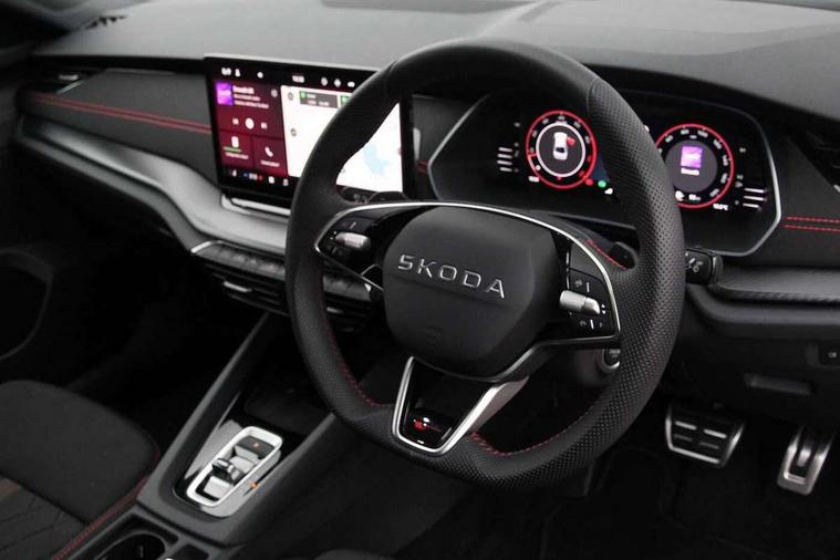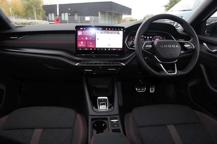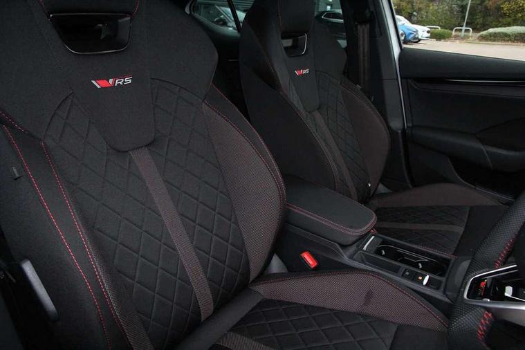 1x USB Typc C port in rear view mirror, 4x USB Type C ports - 2x in front centre console and 2x in rear (45W), Drive mode selection, Driver fatigue sensor, eCall emergency system, Electrically operated boot with virtual pedal, Front assist system, Progressive dynamic steering, Traffic sign recognition, Turn Assist, Virtual Cockpit - 10.25" digital display, Voice control system, Wireless charging (15W) with cooling function, Wireless SmartLink for Apple CarPlay and Android Auto, Electronically controlled limited slip differential, vRS suspension, 13" touchscreen display with navigation, DAB Digital radio, Aero front windscreen wipers with intermittent function, Auto dimming rear view mirror, Black sport exhaust pipes, Body colour bumpers, Body colour door handles, Electric front and rear windows, Exterior gloss black sports styling including front grille, window surrounds, door mirrors and badging, Gloss black diffuser, Gloss black spoiler, Heated rear windscreen, High beam control, High level third brake light, Ice scraper in fuel cap, LED daytime running lights, Logo projection in front doors, Rain and light sensors, Rear fog light on one side, Rear privacy glass, Rear side wing doors, Unique vRS bumpers and exterior styling, 12 volt socket in boot, 3 rear headrests, 3 seat bench in 2nd row, 4 foldable roof handles, Aluminium pedals, Front head restraints, Front sport seats, Heated front seats, Illuminated glovebox, Interior door handles in dark chrome, Jumbo Box storage, Luggage compartment lighting x2 lights, Mechanical rear seat release from boot, Parcel shelf - folding, Single front passenger seat, Steering wheel in black leather with black stitching, Storage compartments in left and right of boot, Sun visors with mirrors, Sunglasses storage, Ticket holder, Umbrella in door panel, Unsplit rear bench seat, split folding backrest with centre armrest with cupholder, Waste bin in door panel, Comfort package - Octavia, Family package - Octavia, Light and view package plus - Octavia, vRS Design Selection pack - Octavia, 3x3 point rear seat belts, Alarm with interior monitoring, tilt sensor and back up horn, Curtain airbags and front side airbags, Driver and front passenger airbags, Drivers knee airbag, Electronic parking brake, ESC including ABS, EBV, MSR, ASR, EDS, HBA, DSR, Front central airbag, Hill hold assist, ISOFIX on front passenger seat and outer rear seats, Passenger airbag deactivate switch, Red brake calipers, Three point seat belts in front and rear, Two tone horn, Tyre pressure monitor, Visual and acoustic seat belt reminder, Warning reflectors in front door, Anti-theft wheel bolts, Keyless start/stop, Remote central locking, Gloss black air vent surrounds, 19" Elias anthracite alloy wheels,