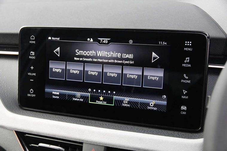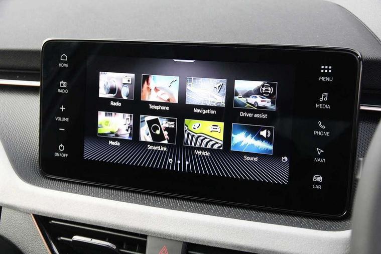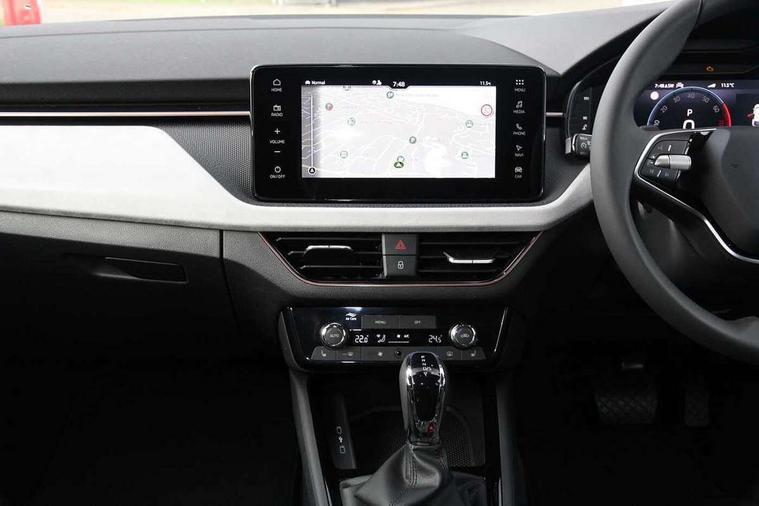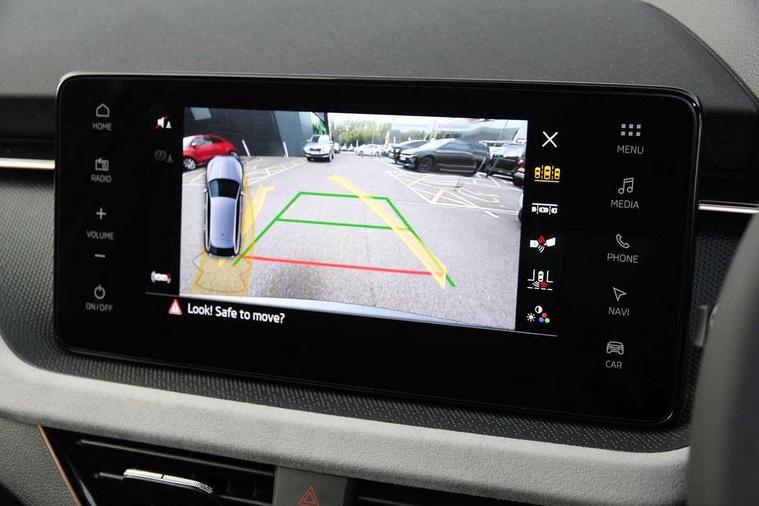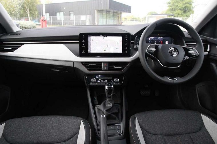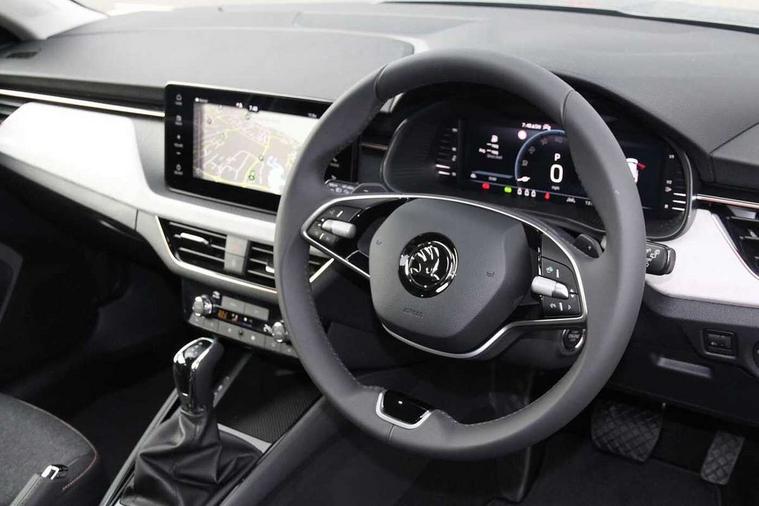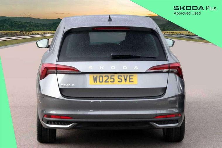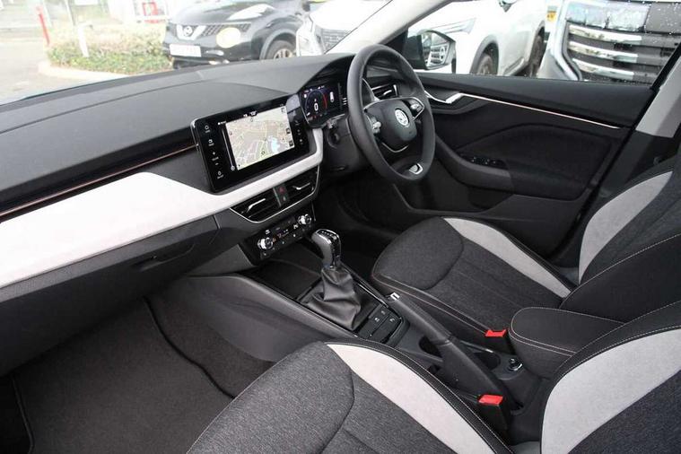 Advanced driver attention and drowsiness monitor, Bluetooth, e-Call (emergency call), Front assist system, PAS, Rear parking sensors, Rear view camera, Speed limiter, Tailgate, Traffic sign recognition, Virtual Cockpit - 10.25" digital display, Voice control system, Wireless smartlink, 4 USB C ports, 8 Speakers, 9.2" Skoda navigation display, DAB radio, Auto dimming rear view mirror, Automatic headlamp activation with Coming home and Leaving home feature, Automatic high/low beam, Automatic intermittent wipers, Body colour bumpers, Body colour door mirrors and handles, Chrome moulding around grille, Chrome window frames, Front and rear electric windows, Heated rear window, LED 3rd brake light, LED brake lights, LED daytime running lights, LED front turning lights, LED high beam, LED low beam, Light sensors, Privacy glass, Rear LED fog light, Rear side wing doors, Rear wiper, Tinted windows, Unique dark chrome design logo on alloy wheels, 12V socket in luggage compartment, 3 seat bench in 2nd row, Ambient lighting in white/red, Black / Copper armrest stitching, Cargo elements, Chrome inner door handles, Copper hotstamping, Door inserts in accent black, Driver and passenger sun visors with vanity mirror, Dual zone climate control, Front and rear roof lights, Front centre armrest, Front head restraints, Glasses storage in roof liner, Height adjustable driver seat, Height adjustable passenger seat, Ice scraper, Illuminated glove compartment, Inner circulation control with pollen filter, ISOFIX for front passenger seat, Isofix preparation for back seats, Leather gearknob and handbrake lever, Lodge cloth upholstery, Luggage net under rear parcel shelf, Manual lumbar support for front seats, Net package and top tether hooks in boot space, Pearl grey ceiling, Pocket on the back of both front seats, incl. mobile phone pockets, Rear centre armrest, Single front passenger seat, Skoda lettering on steering wheel, Textile floor mats, Third rear headrest, Ticket holder, Top tether for front passenger seat, Umbrella in driver's door, Convenience pack without rear camera - Scala, 3x3 point rear seatbelts, ABS, Child locks, Curtain airbags and front side airbags, Disc brakes, Driver and front passenger airbags, ESP, Hill hold control, Manual leather parking brake, One tone horn, Passenger airbag switch off function, Seatbelt reminder for driver and front passenger, Tyre pressure monitoring system, Anti theft alarm system with interior monitoring, backup horn and towing protection, Anti-theft wheel bolts, Remote central locking with 2 remote folding keys, SAFE function for remote central locking, Decorative inserts,