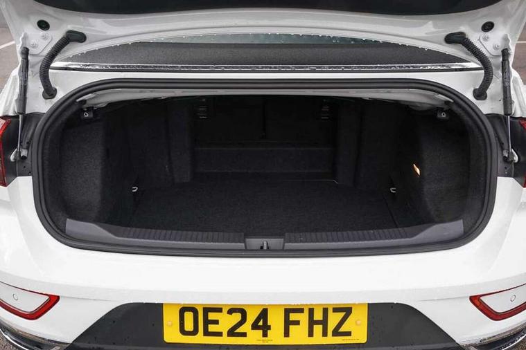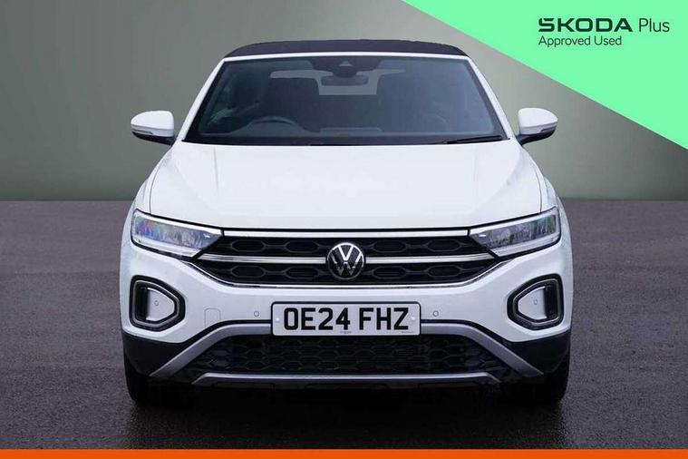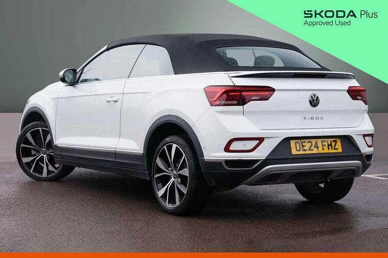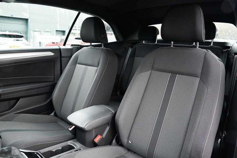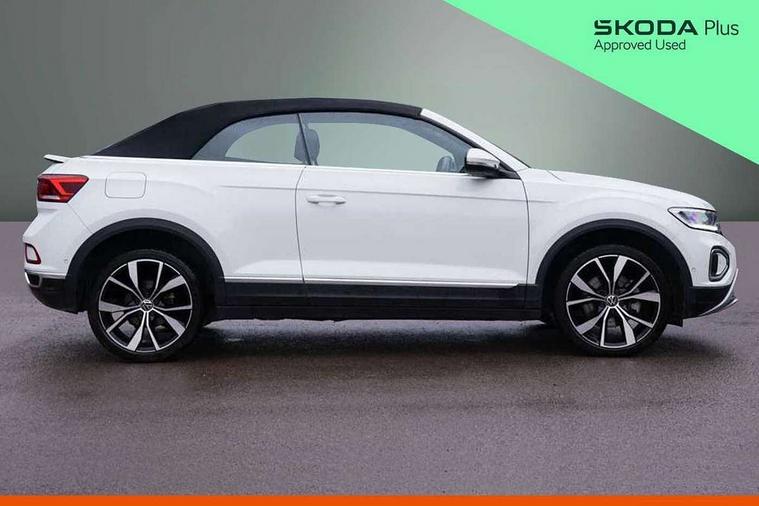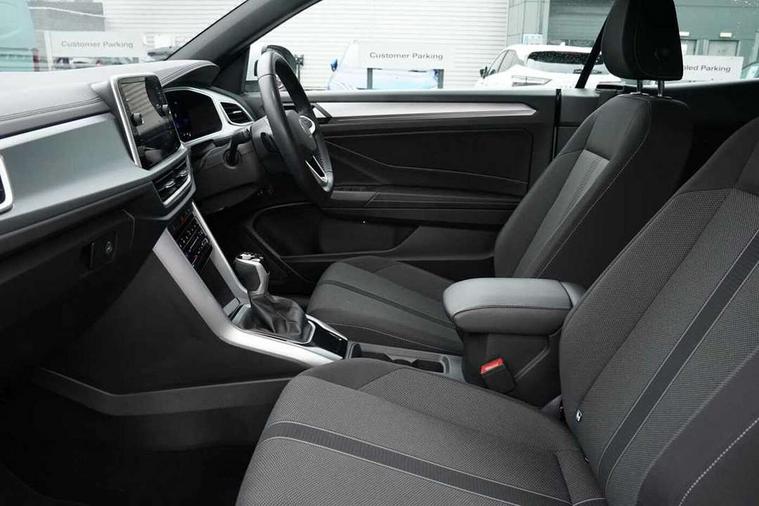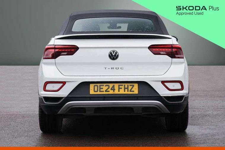 Adaptive cruise control and speed limiter, Advanced driver attention and drowsiness monitor, Bluetooth mobile phone interface, Brake pad wear indicator, Car information display, Driver tips and journey analysis, Emergency call service, Modified key software - reduce switch off time for key status change to Long no motion, Multifunction computer with visual gear change recommendation for fuel consumption, Multifunction front facing camera, Online services, Park assist including front and rear parking sensors, Speedo and rev counter, electronic odometer, trip, service interval display and exterior temperature gauge, Start/stop system with brake energy recovery, Tailgate/trunk lid release from outside, Warning sound and light for front seatbelts unfastened, Diversity antenna for FM reception, Music playback - MP3, WMA and AAC files, SMS functionality - read, compose and send SMS messages using touch-screen display, Title and cover art display, USB-C Interface and USB charging socket, We Connect and We Connect Plus functionality, Ambient lighting with logo projection, Auto dimming interior rear view mirror, Automatic hazard lights activation under emergency braking, Automatic headlight control with LED separate daytime running lights with coming/leaving home function, Black roof, Body colour door handles, Body colour rear spoiler, Body coloured bumpers and radiator grille with chrome trim and front fog lamps with chrome bezel, Chrome effect left and right trapezoid exhaust tailpipe fascia surround, Dark red rear combination lamps in LED technology, Dusk sensor, Exterior mirrors aspherical on driver side, convex on front passenger side, Headlight range control, Heat insulating glass windscreen, High level 3rd brake light, LED rear number plate lights, Power operated canvas convertible top, Power windows with comfort operation and circuit breaker, Rain sensor, Rear boot, Rear exhaust tailpipe, Rear fog light on one side and reversing lights on both sides, Remote electrically foldable door mirrors, puddle lights and reverse activated passenger door mirror, Volkswagen roundel, Windscreen wiper with intermittent wipe light, Without exterior ambient lighting, 12V socket in centre console storage area, 2 LED front reading lights, 2 seat bench in 2nd row, 50:50 Split folding rear seat backrests with fixed rear seat bench, Air care climatronic air conditoning system with active combination filter and 2-zone temperature control, Black door lower parts with chrome trim, Chrome plated surround to light, mirror and window switch, Door and side trim panel with leatherette insert, Easy entry backrest release, Front and rear carpet mats with black stitching, Front centre armrest, Front cupholders x 2, Front door pockets, Front seat back storage pockets, Heated multi function steering wheel with tiptronic, Height/reach adjust steering wheel, Instrument lighting, white adjustable panel illumination, Interior light delay, Interior light in footwell, Interior lighting with switch off delay and contact switches on all doors, Interior white ambient lighting and surround lighting, Isofix child seat preparation, Lockable glove compartment with light, Luggage compartment lighting, Rear head restraints, Single front passenger seat, Sun visors with illuminated vanity mirrors, Driver assistance pack without proactive passenger protection - T-Roc Cabriolet DSG, 2 x 3-point seatbelts/outer rear seats with ECE label, Driver and front passenger airbag with front passenger airbag deactivation, Driver and front passenger safety-optimised head restraints, Drivers seatbelt reminder, Electronic parking brake, Electronic Stability Control (ESC) including ABS, ASR and EDL, Front and rear disc brakes, Front assist with autonomous emergency braking, Pedestrian monitoring, Predictive pedestrian protection, Rigid safety cell with front and rear crumple zones, Side airbag/thorax airbag system, for front passengers, Three point height adjust front seatbelts + pretensioners, Two tone horn, Tyre pressure loss indicator, Volkswagen roadside assistance, Anti-theft alarm system with interior protection and central locking system with SAFELOCK, radio remote control and 2 remote control folding keys, Electronic engine immobiliser, Trims for alloy wheels,