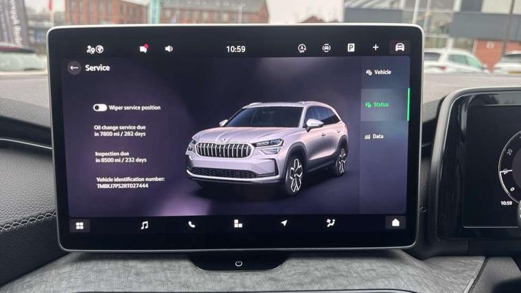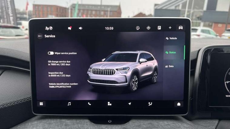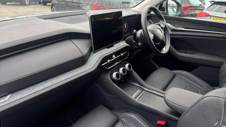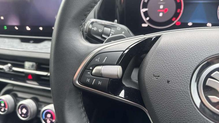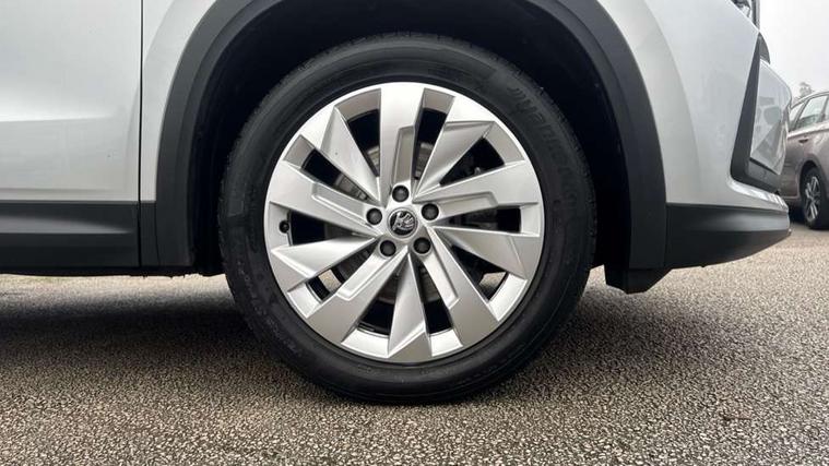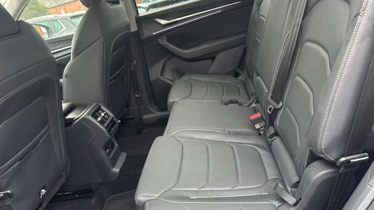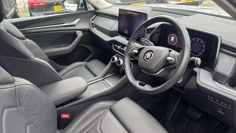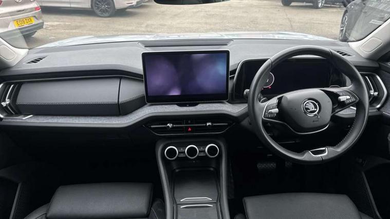 13" satellite navigation touchscreen display, Blind spot detection with door exit warning, Bluetooth system, Drive mode selector, Driver alert with fatigue sensor, Driver drowsiness alert system, Dry display cleaner, e call+, Front cross traffic assist, Lane assist, PAS, Rear traffic assist, Tailgate unlocking from outside, Traffic sign recognition, USB C Port x 2 in front centre console, Virtual Cockpit - 10.25" digital display, Voice control system, Wireless charging for two smartphones (15W) with cooling function, Wireless SmartLink for Apple CarPlay and Android Auto, Stop/start function, 2x USB-C in the rear, DAB Digital radio, Aero front windscreen wipers with intermittent function, Auto dimming rear view mirror, Black wheel arch surrounds, Body colour bumpers, Body colour door mirrors and handles, Cornering light and poor weather light, Electric folding /adjustable/separted heated/folding door mirrors, auto dimming with boarding sports and memory function, Electric front and rear windows, Heat insulating glass in windshield, Heated rear window, Ice scraper in fuel tank cap, Invisible tailpipe, LED daytime running lights, LED rear fog light, LED third brake light in rear spoiler, Light assistant with automatic headlight control and coming home feature, Logo projection in door mirrors, Privacy glass, Rear side wing doors, Rear spoiler, Rear window wiper, Safety reflectors on front and rear doors, Window control switches with black trim, Windscreen wipers with rain sensor, Without engine designation, 1.5l bottle holder points in all door, 12V socket in boot, 1x centre rear reading light, 2 seat bench in 3rd row, 3 configurable smart dials with 32mm coloured display, 3 seat bench in 2nd row, 4 foldable roof handles with rear coat hooks, Automatic gear selector on steering wheel, Chrome interior door handles, Driver/front passenger reading lights, Fabric headlining, Fixed bench 40:60:40 split folding backrests, Front and rear floor mats, Front centre armrest with jumbo box storage compartment, cup holder and 12V socket, Front courtesy lights, Height adjustable front headrests, Interior ambient lighting, Isofix child seat fittings in outer rear seats and front passenger with top tether, Manually adjustable steering column, Pollen filter, Rear centre armrest with cupholders, Rear seat boot backrest release, Retractable luggage compartment cover, Single front passenger seat, Sliding trunk cover, Small Bags on the inner sides of the front backrests, Storage pocket including mobile phone pockets on the backs of the front seats, Sunvisors with illuminated vanity mirrors, Three rear height adjustable headrests, Ticket holder on A Pillar, Tri zone climate control, Umbrella in door panel x1 made from sustainable materials, Upper and lower glovebox with card holder and coin compartment, USB C port by rear view mirror for charging only (15W), Exterior styling package - Kodiaq, Auto door release and activation of warning lights in the event of an accident, Driver and front passenger airbag with knee airbag and front passenger airbag deactivation, Electric child locks, Electronic parking brake, ESC (incl. ABS+EMD+MSR+ASR+EDL+HBA+DSR+RBS+ESBS+MCB+TSA+XDS), Front assist with braking reaction to vehicles, pedestrians and cyclists, Front disc brakes, Fuel cut off safety device, Height adjustable front 3 point seatbelts + pretensioners, Hill hold control, Junction assist with automatic emergency braking, Rear disc brakes, Safety vest holder in door, Seat belt reminder for all seats, Three point rear seat belts, Two tone horn, Tyre pressure monitor, Anti-theft wheel bolts, Immobiliser, Remote central locking with 2 keys, Black/grey fabric with green cross stitching on dashboard, Swan feathers grey dashboard and door decorative inserts, Breakdown kit,