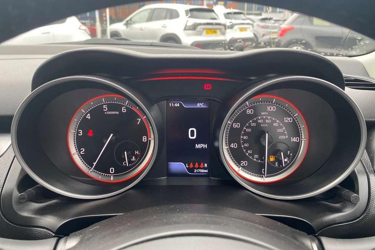Adaptive cruise control, Automatic start/stop system, Blind spot monitoring, Colour LCD information display, Fuel consumption screen, Lane departure warning system, Lights on warning, Low fuel level warning light, Navigation system, Outside temperature display, PAS, Rear cross traffic alert, Rear parking camera, Rear parking sensors, Remote fuel cap release, Smartphone integration with Apple CarPlay and Android auto, Speed limiter, Tachometer, Tailgate, Traffic sign recognition, Trip computer, Weaving alert, 4 speakers + 2 tweeters, Auxiliary input socket, Bluetooth audio streaming, DAB Digital radio, Steering wheel audio controls, USB interface, 'Guide me home' headlamps, 2 speed wipers+intermittent wipe, Automatic headlights, Black coloured A & B pillars, Black front grille chrome, Body colour door handles, Body coloured bumpers, Door mirrors with built-in turn signal lamp, Electric door mirrors, Electric folding door mirrors, Electric front windows, Electric rear windows, Front fog lights, Green tinted glass, Headlamp levelling, Heated door mirrors, High beam assist, High mounted stop lamp, LED daytime running lights, LED number plate light, LED position lamps, LED projector headlamps with DRL, LED rear combination lamp, Rear fog lights, Rear privacy glass, Rear wiper, 12V Accessory socket in front console, 2 Isofix seat anchors, 3 cupholders, 3 spoke leather covered steering wheel, 60/40 split rear seats, Accessory socket, Automatic air conditioning, Centre console storage, Centre lower box, Chrome handbrake release button, Chrome interior door handles, Cloth seat trim, Door pockets with bottle holder, Driver/passenger sunvisors with ticket holders + vanity mirrors, Front head restraints, Front map light, Front passenger side assist grip, Gear shift indicator, Glovebox, Heater, Height adjustable driver's seat, Luggage area lamp, Passenger seat back pocket, Pollen filter, Rear assist grips, Rear headrests, Tilt/telescopic adjustable steering wheel, Top tether anchor plate for isofix child seat, 3 point ELR seatbelts for centre seat, 3 point ELR seatbelts front and rear, ABS+EBD+Brake assist, Curtain airbags, Driver airbag, Dual sensor brake support, ESP + traction control, Foot protecting brake and clutch pedals, Front and rear seatbelt reminder, Front passenger airbag deactivation, Front seatbelt pretensioners with force limiters, Height adjustable front seatbelts, Hill hold control, Passenger airbag, Rear child proof door locks, Rear seatbelts with pre-tensioners and load limiters, Side airbags, Side impact protection beams, Tyre pressure indicator, Alarm, Deadlocks, Freewheeling key cylinders, Immobiliser, Keyless entry and start, Light - on and Key in reminder, Locking wheel nuts, Remote central locking, Silver instrument panel and interior door trim, 16" Polished alloy wheels, Tyre repair kit,