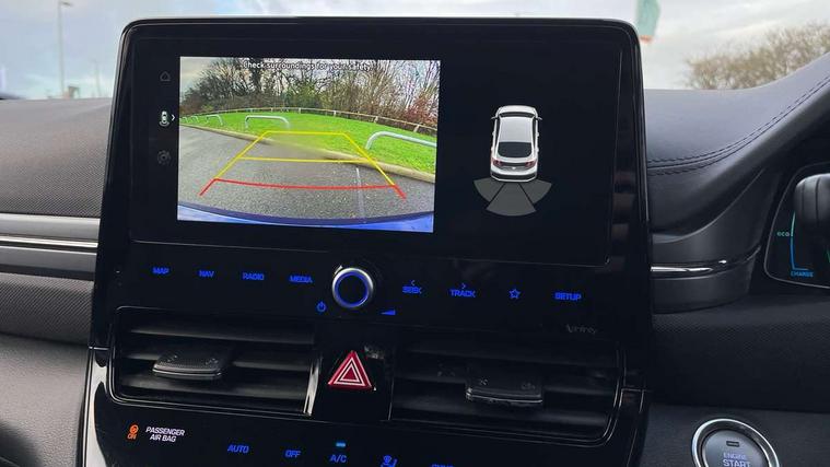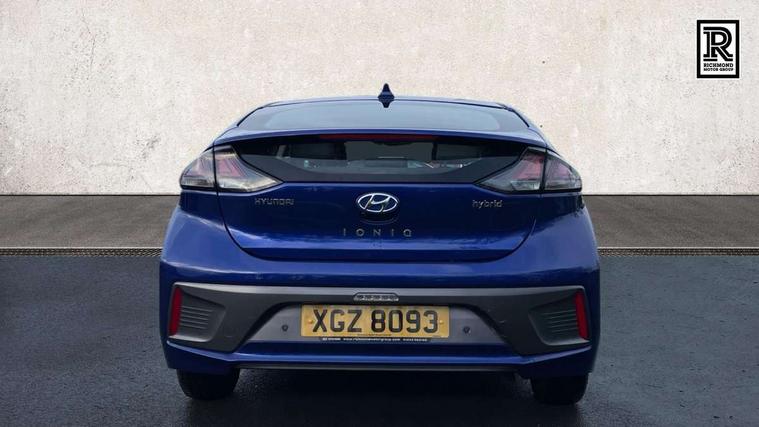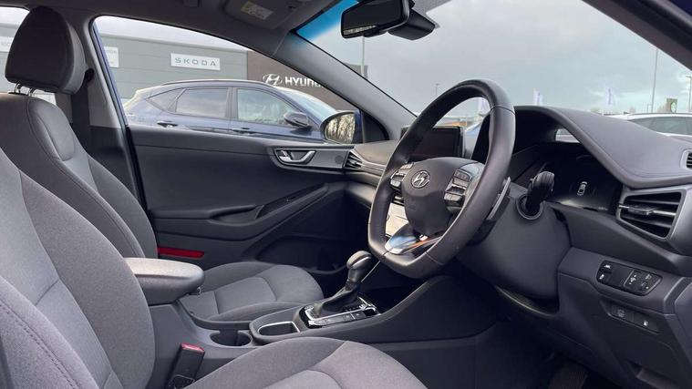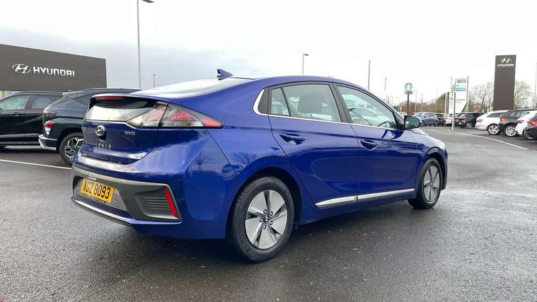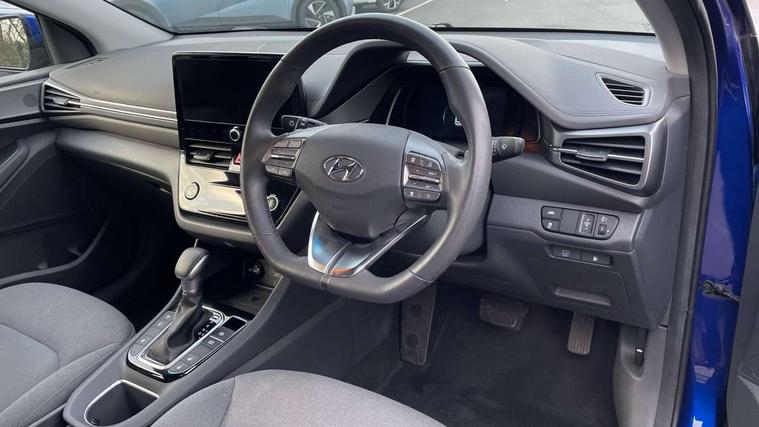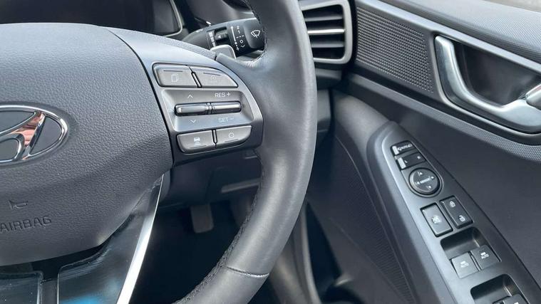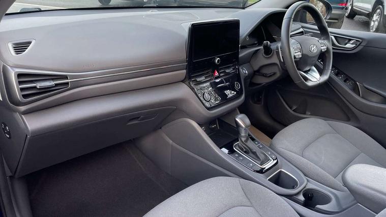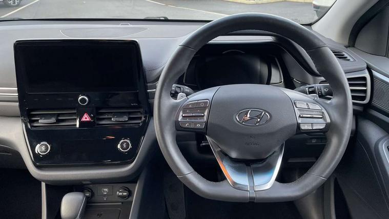 10.25" touchscreen satellite navigation includes traffic messaging channel, mapcare, live services and bluelink, Apple car play/Android Auto, Bluetooth system, Cruise control, Driver attention alert system, E-call, Eco driving assistant system (ECO DAS), Electric power steering with variable drive modes, Gear lever drive mode selector, Lane departure warning system with lane keep assist - LKAS, Parking Brake - Foot Brake, Parking system with rear camera and guidance system, Rear parking sensor, Rear view monitor, Roadside assistance, Supervision cluster with 7" high resolution TFT LCD, Voice recognition, Windscreen washer fluid sensor and warning indicator, Wireless phone charging pad, DAB Digital radio, Infinity sound system includes 1 centre, 2 tweeters, 2 front, 2 rear and 1 ext amp, Radio data system, Steering wheel audio, phone and cruise controls, USB and aux connection in front, Active air flap radiator grille, Auto dimming rear view mirror, Automatic headlights with dusk sensor, Body colour bumpers, Body colour door handles with chrome inserts, Body colour door mirrors, Bodyside mouldings, Chrome door scuff with ioniq logo, Chrome finish window surround, Chrome radiator grille, Door mirror puddle lights, Electric adjustable door mirrors, Electric front windows - anti trap + one touch, Electric heated door mirrors, Heated rear windscreen, High beam assist, LED daytime running lights, LED Headlights, LED indicators in door mirrors, LED rear fog light, Positioning Lights - LED, Power folding door mirrors, Rain sensor, Rear electric windows, Rear LED lights, Rear roof spoiler with integrated LED brake light, Rear side wing doors, Rear wiper, Solar glass with windscreen shade band, Tinted windows, Two tone rear bumper, Variable front intermittent wipers, 12V power outlets, 3 rear seats, 60/40 split folding rear seat, Centre console storage, Centre interior light, Chrome interior door handles, Cloth upholstery, Driver seat height adjust, Driver's electric adjustable lumbar support, Driver/passenger sunvisors with illuminated vanity mirrors, Dual zone climate control, Front centre armrest with storage compartment, Front cupholder, Front head restraints with vertical and horizontal adjustment, Front seat and rear pockets, Heated front seats, Heated steering wheel, Illuminated luggage compartment, Interior mood lighting, Leather wrapped steering wheel, Luggage net, Manual height adjustable front passenger seat, Map and reading lights, Paddle shifter, Rear centre console with air vents, Single front passenger seat, Sunglasses holder, USB - driver arm rest (charging only), Vertical adjustment rear head restraints, 3x3 point rear seatbelts, Airbags - front, front side, curtain and drivers knee airbags, Anti-lock brake system (ABS), Autonomous emergency braking, Electronic stability control, Front passenger airbag deactivation switch, Hill start assist control (HAC), Manual child lock in rear doors, Regenerative braking system, Traction control, Tyre pressure monitoring system with individual tyre pressure display, Deadlocks, Immobiliser, Keyless smart entry with push button start, Remote central locking, 15" Design B alloy wheels, Tyre repair kit,