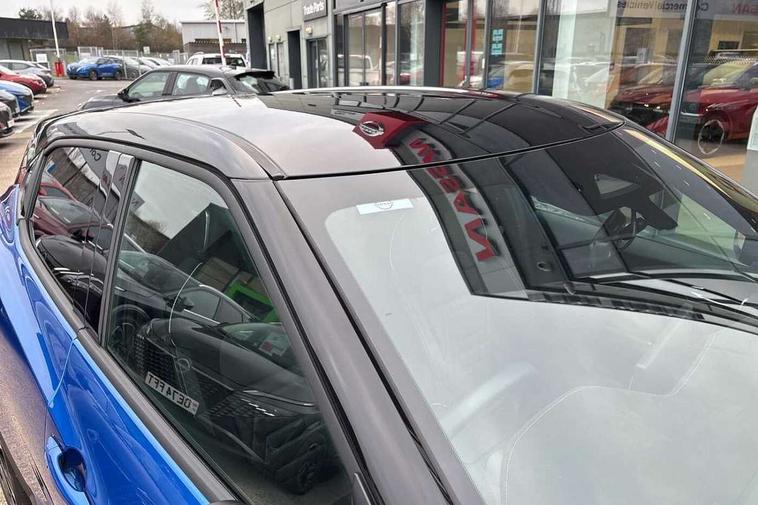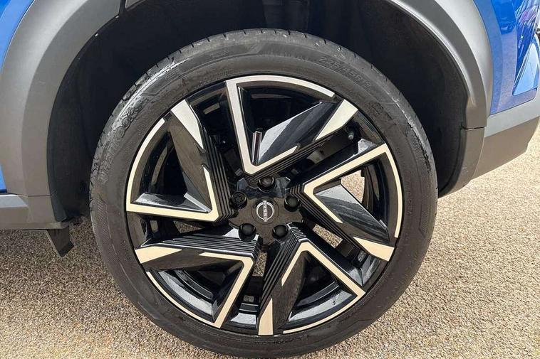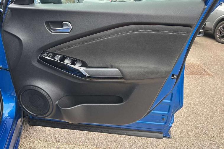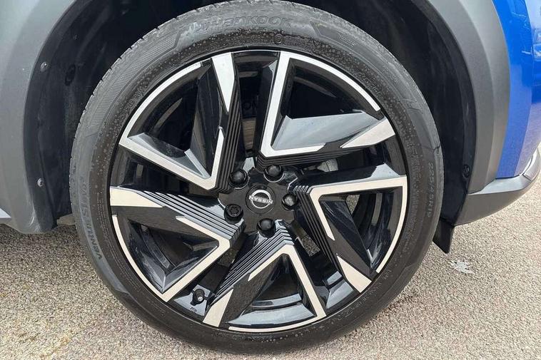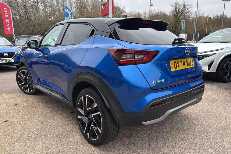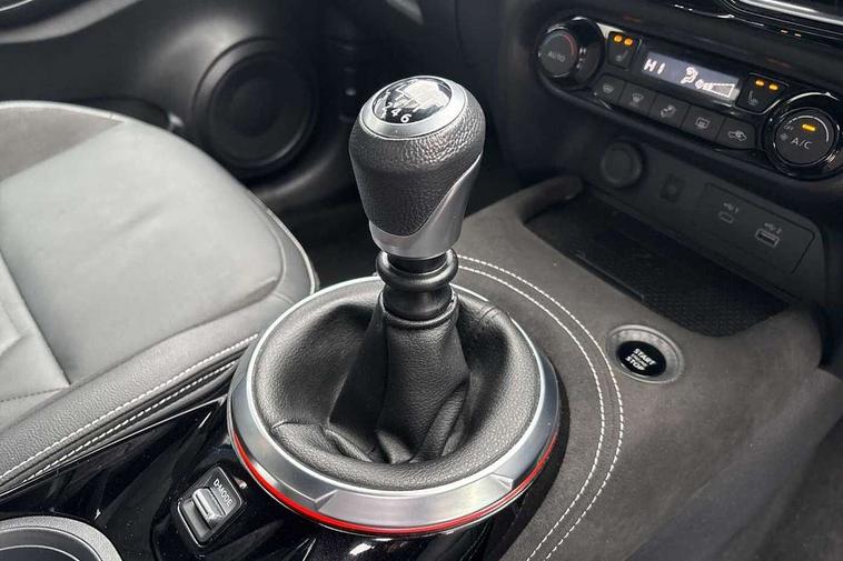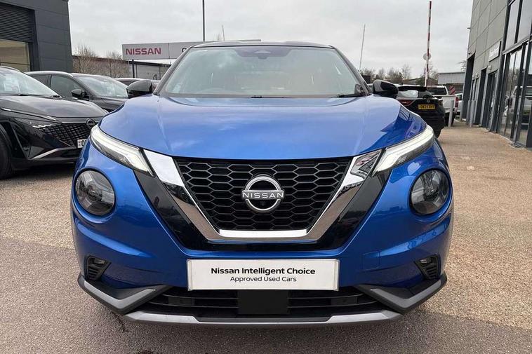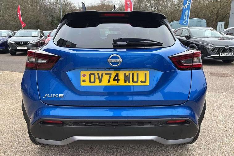 12.3" full colour TFT screen combimeter, Drive modes select (Eco, normal and sport), Emergency and breakdown call, Front parking sensor, Idle start/stop system, Intelligent driver alert system, Intelligent lane intervention, Lane departure warning system, Nissan connect 12.3" touch screen entertainment system, Nissan connect nav with TomTom traffic, Nissan connect services, Outside temperature sensor, Power Steering, Rear parking sensor, Stop/start button, Traffic sign recognition, Trip computer, Voice recognition, WiFi connectivity, Wireless Apple CarPlay and Google Android auto, Wireless Smartphone charger, 10 Bose speakers 6 speakers and 2 headrest speakers for driver/passenger seats, 2 X Rear console USB port, Bluetooth system, USB, Aux-in and 12V socket, Bose personal sound stage control, DAB Digital radio, Auto dimming frameless rear view mirror, Automatic hazard signal with emergency stop signal, Body colour door handles, Electrically adjustable door mirrors with integrated indicators, Follow me home headlights, Front and rear electric window with one touch driver window, Heated and auto folding door mirrors, High beam assist, LED 3rd brake light, LED daytime running lights, LED front fog lights, LED headlamps, LED rear fog lamp, LED rear lamps, One touch passenger window, Rain sensor windscreen wipers, Rear privacy glass, Rear side wing doors, Rear wiper, Roof spoiler, Shark fin roof antenna in solid Black, Three blink turn signal, 3 height adjustable rear headrests, 3 seat bench in 2nd row, 60/40 split folding rear seat, Automatic climate control, Card holder on driver sunvisor, Door ambient lighting, Driver seat back pocket, Driver side rear coat hanger, Driver/passenger sunvisors and vanity mirrors, Front and rear cabin lights, Front armrest, Front door pockets with bottle holders, Front head restraints, Front/rear passenger grab handles, Gear console ambient circle lighting, Height adjustable driver's seat, Internal chrome door handles, Leather gearshift knob, Luggage board, Luggage space lighting, Monoform sporty seats, Multifunction steering wheel, Passenger seat back pocket, Rear door bottle holders, Single front passenger seat, Smooth synthetic leather steering wheel, Synthetic leather kneepad, Telescopic steering wheel adjustment, Two cupholders in front centre console, Two rear isofix child seat anchorage points with top tether, Welcome light and console tray ambient lighting, Advanced safety shield pack - Juke Manual, Heat pack with height adjustable passenger seats - Juke, Interior personalisation pack - Juke, Satin grey exterior personalisation pack - Juke, ABS with EBD and brake assist, Active ride control, Active Trace Control, Driver and passenger airbags, Driver and passenger side airbags, Electric handbrake with auto hold function, Electronic Stability Programme (ESP), Front and rear curtain airbags, Height adjustable seatbelts, Hill start assist, Intelligent emergency braking with pedestrian and cyclist recognition, Rear door child safety locks, Seatbelt reminder for driver/front passenger and rear seats, Three 3 point rear seatbelts, Traction control, Tyre pressure monitoring system, VDC Dynamic Vehicle Control, Alarm, Immobiliser, Intelligent key and start push button with walk away lock and approach unlock functions, Remote central locking, 19" Alloy wheels with deep 3D effect, Tyre puncture repair kit,