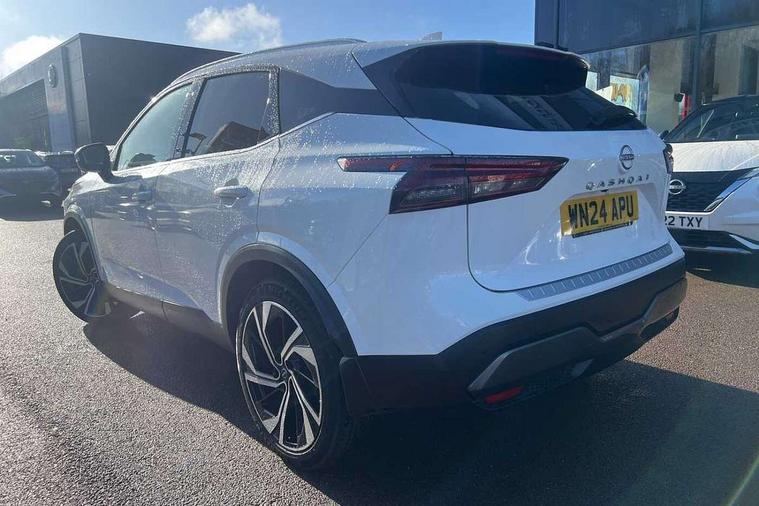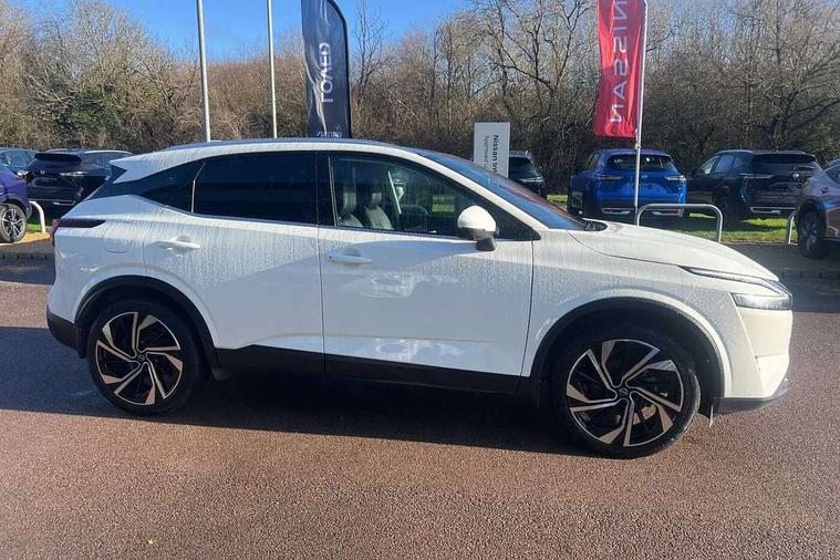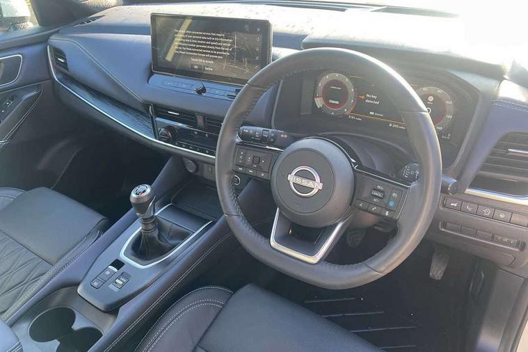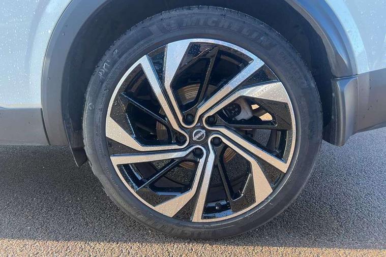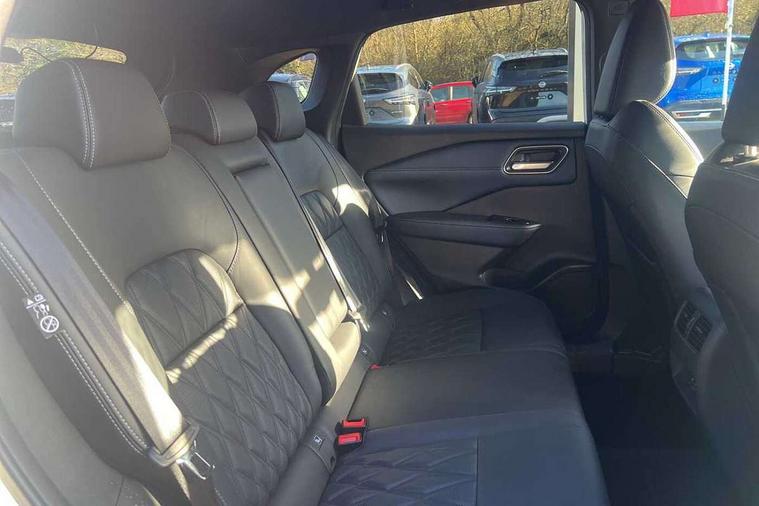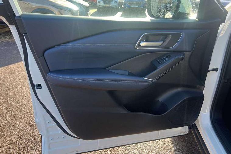 Advanced windscreen head up display, Android auto/Apple CarPlay (Wired), Blind spot warning, Drive assist, Drive modes (sport, normal, eco), Electric speed sensitive power steering, Emergency and breakdown call, Front and rear parking sensors, Full Digital 12.3" TFT Digital Combimeter, Google maps services - search, weather, 3D maps and Google street view, Hands free power tailgate, Idle stop/start system, Intelligent around view monitor, Intelligent Cruise control (ICC), Intelligent driver alert system, Intelligent forward collision warning, Intelligent lane intervention, Lane departure prevention, Lane departure warning system, Lane keep assist, Moving object detection, Nissan connect 12.3 inch touchscreen infotainment system, Nissan connect navigation, Push button starter, Rear cross traffic alert, Rear view camera, Remote control services - door locks, lights, horn and car locator, Telematics - notifications and connectivity services, TomTom live traffic services, Traffic sign recognition with legal speed adjustment, Trip computer, Virtual personal assistant and firmware over the air capability, Wireless apple carplay, Wireless charging pad, 10 Bose speakers - 2 tweeters, 6 high and medium frequency door speakers and 2 in subwoofer, AM/FM audio system with DAB, Bluetooth audio streaming, Bose acoustimass bass box, Digital amplifier, Front USB connections (Type-A and Type-C), Rear USB charging only ports (Type-A and Type-C), Auto dimming rear view mirror, Auto rear wiper when reversing, Automatic hazard signal with emergency stop signal, Body colour mirror caps, Body coloured door handles, Bodyside mouldings, Chrome side window finisher, Door handle with button, Door mirror memory, Electric auto folding door mirrors, Electrically adjustable and heated door mirrors with LED turn indicator, Follow me home headlights, Front and rear LED turning signals, Headlights auto levelling system, Intelligent auto headlights, LED 3rd brake light, LED daytime running lights, LED front fog lights, LED headlights with adaptive driving beam, LED rear lights, One touch front and rear electric windows with remote opening and closing, Privacy glass, Rear bumper with graphite insert, Rear reversing light (bulb lighting), Rear roof spoiler, Rear side wing doors, Rear styling plate, Reverse tilting door mirrors, Shark fin antenna, Splash free rain sensing wipers, Super UV and infrared cut glass, Thermaclear heated windscreen, Three blink turn signal, 12v power socket in dashboard and luggage, 2x Rear coat hooks, 3 bench rear seats in 2nd row, 3 rear headrests, 4 folding assist grip, 6 Luggage hooks - 4 on floor, 2 on side, 60/40 split folding rear seat bench, Ambient lighting around centre console, Ambient lighting in front doors, Centre console storage tray, Chrome interior door handles, Dark black/blueish PVC wrapping, Dark headlining, Driver and front passenger sunvisors with illuminated vanity mirrors, Driver seat back pocket, Dual zone automatic climate control with pollen filter, Electric 4-way lumbar support for drivers seat, Electric adjustable 4 way lumbar support for passenger seat, Electrically adjustable driver seat with massage and memory functions, Front and rear door storage, Front centre console and armrest, Front cupholders x 2, Front door with bottle holders, Glovebox with light, Hard trunk cover, Heated front seats, Heated steering wheel, Height adjustable driver's seat, Height adjustable front headrests, Height adjustable passenger seat, Leather shift knob, Leather steering wheel, Luggage board system, Luggage space lighting, Manually adjustable passenger (slide recline + lifter), Multifunction steering wheel, Passenger seat back pocket, Quilted premium leather upholstery, Rear armrest with 2 cupholders, Rear door bottle holders, Single front passenger seat, Soft PVC kneepad, Steering wheel switches, Tilt/telescopic adjustable steering wheel, Two rear isofix child seat anchorage points with top tether, Welcome light and doors with console tray ambient lighting, Glass roof pack with roof rails - Qashqai, 3x3 point rear seatbelt pretensioners + load limiters, ABS with EBD and brake assist, Active brake limited slip, Auto hold function, Child locks on rear doors, Curtain and front side, far side airbags, Driver and passenger airbags, Driver, passenger and 2nd row rear seat belt reminder, Electronic parking brake, Front seatbelt pretensioners + load limiters, Height adjustable front seatbelts, Hill start assist, Intelligent blind spot intervention, Intelligent front emergency braking with pedestrian, cyclist recognition and junction assist, Intelligent rear automatic braking, Tyre pressure monitoring system, Vehicle dynamic control, Advance intelligent key with driver memory storage (seats, mirrors, audio), Capless fuel filler, Engine immobiliser, Remote central door locking with deadlocking, Thatcham Cat.1 alarm, Interior instrumental panel C finisher, 20" Alloy wheels, Tyre puncture repair kit,