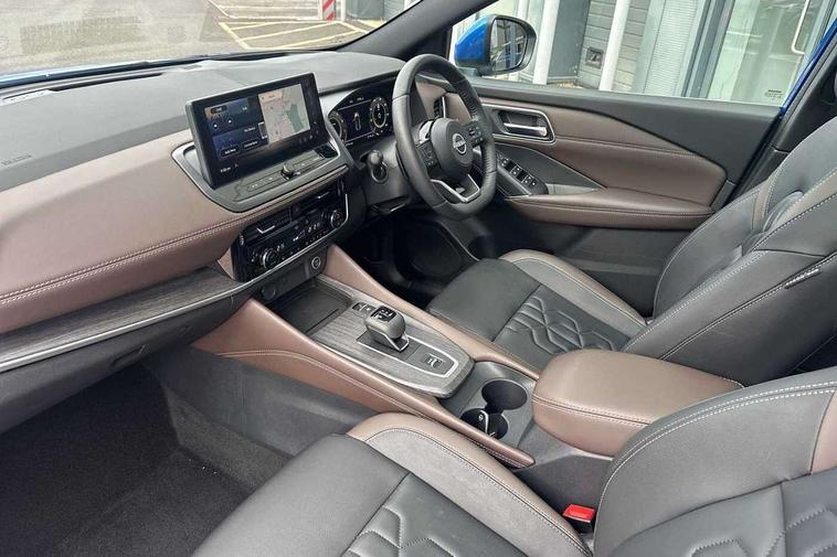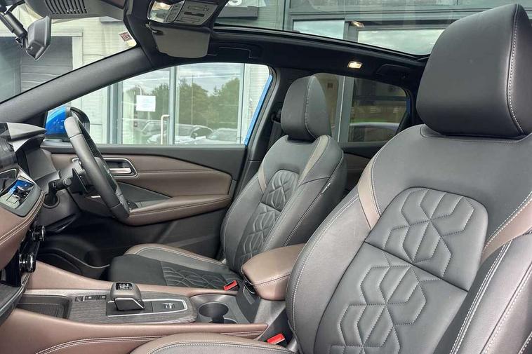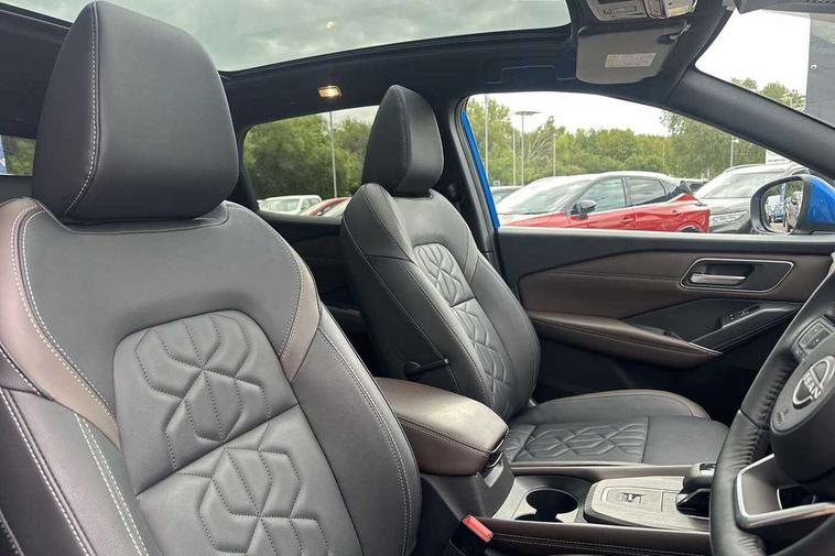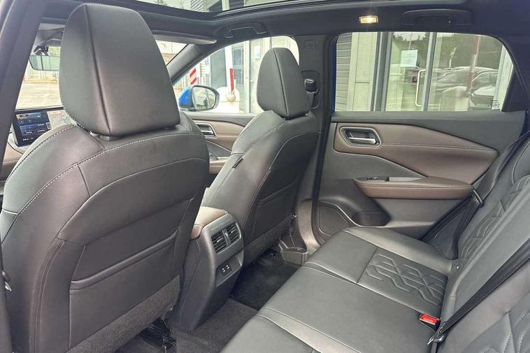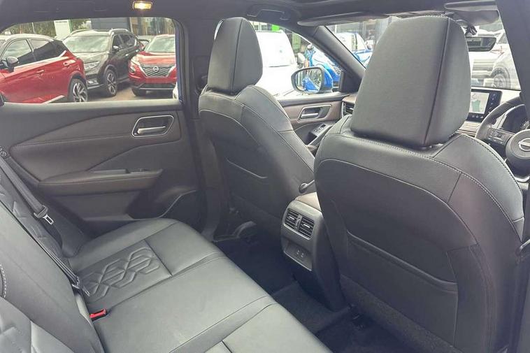 2 front USB-C ports, 2 rear USB-C ports, 360 degree Intelligent around view monitor with moving object detection, Advanced windscreen head up display, Blind spot intervention, Blind spot warning, Drive assist custom mode, Drive modes (sport, normal, eco), Driver drowsiness and attention warning, Electric speed sensitive power steering, Emergency and breakdown call, Emergency lane keep assist, Emergency Stop Signal (ESS), Engine start/stop button, Event data recorder, Front and rear parking sensors, Full Digital 12.3" TFT Digital Combimeter, Google virtual personal assistance, Hands free power tailgate, Idle stop/start system, In-car WIFI hotspot, Intelligent Cruise control (ICC), Intelligent forward collision warning, Intelligent speed assist, Lane departure warning system, Nissan connect 12.3 inch touchscreen infotainment system, Nissan connect navigation with google maps, Nissan connect services 2.0 (Google Automotive System), Outside temperature sensor, Rear cross traffic alert, Reversing detection, Traffic jam pilot, Wireless Apple CarPlay/Android Auto, Wireless charging pad, Limited slip differential, 6 speakers, AM/FM audio system with DAB, Bluetooth audio streaming, Auto dimming frameless rear view mirror, Auto rear wiper when reversing, Body colour mirror caps, Body coloured door handles, Bodyside mouldings, Chrome side window finisher, Electric auto folding door mirrors, Electrically adjustable and heated door mirrors with LED turn indicator, Follow me home headlights, Glossy black bumper inserts and fenders, High beam assist, Intelligent auto headlights, LED 3rd brake light, LED daytime running lights, LED headlights with adaptive driving beam, LED rear lights, LED sequential turn lights, One touch front and rear electric windows with remote opening and closing, One touch passenger window, Partially body coloured bumpers, Rear privacy glass, Rear roof spoiler, Rear side wing doors, Rear styling plate, Reverse tilting door mirrors, Shark fin antenna, Silver roof rails, Splash free rain sensing wipers, Super RED rear LED lights, Super UV and infrared cut glass, Thermaclear heated windscreen, 3 bench rear seats in 2nd row, 3 rear headrests, 60/40 split folding rear seat bench, Chrome interior door handles, Dark headlining, Driver seat back pocket, Dual zone automatic climate control with pollen filter, Fixed Glass roof with electric sunshade, Front door with bottle holders, Heated front seats, Heated steering wheel, Height adjustable front headrests, Luggage board system, Luggage space lighting, Multifunction steering wheel, Passenger seat back pocket, Quilted/PVC upholstery, Rear door bottle holders, RGB ambient light (Full area coverage), Single front passenger seat, Smooth leather steering wheel, Steering wheel gearshift paddles, Tilt/telescopic adjustable steering wheel, Two rear isofix child seat anchorage points with top tether, 3x3 point rear seatbelt pretensioners + load limiters, Autonomous emergency braking, Child locks on rear doors, Curtain and front side, far side airbags, Driver and passenger airbags, Driver, passenger and 2nd row rear seat belt reminder, Electric handbrake with auto hold function, Front seatbelt pretensioners + load limiters, Height adjustable front seatbelts, Hill start assist, intelligent front emergency braking, Rear automatic braking, Tyre pressure monitoring system, Vehicle dynamic control, Engine immobiliser, Intelligent key with walk away lock and approach unlock functions, Remote central door locking with deadlocking, Thatcham alarm, 19" Diamond cut alloy wheels, Tyre puncture repair kit,