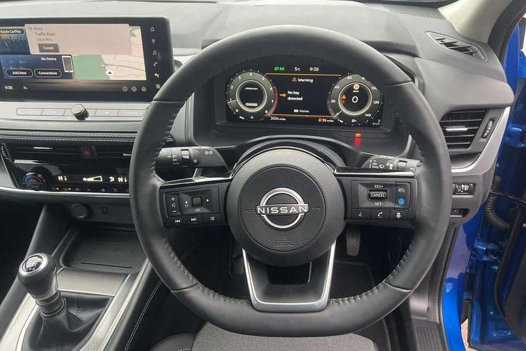 2 front USB-C ports, 2 rear USB-C ports, 360 degree Intelligent around view monitor with moving object detection, Blind spot intervention, Blind spot warning, Drive assist, Drive assist custom mode, Drive modes (sport, normal, eco), Driver drowsiness and attention warning, Electric speed sensitive power steering, Emergency and breakdown call, Emergency lane keep assist, Emergency Stop Signal (ESS), Engine start/stop button, Event data recorder, Front and rear parking sensors, Full Digital 12.3" TFT Digital Combimeter, Google virtual personal assistance, Idle stop/start system, In-car WIFI hotspot, Intelligent Cruise control (ICC), Intelligent forward collision warning, Intelligent speed assist, Lane departure warning system, Nissan connect 12.3 inch touchscreen infotainment system, Nissan connect navigation with google maps, Nissan connect services 2.0 (Google Automotive System), Outside temperature sensor, Rear cross traffic alert, Reversing detection, Wireless Apple CarPlay/Android Auto, Wireless charging pad, Limited slip differential, 6 speakers, AM/FM audio system with DAB, Bluetooth audio streaming, Auto rear wiper when reversing, Body colour mirror caps, Body coloured door handles, Bodyside mouldings, Chrome side window finisher, Electric auto folding door mirrors, Electrically adjustable and heated door mirrors with LED turn indicator, Follow me home headlights, High beam assist, Intelligent auto headlights, LED 3rd brake light, LED daytime running lights, LED Headlights, LED rear lights, One touch front and rear electric windows with remote opening and closing, One touch passenger window, Partially body coloured bumpers, Rear privacy glass, Rear roof spoiler, Rear side wing doors, Rear styling plate, Shark fin antenna, Splash free rain sensing wipers, Super UV and infrared cut glass, Three blink turn signal, 3 bench rear seats in 2nd row, 3 rear headrests, 60/40 split folding rear seat bench, Chrome interior door handles, Cloth upholstery, Dark headlining, Driver seat back pocket, Dual zone automatic climate control with pollen filter, Front door with bottle holders, Height adjustable front headrests, Leather shift knob, Luggage board system, Luggage space lighting, Multifunction steering wheel, Passenger seat back pocket, Rear door bottle holders, RGB ambient light (Full area coverage), Single front passenger seat, Smooth leather steering wheel, Tilt/telescopic adjustable steering wheel, Two rear isofix child seat anchorage points with top tether, 3x3 point rear seatbelt pretensioners + load limiters, Autonomous emergency braking, Child locks on rear doors, Curtain and front side, far side airbags, Driver and passenger airbags, Driver, passenger and 2nd row rear seat belt reminder, Electric handbrake with auto hold function, Front seatbelt pretensioners + load limiters, Height adjustable front seatbelts, Hill start assist, intelligent front emergency braking, Rear automatic braking, Tyre pressure monitoring system, Vehicle dynamic control, Engine immobiliser, Intelligent key with walk away lock and approach unlock functions, Remote central door locking with deadlocking, Thatcham alarm, 18" Diamond cut alloy wheels, Tyre puncture repair kit,