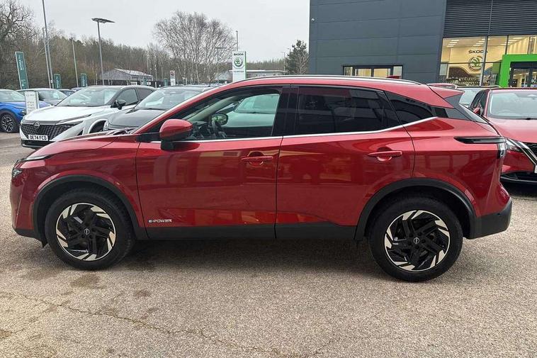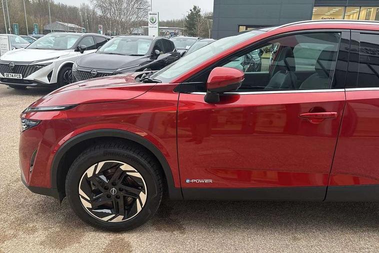 2 front USB-C ports, 2 rear USB-C ports, 360 degree Intelligent around view monitor with moving object detection, Blind spot intervention, Blind spot warning, Drive assist custom mode, Drive modes (sport, normal, eco), Driver drowsiness and attention warning, e-Pedal step, Electric speed sensitive power steering, Emergency and breakdown call, Emergency lane keep assist, Emergency Stop Signal (ESS), Engine start/stop button, EV mode switch, Event data recorder, Front and rear parking sensors, Full Digital 12.3" TFT Digital Combimeter, Google virtual personal assistance, Idle stop/start system, In-car WIFI hotspot, Intelligent Cruise control (ICC), Intelligent forward collision warning, Intelligent speed assist, Lane departure warning system, Nissan connect 12.3 inch touchscreen infotainment system, Nissan connect navigation with google maps, Nissan connect services 2.0 (Google Automotive System), Outside temperature sensor, Rear cross traffic alert, Reversing detection, Traffic jam pilot, Wireless Apple CarPlay/Android Auto, Wireless charging pad, Limited slip differential, 6 speakers, AM/FM audio system with DAB, Bluetooth audio streaming, Auto dimming frameless rear view mirror, Auto rear wiper when reversing, Body colour mirror caps, Body coloured door handles, Bodyside mouldings, Chrome side window finisher, e-POWER badging, Electric auto folding door mirrors, Electrically adjustable and heated door mirrors with LED turn indicator, Follow me home headlights, High beam assist, Intelligent auto headlights, LED 3rd brake light, LED daytime running lights, LED Headlights, LED rear lights, One touch front and rear electric windows with remote opening and closing, One touch passenger window, Partially body coloured bumpers, Rear privacy glass, Rear roof spoiler, Rear side wing doors, Rear styling plate, Shark fin antenna, Splash free rain sensing wipers, Super UV and infrared cut glass, Three blink turn signal, 3 bench rear seats in 2nd row, 3 rear headrests, 60/40 split folding rear seat bench, Chrome interior door handles, Cloth upholstery, Dark headlining, Driver seat back pocket, Dual zone automatic climate control with pollen filter, e-POWER shifter, Front door with bottle holders, Height adjustable front headrests, Luggage board system, Luggage space lighting, Multifunction steering wheel, Passenger seat back pocket, Rear door bottle holders, RGB ambient light (Full area coverage), Single front passenger seat, Smooth leather steering wheel, Tilt/telescopic adjustable steering wheel, Two rear isofix child seat anchorage points with top tether, 3x3 point rear seatbelt pretensioners + load limiters, Autonomous emergency braking, Child locks on rear doors, Curtain and front side, far side airbags, Driver and passenger airbags, Driver, passenger and 2nd row rear seat belt reminder, Electric handbrake with auto hold function, Front seatbelt pretensioners + load limiters, Height adjustable front seatbelts, Hill start assist, intelligent front emergency braking, Rear automatic braking, Tyre pressure monitoring system, Vehicle dynamic control, Engine immobiliser, Intelligent key with walk away lock and approach unlock functions, Remote central door locking with deadlocking, Thatcham alarm, 18" Diamond cut alloy wheels, Tyre puncture repair kit,