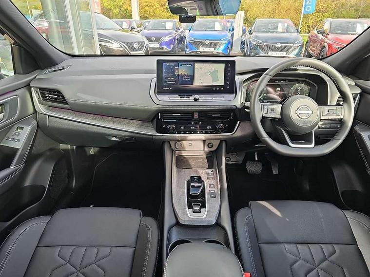 2 front USB-C ports, 2 rear USB-C ports, 360 degree Intelligent around view monitor with moving object detection, Advanced windscreen head up display, Blind spot warning, Drive assist custom mode, Drive modes (sport, normal, eco), Driver drowsiness and attention warning, e-Pedal step, Electric speed sensitive power steering, Emergency and breakdown call, Emergency lane keep assist, Emergency Stop Signal (ESS), Engine start/stop button, EV mode switch, Event data recorder, Front and rear parking sensors, Full Digital 12.3" TFT Digital Combimeter, Google virtual personal assistance, Hands free power tailgate, Idle stop/start system, In-car WIFI hotspot, Intelligent Cruise control (ICC), Intelligent driver alert system, Intelligent forward collision warning, Intelligent lane intervention, Intelligent speed assist, Lane departure warning system, Nissan connect 12.3 inch touchscreen infotainment system, Nissan connect navigation with google maps, Nissan connect services 2.0 (Google Automotive System), Outside temperature sensor, Propilot assist with Navi-Link, ProPilot park, Rear cross traffic alert, Remote control services - door locks, lights, horn and car locator, Reversing detection, Traffic jam pilot, Traffic sign recognition with legal speed adjustment, Trip computer, Wireless Apple CarPlay/Android Auto, Wireless charging pad, Limited slip differential, 6 speakers, AM/FM audio system with DAB, Bluetooth audio streaming, Auto dimming frameless rear view mirror, Auto rear wiper when reversing, Body colour mirror caps, Body coloured door handles, Bodyside mouldings, Chrome side window finisher, e-POWER badging, Electric auto folding door mirrors, Electrically adjustable and heated door mirrors with LED turn indicator, Follow me home headlights, High beam assist, Intelligent auto headlights, LED 3rd brake light, LED daytime running lights, LED headlights with adaptive driving beam, LED rear lights, LED sequential turn lights, One touch front and rear electric windows with remote opening and closing, One touch passenger window, Partially body coloured bumpers, Rain sensing wipers, Rear privacy glass, Rear roof spoiler, Rear side wing doors, Rear styling plate, Reverse tilting door mirrors, Shark fin antenna, Silver roof rails, Splash free rain sensing wipers, Super RED rear LED lights, Super UV and infrared cut glass, Thermaclear heated windscreen, 12v power socket in dashboard and luggage, 3 bench rear seats in 2nd row, 3 rear headrests, 60/40 split folding rear seat bench, Chrome interior door handles, Dark headlining, Driver and passenger sunvisors with illuminated vanity mirrors, Driver seat back pocket, Dual zone automatic climate control with pollen filter, e-POWER shifter, Electrically adjustable driver seat, Electrically adjustable lumbar support for driver, Fixed Glass roof with electric sunshade, Front centre console and armrest, Front cupholders, Front door with bottle holders, Heated front seats, Heated steering wheel, Height adjustable front headrests, Height adjustable passenger seat, Luggage board system, Luggage space lighting, Manual adjustable lumbar support for passenger, Multifunction steering wheel, Passenger seat back pocket, Quilted/PVC upholstery, Rear door bottle holders, Rear seat armrest with 2 cupholders, RGB ambient light (Full area coverage), Single front passenger seat, Smooth leather steering wheel, Tilt/telescopic adjustable steering wheel, Two rear isofix child seat anchorage points with top tether, 3x3 point rear seatbelt pretensioners + load limiters, ABS with EBD and brake assist, Autonomous emergency braking, Child locks on rear doors, Curtain and front side, far side airbags, Driver and passenger airbags, Driver, passenger and 2nd row rear seat belt reminder, Electric handbrake with auto hold function, Front seatbelt pretensioners + load limiters, Height adjustable front seatbelts, Hill start assist, Intelligent blind spot intervention, intelligent front emergency braking, Intelligent rear automatic braking, Tyre pressure monitoring system, Vehicle dynamic control, Engine immobiliser, Intelligent key with walk away lock and approach unlock functions, Remote central door locking with deadlocking, Thatcham alarm, 19" Diamond cut alloy wheels, Tyre puncture repair kit,