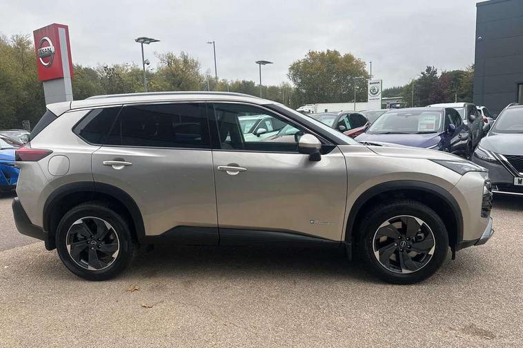 Android auto wireless, Blind spot warning, Drive assist custom mode, Drive modes (sport, normal, eco), Driver drowsiness and attention warning, e-Pedal step, Electric speed sensitive power steering, Emergency and breakdown call, Event data recorder, Front and rear parking sensors, Full Digital 12.3" TFT Digital Combimeter, Google maps services - search, weather, 3D maps and Google street view, Hands free power tailgate, Idle stop/start system, Intelligent around view monitor, Intelligent Cruise control (ICC), Intelligent driver alert system, Intelligent forward collision warning, Intelligent lane departure warning, Intelligent lane intervention, Intelligent lane keep assist, Maximum speed limiter, Moving object detection, Nissan connect 12.3 inch touchscreen infotainment system, Nissan connect nav with TomTom traffic, Propilot assist with Navi-Link, Push button starter, Rear cross traffic alert, Rear view camera, Remote control services - door locks, lights, horn and car locator, Reversing detection, Telematics - notifications and connectivity services, Traffic jam pilot, Traffic sign recognition with legal speed adjustment, Trip computer, Virtual personal assistant and firmware over the air capability, Wireless apple carplay, Wireless charging pad, 6 speakers, AM/FM audio system with DAB, Bluetooth audio streaming, Front USB connections (Type-A and Type-C), Rear USB charging only ports 2 Type-C, Auto dimming rear view mirror, Auto rear wiper when reversing, Body colour mirror caps, Body coloured door handles, Bodyside mouldings, Chrome side window finisher, e-POWER badging, Electric auto folding door mirrors, Electrically adjustable and heated door mirrors, Follow me home headlights, High beam assist, Intelligent auto headlights, LED 3rd brake light, LED daytime running lights, LED Headlights, LED rear lights, One touch front and rear electric windows with remote opening and closing, Partially body coloured bumpers, Rain sensing wipers, Rear reversing light (bulb lighting), Rear roof spoiler, Rear side wing doors, Rear styling plate, Shark fin antenna, Splash free wipers, Three blink turn signal, 12v power socket in dashboard and luggage, 3 bench rear seats in 2nd row, 3 rear headrests, 60/40 split folding rear seat bench, Butteryfly console, Chrome interior door handles, Cloth monoform upholstery, Driver and front passenger sunvisors with illuminated vanity mirrors, Driver seat back pocket, Dual zone automatic climate control with pollen filter, Front centre console and armrest, Front cupholders, Front door with bottle holders, Height adjustable driver's seat, Height adjustable front headrests, Height adjustable passenger seat, Leather shift knob, Leather steering wheel, Luggage board system, Luggage space lighting, Multifunction steering wheel, Passenger seat back pocket, Rear armrest with 2 cupholders, Rear door bottle holders, Single front passenger seat, Tilt/telescopic adjustable steering wheel, Two rear isofix child seat anchorage points with top tether, 3x3 point rear seatbelt pretensioners + load limiters, ABS with EBD and brake assist, Active brake limited slip, Auto hold function, Child locks on rear doors, Curtain and front side, far side airbags, Driver and passenger airbags, Driver, passenger and 2nd row rear seat belt reminder, Electronic parking brake, Front seatbelt pretensioners + load limiters, Height adjustable front seatbelts, Hill start assist, Intelligent blind spot intervention, Intelligent front emergency braking with pedestrian, cyclist recognition and junction assist, Intelligent rear automatic braking, Tyre pressure monitoring system, Vehicle dynamic control, Approach unlock and walk away lock, Engine immobiliser, Intelligent Key, Remote central door locking with deadlocking, Thatcham Cat.1 alarm, 18" Diamond cut alloy wheels, Tyre puncture repair kit,