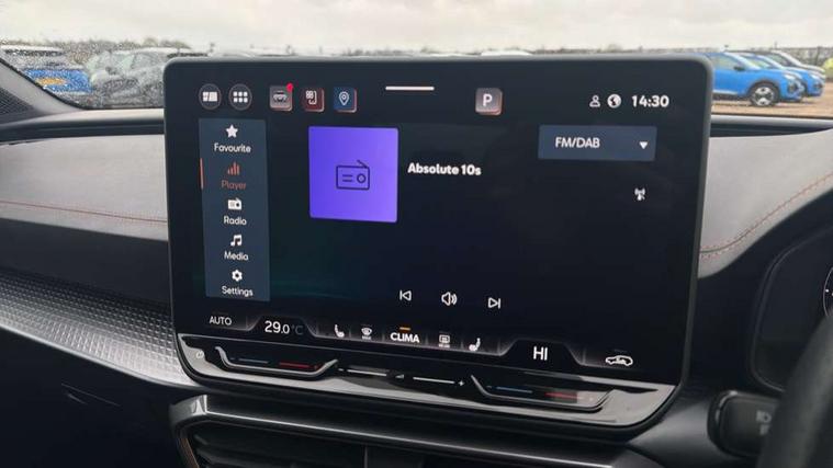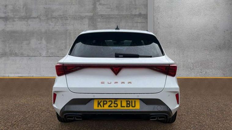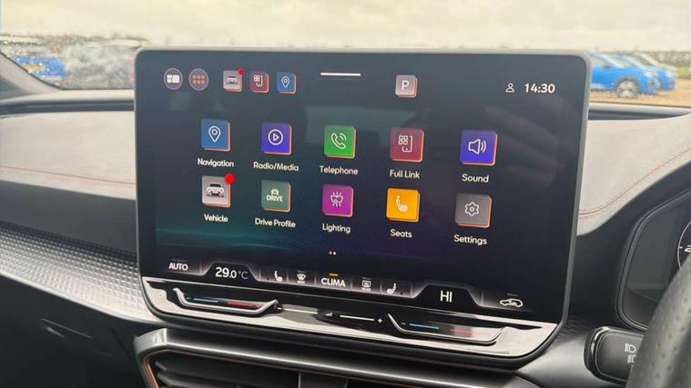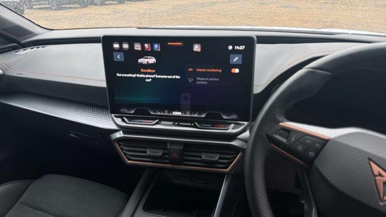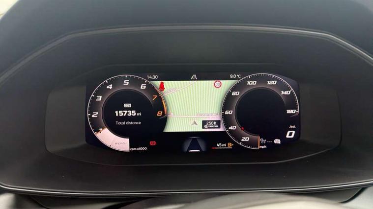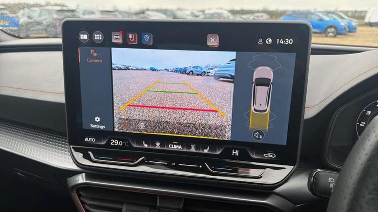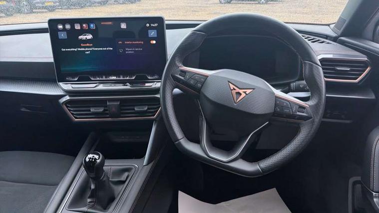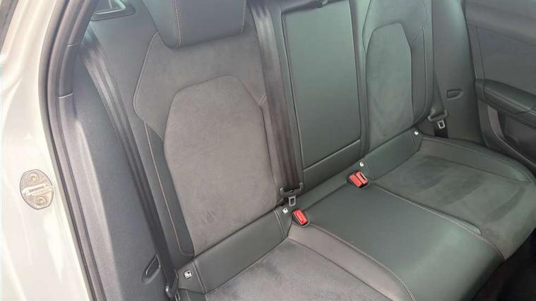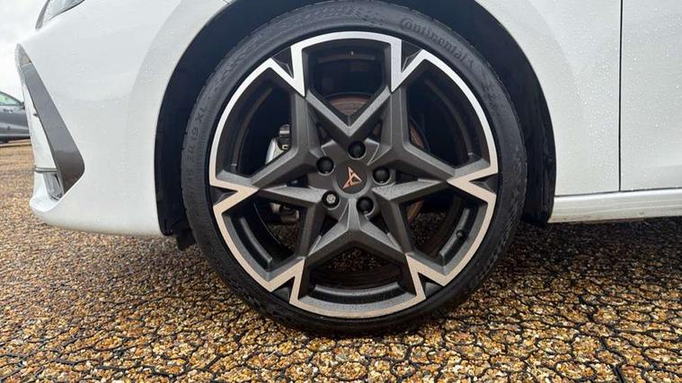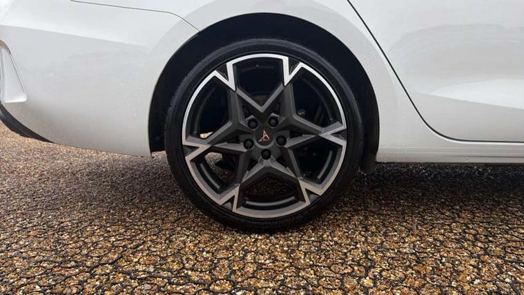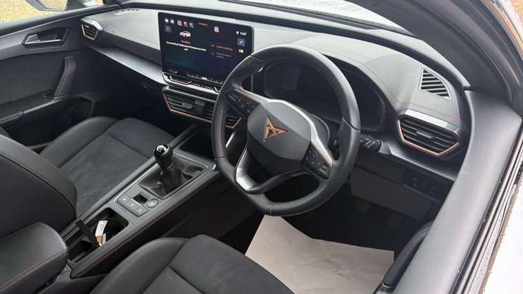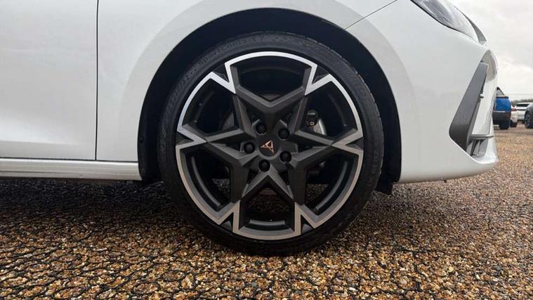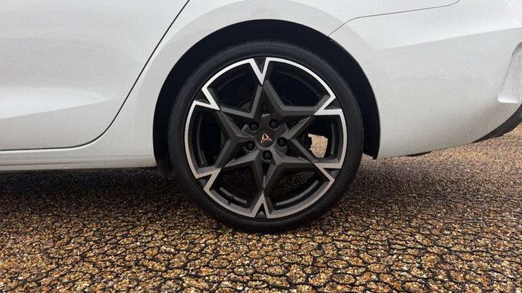 Adaptive cruise control with follow-to-stop and speed limiter, CUPRA drive profile selection with (Comfort/Sport/Individual), throttle response and gearshift mode, Digital cockpit, Dynamic road sign display, E-call, Front and rear parking sensors, Front assist with forward collision warning braking reaction to vehicles, pedestrians and cyclists, Full link smartphone integration with Mirror Link, wireless Apple CarPlay and wired Google Android Auto, Lane assist, Lockable tailgate, Rear view camera, RPM, trip computer, outside temp gauge, instrument light brightness, low fuel warning light, lights on reminder, gearshift indicator, Service interval indicator, Start/stop system with regenerative braking, Virtual pedal with electric tailgate, Wireless phone charger, Auxiliary input socket, Auto dimming rear view mirror, Body colour door handles, Body coloured bumpers, Cupra sports bumpers, Dark tinted rear windows, Electric front/rear windows, Electrically adjustable, heated and folding door mirrors, Gloss black roof rails, High beam assist, LED front fog lamps with cornering function, LED headlights with dynamic turn signals, tail lights, rear fog lights with rear coast to coast lighting, LED rear fog lamp, Rain sensing wipers, Rear side wing doors, Rear wash/wipe, Separate daytime running light with automatic headlight control and coming home feature, Third brake light, Welcome light with logo projector in door mirrors, 12v power supply in centre console, 3 seat bench in 2nd row, 5 headrests, 60/40 split rear bench seat with armrest, Ambient lighting (glovebox, footwell, ambient lighting multicoloured), Black headlining, CUPRA Leather flat bottomed, heated, perforated steering wheel, Dinamica cloth upholstery, Electrically adjustable driver seat and lumbar support with memory function + manually adjustable passenger seat, Four x USB Type C ports (2 in front and 2 in rear), Front and rear reading lights X 4, Front centre armrest, Heated front seats, Height/reach adjust steering wheel, Illuminated interior front door sills, Interior wraparound lighting, ISOFIX points in outer rear seats with top tether anchorage points, Single front passenger seat, Sliding boot cover, Storage pockets on rear of front seats, Sunvisors with illuminated mirror, Three zone climate control, Dynamic and comfort pack - Leon Cupra, Media system plus with 12.9" display + navigation pack - Leon Cupra, 3 point seatbelts on all rear seats, ABS, Brake control system - ESC and brake booster, Child proof door locks, Cupra black brake calipers, Driver and front passenger airbags with front passenger airbag de-activation, front side and curtain airbags, Electronic parking brake, Hill hold control, Rear disc brakes, Seat belt reminder for front and rear seats, Tiredness recognition system, Tyre pressure monitoring system, Anti theft alarm system with interior monitoring in cab, backup horn and towing protection, KESSY Advanced - Keyless start, keyless entry, Locking wheel bolts, Chrome and copper interior detailing, 19" Polar machined sport black and silver alloy wheel with 91Y tyres, Tool kit,