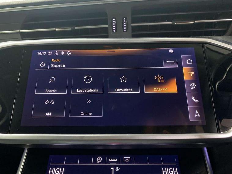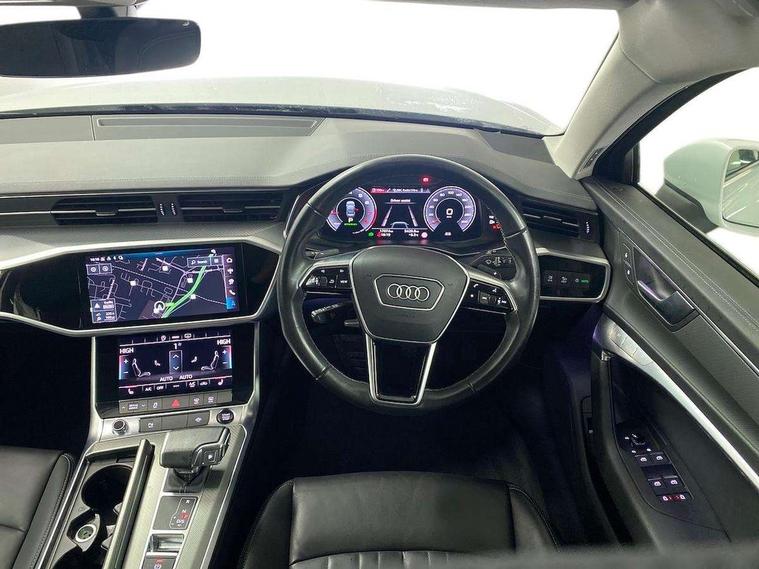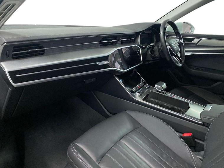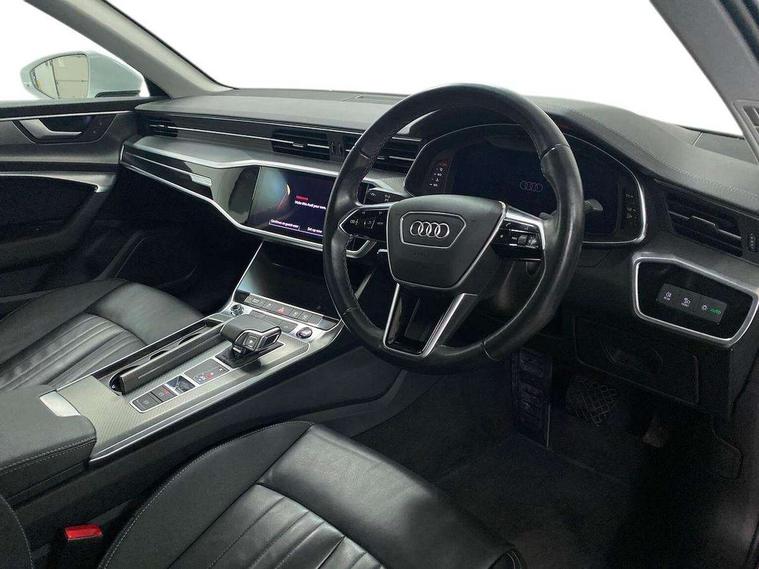 Audi connect safety and service (e-call), Audi connect with Amazon Alexa Integration, Audi drive select, Audi parking system plus - acoustic and visual park assist system for front and rear, Audi virtual cockpit, Automatic start/stop system with coasting functionality, Bluetooth interface, Camera based traffic sign recognition, Cruise control + speed limiter, Electric boot lid release, Lane departure warning system, MMI navigation plus with 10.1" and 8.6" touch screens, Progressive steering, Rear view camera, Service interval indicator, Smartphone interface includes wireless Apple carplay/Android Auto, Voice control system, Standard suspension, Audi front music interface, Audi sound system, Auxiliary input socket, DAB Digital radio, USB connection, Body coloured door mirrors, Daytime running lights, Electric front/rear windows, Electrically adjustable heated and folding + automatically dimming exterior mirrors with memory function, Frameless auto dimming interior rear view mirror, Front intermittent wipers, Heat insulating darkened glass in side and rear windows, Heat insulating glass in windshield, LED rear lights with dynamic indicators, LED third brake light, Matrix LED headlights, Matt black rear diffuser with diffuser strip and tailpipes in chrome, Matt black side air intake grille with inlay in matt aluminium, Privacy glass, Radiator grille in anthracite black matt, single frame in chrome and horizontal struts in matt aluminium silver, Rain and light sensors, Rear boot, Rear side wing doors, 2 zone deluxe electronic climate control, 3 spoke high multi-function leather steering wheel with shift paddles, 40/20/40 split folding 3 rear seat bench in 3 parts with rear centre armrest, Audi phone box light, Door sill trims with aluminium inlay, Electrically adjustable front seats including seat height, fore/aft position, backrest angle and 4-way lumbar with memory for driver's seat, Front and rear floor mats, Front centre armrest, Front head restraints, Heated front seats, Height/reach adjust steering wheel, Illuminated sun visors with vanity mirrors, Leather gear knob, Lunar silver cloth headlining, Rear headrests, Single front passenger seat, Tool kit and car jack, Twin leather upholstery, LED Interior Ambient Lighting Pack - A6, Non smoking pack - A6, 3 point seatbelts on all seats, Airbags - Front side, front and rear including head, Audi pre-sense front, EBD - Electronic brakeforce distribution, Electromechanical parking brake, Electronic Stability Control (ESC) including ABS, ASR and EDL, Extended pedestrian protection measures, ISOFIX child seat mounting for front passenger seat and ISOFIX child seat mounting with Top Tether for outer rear seats, Manual child proof rear door locks, Seatbelt monitoring, Tyre pressure warning light, Warning triangle and first aid kit, Anti theft alarm with tow away protection, Anti-theft wheel bolts and wheel loosening detection, Immobiliser, Keyless Go, Remote central locking, Aluminium fragment inlay, 18" 5 arm design cast aluminium alloy wheels,