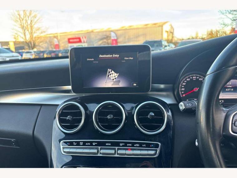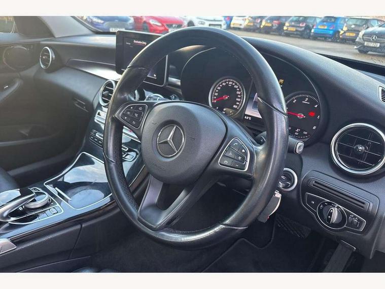 Attention assist, Collision prevention assist, Cruise control with speedtronic variable speed limiter, DYNAMIC SELECT with a choice of driving modes (ECO, Comfort, Sport, Sport+ and Individual), Multi function trip computer, Outside temperature gauge, Remote boot release, Reversing camera, Service indicator (ASSYST PLUS), Speed sensitive steering, Agility control suspension with selective damping system, Diesel particulate filter, DAB Digital radio, Frontbass loudspeakers, Mercedes Audio 20 radio/single CD + telephone keypad, USB connection, Adaptive brake lights, Body coloured bumpers, Electric windows one touch open/close, Electrically adjustable and heated door mirrors, Green tinted glass, Heated windscreen washers, LED daytime running lights, LED tail lights, Radiator grille with integral star and 2 louvres in matt iridium silver, Rain sensor windscreen wipers, Side windows surround in matt black, 2 cupholders in front centre console, 2 way rear head restraints, 3 spoke leather steering wheel, 4 way adjustable front head restraints, Artico man-made leather upholstery, Auto Mercedes-Benz child seat recognition sensor, Dual zone automatic climate control, Electric front seat height adjustment, Front centre armrest with storage compartment, Gearshift paddles, Height/reach adjustable steering column, Illuminated glovebox, Multifunction steering wheel, Rear top tether child seat ISOFIX attachment, Storage and 12V socket in front centre console, Seat comfort pack - C Class, Stowage space pack - C Class, 3 rear 3 point seatbelts, ABS with Brake Assist, Active bonnet, Adaptive brake system, Child proof door locks, Drivers knee airbag, Dual stage driver/passenger airbags, Electronic parking brake, ESP with ASR, Front passenger seat occupancy sensor, Front side airbags, Hill start assist, Pre-Safe anticipatory safety system, Tyre pressure monitoring system, Warning triangle and first aid kit, Window airbags, Alarm system/interior protection/immobiliser, Chrome surround in electric key, Remote central locking, Black high gloss trim, 16" multi spoke alloy wheel painted in vanadium silver, Tyre inflation kit,