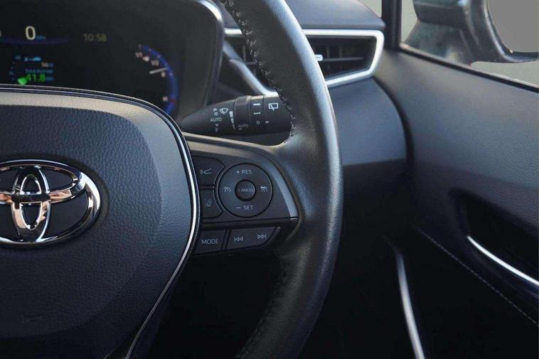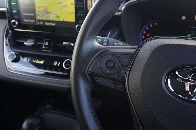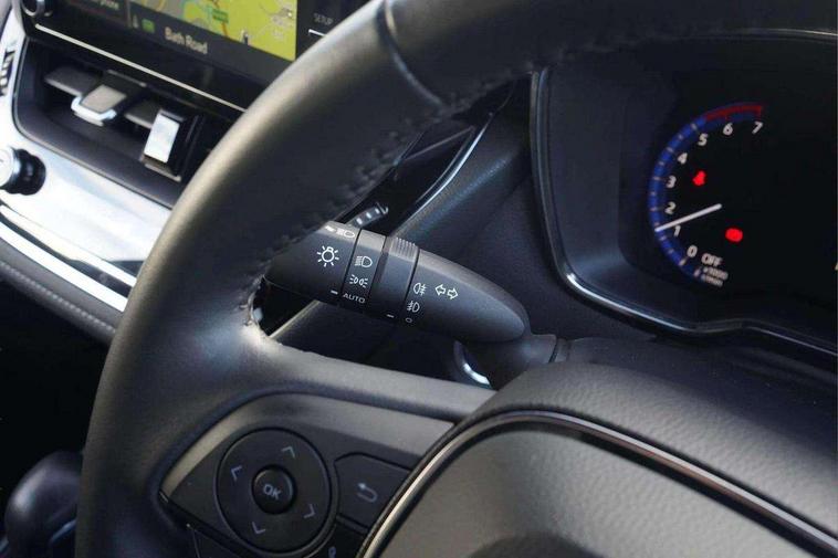 7" Multi information display screen, Bluetooth telephone connectivity, Connected car functionality upgrade, tracker, remote status and e-care, Door trim and centre console material, Dynamic radar cruise control (with RSA) including switch on steering wheel, E-call, Electrically assisted power steering, EV drive indicator, Intelligent park assist, Lane Departure Alert (LDA) switch on steering wheel, Memory on adjustable speed limiter, Push button start, Reversing camera, Smartphone integration with Apple CarPlay and Android auto, Gasoline particulate filter, Vehicle Stability Control (VSC), 6 speakers, 8" Touchscreen with MM19 Multimedia system and voice recognition, AM/FM radio, DAB Digital radio, Toyota touch 2 with go navigation system, USB and Aux in connectors + 12V front outlet, Anti-jam protection on power windows, Auto dimming inside rear view mirror, Auto up and down function on all power windows, Automatic folding mirrors, Automatic headlights with high beam assist, Black metallic surround on lower front grille, Black toyota logo in front, Black window frames, Body colour rear spoiler, Body coloured bumpers, Body coloured door mirrors, Body coloured outside door handles, Follow me home headlights, LED daytime running lights, LED front fog lights, LED Headlights, LED High mounted stop light, LED rear combi lights with LED lightguide, Power adjustable heated door mirrors, Power front windows, Power rear windows, Privacy glass, Rain sensing wipers, Rear side wing doors, Rear window defogger, Rear window wiper, Rear wing door, Reverse tilting door mirrors, Shark fin antenna, Time adjustment on intermittent wiper, Turning signal integrated indicators in door mirrors, Unique lower skirt, Unique side rocker with black insert, UV-filter on driver and passenger windows, 3 rear headrests, 3 seat bench in 2nd row, 3 spoke leather steering wheel + gear knob, 60/40 split folding rear seat, Adjustable speed limiter switch on steering wheel, Audio, multimedia and telephone switches on steering wheel, Blue ambient interior illumination to centre tray, front cup holders and front door trim, Boot light, Centre room light, Clean air filter, Driver and front passenger personal light, Driver and passenger assist grip, Driver and passenger sun visor with mirror and light, Dual zone automatic air conditioning with ECO mode switch, Fabric/synthetic leather upholstery, Front and rear cup and bottle holders, Front door pockets, Front head restraints, Front passenger seat, Heated driver and front passenger seats, Illuminated entry system in room lamp, ISOFIX seat fixing (2 fixings on rear outer seats), Leather gear shift with satin chrome on gear shift console, Leather style armrests, Manual height adjustable for driver and front passenger seat, Parcel shelf, Passenger seat back pocket, Pollen filter, Power adjustable lumbar support on driver seat, Power window switches with satin chrome inserts, Rear armrest with 2 cupholders, Rear passenger coat hooks (2), Satin chrome inside door handles, Shopping bag hooks in luggage compartment, Sliding armrest on centre console box, Slow opening glovebox with lights, Tilt/telescopic steering column, Voice recognition switch on steering wheel, Whiplash Injury Lessening (WIL) feature (active headrest) for seats, Parking pack - Corolla, Toyota safety sense 2 pack - Corolla, 3x3 point rear seatbelts, Adjustable driver and front passenger seat belt extender to top anchor point, Anti lock braking system + Electronic brake force distribution, Brake assist function, Child locks on rear doors, Downhill Assist Control (DAC), Electronic parking brake, Emergency brake light signal (EBS), Front passenger airbag on/off switch, Front seatbelt reminder, HAC - Hill start assist control, Rear seat belt reminder, Seatbelt pretensioners and force limiters, Supplemental restraint system (SRS) 7 airbags - dual driver, dual side curtain, side impact and driver knee airbags, Traction control, Tyre pressure warning system, Acoustic vehicle alert system (AVAS), Alarm with motion sensor and immobilizer, Remote central locking + deadlocks, Smart entry, Satin chrome dash trim, Soft touch texture on upper dashboard, Unique wheel finish with red wheel cap,