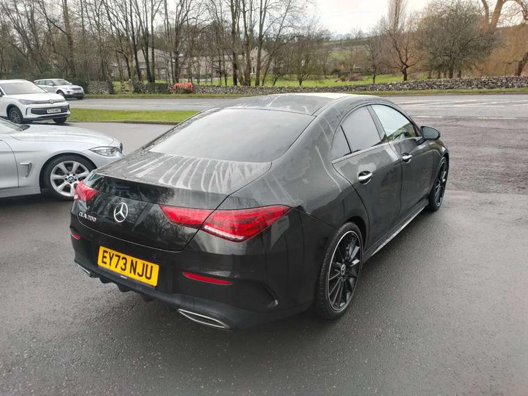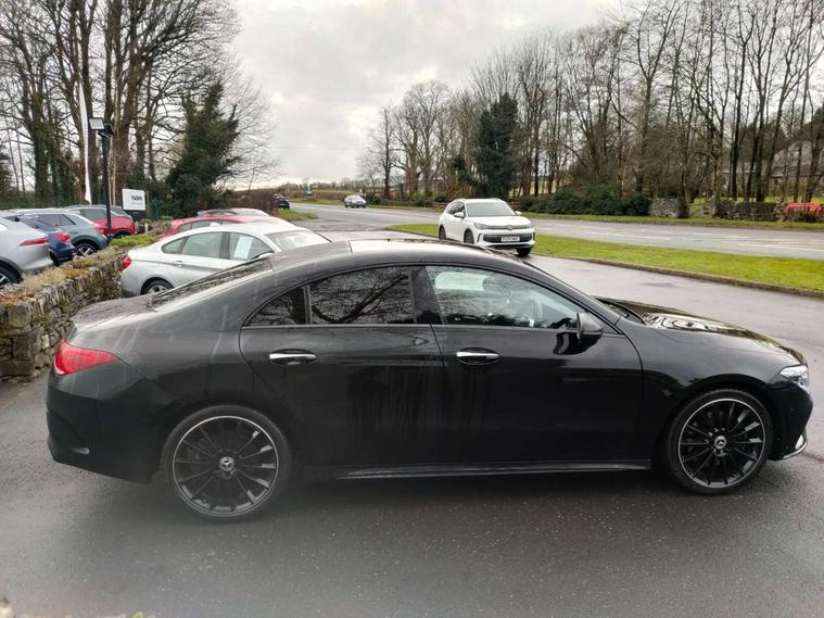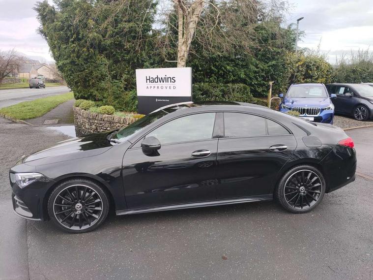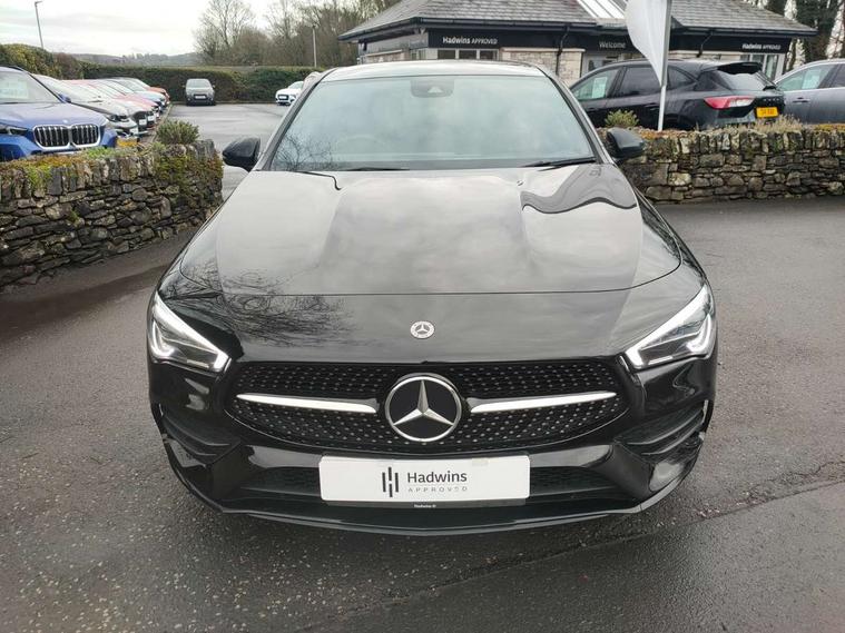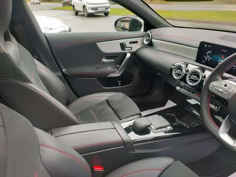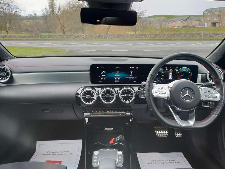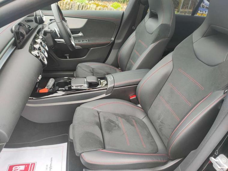 10.25 inch Instrument display with digital cockpit, 10.25 inch touchscreen central media display, Active lane keeping assist, Attention assist - Monitors steering behaviour and long journey fatigue, Blind spot assist, Bluetooth connection, Car wash mode, Cruise control with limiter, Direct steer system with speed sensitive power steering, DYNAMIC SELECT with a choice of driving modes (ECO, Comfort, Sport and Individual), ECO start/stop function, Fluid level warning indicator for fuel, oil, coolant and washer fluid, Hard-disk navigation, Hey Mercedes Voice activation, Lamp failure indicator, Mercedes me connect including emergency call system, accident recovery, breakdown and maintenance management, Mercedes me remote services, Outside temperature gauge, Owners manual and service booklet in English, Pre-installation of private car share, Preinstallation for Mercedes Benz link, Radio aerial integrated into front and rear windshields, Service indicator (ASSYST), Smartphone integration with Apple CarPlay and Android auto, Speed limit assist, Traffic sign assist, Trip computer in multifunction display with current consumption indicator, Lowered comfort suspension, Rear axle multi-link, DAB digital radio tuner, MBUX multimedia system, Mid-range sound system, USB (type C) ports (2) in stowage compartment and 1 in front of centre console, Adaptive brake lights, AMG body styling with AMG front apron and rear apron and visible exhaust tailpipe in chrome trim elements, AMG bodystyling side skirts, Body colour bumpers, Body colour door handles, Chrome beltline strips, Diamond radiator grille pins in chrome, Electric panoramic sunroof with automatic tilt and convenience closing fuinctions, rain sensor auto closing and electronic roller sunblind, Electric windows, Electrically adjustable and heated door mirrors with integrated LED indicators, Exhaust system with 2 Visible tailpipe trim elements and rear apron with trim in chrome, Headlamp assist automatic headlamp activation, Heated glass rear windscreen + timer control, High level LED third brake light, Integrated LED daytime running lights, Interior mirror with black reading lamps and frameless, LED tail lamp, Multibeam LED headlamps with adaptive highbeam assist plus, Privacy glass with dark tinting on rear side windows and rear window, Rain sensing windscreen wipers with two sensitivity settings, Rear boot, Rear fog lamp, Rear side wing doors, Variable front intermittent wipers, Window line trim strip in chrome, 3 seat bench in 2nd row, 3 spoke flattened bottom nappa leather multifunction steering wheel with perforated leather in grip area, 40:20:40 split folding rear seat backrests, Air conditioning - Two zone thermotronic luxury automatic climate control with display, Air vents with surround in silver chrome, Artico man-made leather upholstery, Automatic child seat recognition sensor, Black roof lining, Brushed stainless steel sports pedals with rubber studs, Electrically adjustable front memory seats including lumbar support, Floor mats with stitched AMG lettering, Front centre armrest with stowage, Galvanished gear shift paddles on steering wheel, Heated front seats, Illuminated front door sills with changeable cover, Illuminated glove compartment stowage, Interior lighting - 64 colour Ambient lighting, Luggage net on driver/front passenger seat backrest, Manually adjustable front seats, Manually height and reach adjustable steering column, Rear armrest with two integral cup holders for drinks, Rear head restraints, Single front passenger seat, Sport seats with fixed head restraints, Stowage compartment in centre console with retractable cover, Sunvisors with illuminated vanity mirrors, Touchpad on center console, Twin front cupholders, Two outer rear seat isofix and top tether child seat fixing points, Keyless go comfort pack - CLA, Light and sight pack - CLA, Mirror pack - CLA, Night package - CLA, Parking package - CLA, Active bonnet pedestrain safety measure which detects an impact and raises bonnet by 65mm, Active brake assist includes forward collision warning system with autonomous braking, Adaptive brake assist with hold function and hill start assist, Anti lock braking system (ABS) with brake assist, Black seat belts, Bonnet with power domes, Brake pad wear warning indicator, Childproof locks manually operated for rear doors and electrically operated for rear power windows, Crash responsive emergency lighting, Driver and front passenger head and sidebags, Driver and front passenger windowbags, Drivers knee airbag, Dual stage driver and front passenger airbags, Electric parking brake, Electronic stability programme with acceleration skid control, ESP curve dynamic assist, Exit warning, Front and rear seatbelt reminder, Front passenger seat occupancy sensor, Three point rear seat belts, Tyre pressure monitoring system, Warning triangle and first aid kit, Guard 360 degree guard vehicle protection system with immobiliser and interior protection, Remote central locking and crash sensor with emergency opening function, Light aluminium with longitudinal grain interior trim, 19" AMG multi-spoke black painted light alloy wheels with high sheen rim finish, Summer tyres, Tirefit tyre sealant kit,