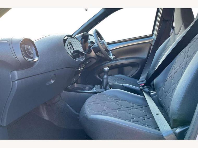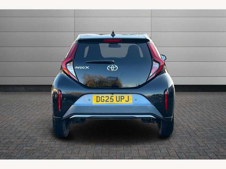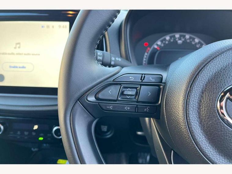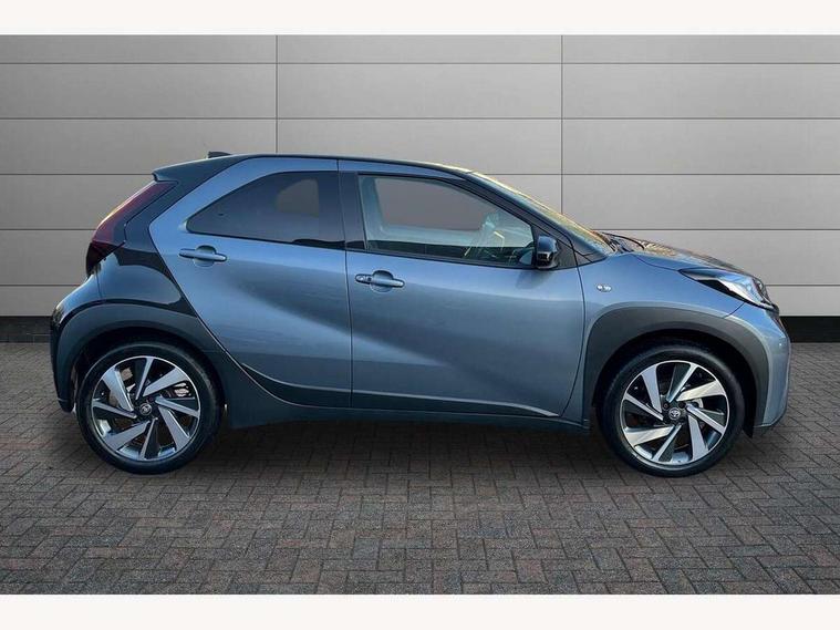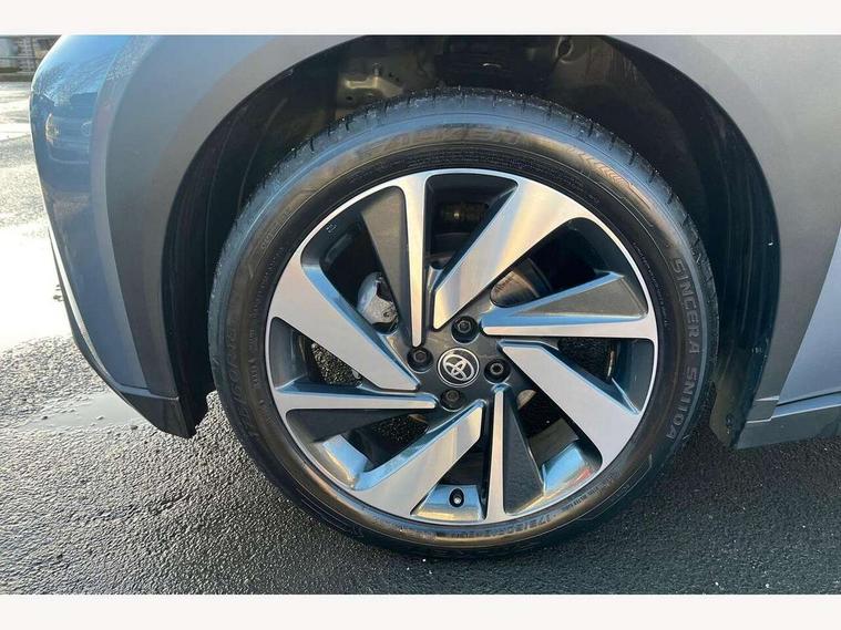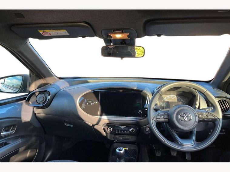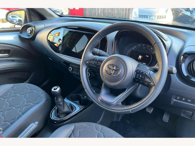 4.2" TFT colour screen, Adjustable speed limiter, Analogue speedometer, Bluetooth connectivity, Digital tachograph, Driver attention alert system, eCall emergency call system, Electric power steering, Front and rear parking sensors with auto brake, Intersection turn assist, Key reminder warning, Noise reduction kit, Pre collision system with emergency steering assist, Remote boot door release on key, Reversing camera with static guide lines, Smart entry and push button start, Smart phone integration with Apple car play/Android Auto, Speed limit display, Start and stop, Wireless charger, Vehicle Stability Control (VSC), 10.5" HD multimedia display touch screen with Toyota smart connect, 4 speakers, DAB digital audio broadcast, USB connector, Auto headlights, Auto wipers, Automatic headlights cut-off, Automatic high beam On/Off switch, Bicycle towing hook, Black contrast roof, Black fog light surrounds, Black side protection mouldings, Black wheel arch mouldings, Body colour door handles, Body coloured front bumper, Boot door scuff plate, Eclipse black rear bumper, Electric heated door mirrors, Follow me home headlights, Front and rear underruns in silver, Front fog lights, Front power windows, Gloss black door mirrors, Gloss black upper front grille, Headlight cut-off reminder, LED daytime running lights guide, LED front light guide, LED High mounted stop lamp, LED projector headlights, Manual day/night rear view mirror, Manual headlight levelling, Pagoda roof, Power adjustable door mirrors, Power back door, Privacy glass, Rain sensor, Rear combination lights LED bulb type, Rear side wing doors, Rear windscreen defogger, Rear windscreen wiper, Remote hazard lights system, Short antenna, Variable intermittent windscreen wipers, 12v power outlet - front, 2 seat bench in 2nd row, 3 spoke leather steering wheel, 50/50 split folding rear seat, Adhesive roof headlining, Adjustable speed limiter switch on steering wheel, Audio and telephone switches on steering wheel, Auto air conditioning, Black roof lining, Body colour satin anodised insert on steering wheel, Boot light, Centre room light, Chrome interior door handles, Chrome surround on air conditioning buttons, Clean air filter, Console box storage, Floor mats, Front and rear cup holders, Front head rest deco art, Front head restraints, Height adjustable driver seat, Intelligent adaptive cruise control switch on steering wheel, ISOFIX child restraint system on rear seats, Lane departure alert switch on steering wheel, Leather gearshift knob, Light blue ambient lighting in centre console, Manual tilt steering wheel, Manually reclining and sliding driver seat, Manually reclining and sliding front passenger seat, Multimedia switches on steering wheel, Partial synthetic leather upholstery, Pollen filter, Rear door pockets, Rear head restraints, Satin silver insert on gear shift knob, Single compartment glovebox with lights, Single front passenger seat, Soft tonneau cover, Sun visors with mirror on driver and passenger side, Voice recognition switch on steering wheel, Toyota safety sense pack - Aygo X, Anti lock braking system + Electronic brake force distribution, Child safety door lock, Emergency brake light signal (EBS), Hill start assist control (HAC), Passenger airbag on/off switch, Seat belt reminder for front and rear seats, Supplement restraints system (SRS) - 6 airbags, Traction control, Tyre pressure warning system, Immobiliser, Remote power door locks, Black wheel centre caps, Tyre repair kit,