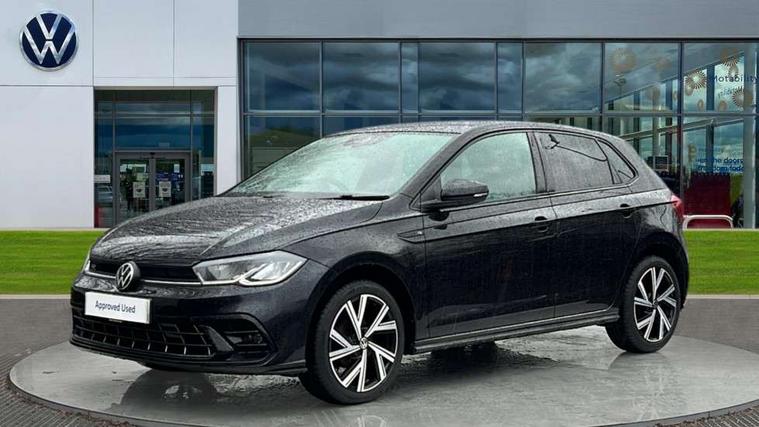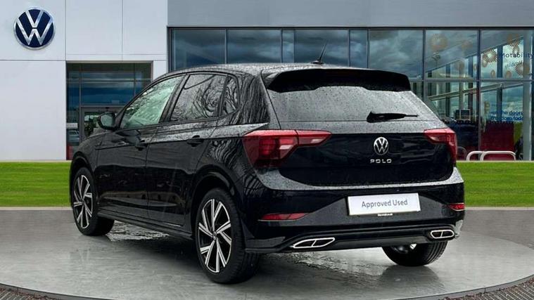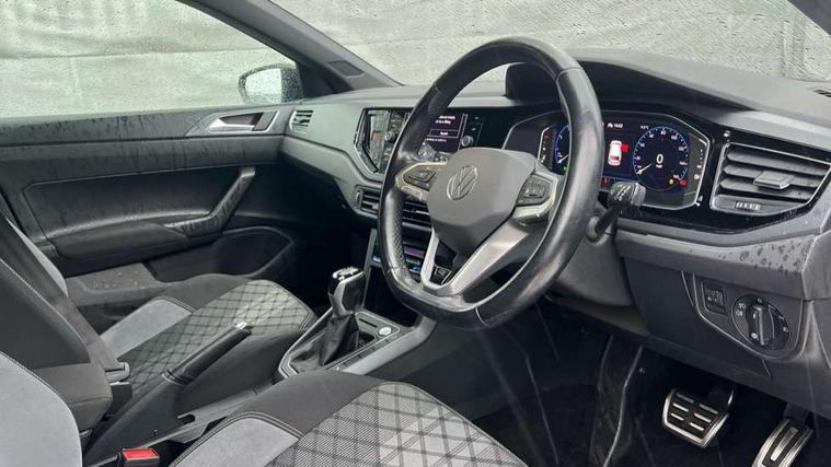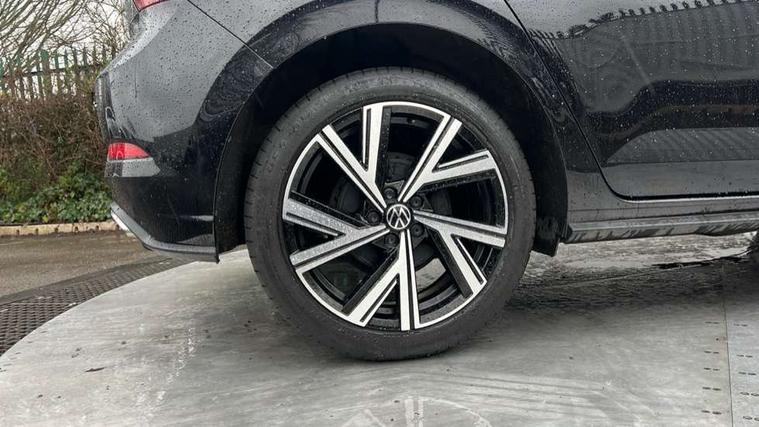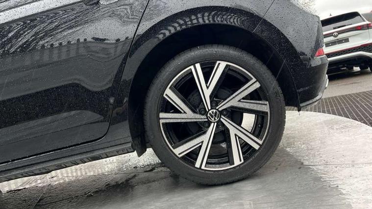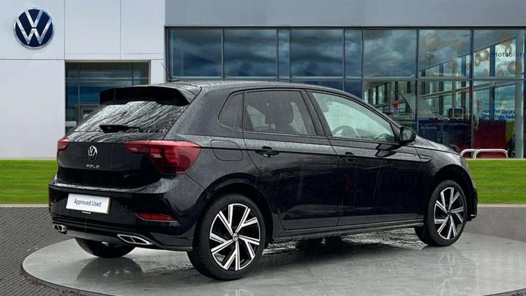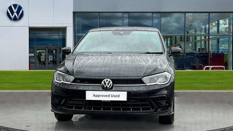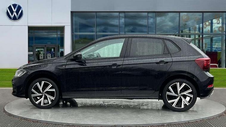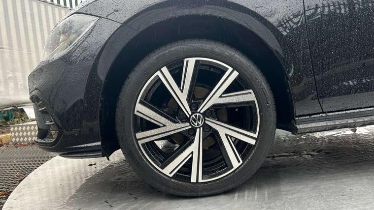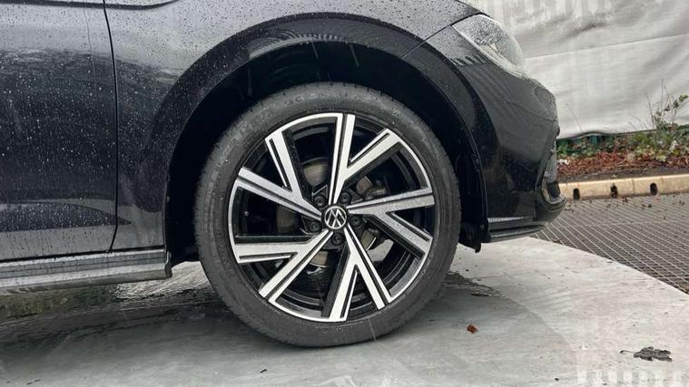 Adaptive cruise control with follow-to-stop and speed limiter, Bluetooth mobile phone interface, Digital Cockpit Pro with 10.25" Display, Driver alert system, Dynamic road sign display, Emergency call service, Power assisted speed sensitive steering, Preparation for We connect and We connect plus, Speedo and rev counter, electronic odometer, trip, service interval display and fuel gauge, Standard rear axle, Travel Assist - Lane keeping system and traffic jam assist, Travel assist including emergency assist, Trip computer, Warning signal and warning light for front and rear seatbelts not fastened, Washer fluid level indicator, Wireless app connect, Front wheel drive, Rear shock absorpion, Start-stop system with battery regeneration (recuperation - energy recovery during braking), DAB Digital radio, Diversity antenna for FM reception, Front and rear 6 speakers, Body colour bumpers, Body colour door handles, Electric front windows, Front scuff plates with R-Line logo, Heat insulating darkened glass in side and rear windows, Heat insulating glass windscreen, Power folding adjustable/heated exterior mirrors and front passenger exterior mirror lowering function, Rear electric windows, Rear fog light, Rear side wing doors, Rear windscreen washer and wiper with interval delay, Third brake light, 12V power socket in centre console, 2 USB-C ports in the front, 2 USB-C charging sockets on the center console in the rear, 3 rear head restraints, 60/40 split folding rear seat and rear seat bench not split, Air care climatronic air conditoning system with active combination filter and 2-zone temperature control, Black roof lining, Chrome plated radiator grille inserts, air vent surrounds and light switch surrounds, Door and side trim panel, Driver and front passenger seat height adjustment, Driver/passenger sunvisors with illuminated vanity mirrors, Front + rear carpet mats in recycled material, Front centre armrest, Front footwell illumination, Front seat backrest storage pockets, Front sports comfort seats, Handbrake lever handle in leather, Headliner in recycled material, Isofix child seat preparation easy-fit (for two outer rear seats, and front passenger seat) compatible with I-size, Karoso artvelours cloth upholstery, Leather trimmed gear knob, LED interior light with switch off delay and dimmer, 2 reading lights front and rear, Luggage compartment cover, Luggage compartment floor, Luggage compartment lighting, Lumbar adjustment for front seats, Single front passenger seat, Stainless steel pedals, Standard pedal cluster, Three spoke leather wrapped multifunction steering wheel with shifting paddles, Light and sight pack - Polo R-Line/Black Edition, 3 point height adj front seatbelts + pretensioners, 3x3 point rear seatbelts, ABS, Driver and front passenger airbag with front passenger airbag deactivation, Drivers and front passengers safety optimised head restraints, ESC (Electronic stability control) + EDL (Electronic Differntial lock) and ASR (Traction control), Extended and predictive pedestrian/ cyclist protection, Front curtain and side airbags with center airbag, Hill hold control, Manual child lock in rear doors, Single tone horn, Tyre pressure loss indicator, Alarm with interior protection, Anti-theft alarm system with interior monitoring, backup horn, and towing protection, Anti-theft wheel bolts, Electronic engine immobiliser, Chrome applications on rotary light, mirror adjustment, window regulator switches, outlet with frame in black, Dark grey anodised matt decorative inserts in dash and front door panels, Low rolling resistance tyres,