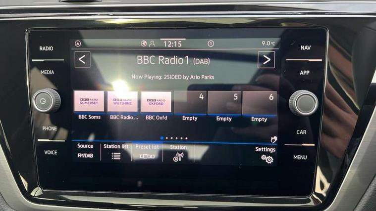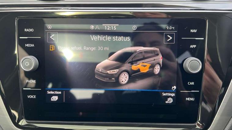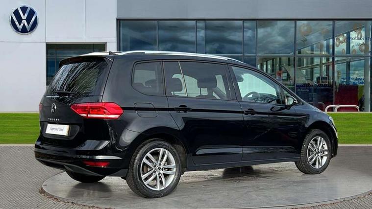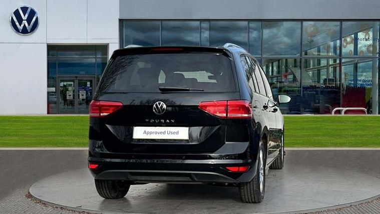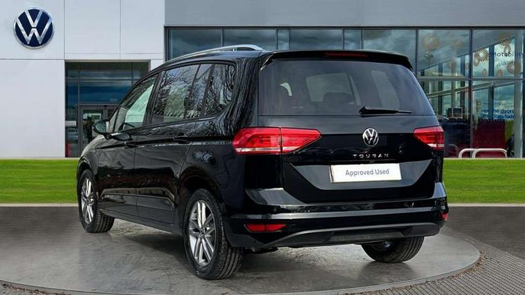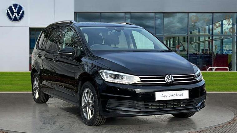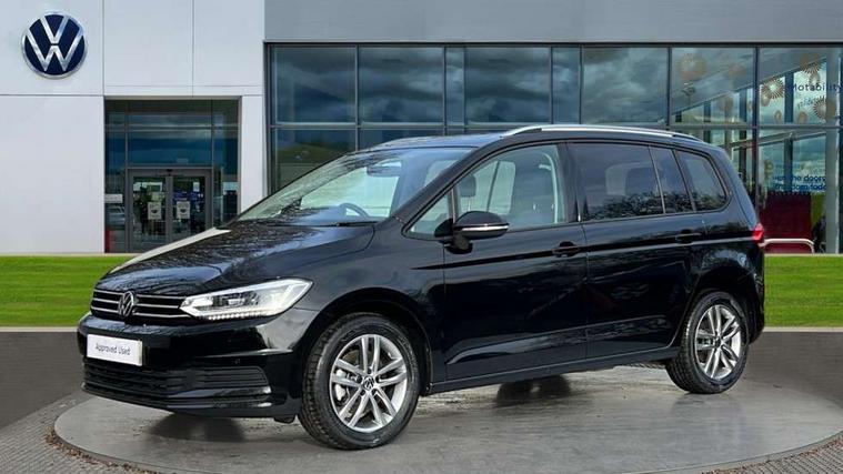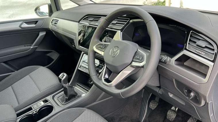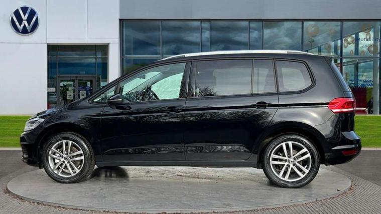Adaptive cruise control, Audible lights on warning, Discover media navigation touchscreen navigation/radio system with streaming and internet, Driver alert system, Driver profile selection, Dynamic road sign display, Electric tailgate, Electronic odometer, Emergency services call system, Extended, crash-active and proactive Pedestrian and cyclist monitoring, External temperature gauge, Front parking sensors, Lane change system side assist and rear traffic alert, Lane keep assist, Misfuelling protection device, Mobile pairing with SMS function, Mobile phone interface with inductive charging, Rear view camera displayed via vehicles audio system display, Rev counter with fuel gauge, Side scan, Speed limiter, Speed sensitive power steering, Stop/start system, Think blue trainer driver tips and journey analysis, Trip and service interval display, We connect' and 'We connect plus' functionality, Petrol Particulate Filter, Rear stabiliser bar, XDS electronic differential lock, 4x20 watt output, 8 Speakers, Audio Connectivity System, DAB Digital radio, External USB-C data socket with increased charging performance - 2 USB sockets 45W, MP3/WMA compatability, SD card slot, Title and cover art display, USB connection, Aerial integrated into side window, Auto dimming door mirrors, on driver side, surround lighting and front passenger side mirror lowering function, Auto dimming rear view mirror, Automatic coming/leaving home lighting function, Body colour bumpers, Body colour door handles, Body colour door mirrors with integral indicators, Door mirrors with memory function, Dusk sensor + auto driving lights, Electric folding door mirrors, Electric heated + adjustable door mirrors, Electric, glass sliding/tilting panoramic sunroof including integrated roller blind and LED lighting around aperture, Front and rear electric windows, Fully galvanised body, Gloss black finish B pillar, Green tinted heat insulating glass, High level third brake light, Rain sensor, Rear fog lights, Rear side wing doors, Rear tinted glass from B-pillar backwards approx 65% tinted, Rear wash/wipe with intermittent wipe setting, Removable engine badge, Silver roof rails, Tailgate wiper- reverse gear activation, Twin chrome exhaust tailpipes, Volkswagen roundel, Windscreen wipers intermittent wipe, 12V power point for Row 2, 12V socket in luggage compartment, 2 individual fold flat 3rd row seats, 2 three point seatbelts in 3rd row, 2nd row centre armrest, 2nd row centre seat converts into table, 3 single slide/fold/removable 2nd row seats, 3 spoke steering wheel, 3x3 point seatbelts on 2nd row with height adjust on outer seats, 4 boot load lashing points, 4 way adjustable front head restraints, 5 headrests, Activated charcoal canister for intensified evaporation system, Air care climatronic 3 zone air conditioning system with rear air conditioning control panel, Chrome plated radiator grille inserts, air vent surrounds and light switch surrounds, Driver and front passenger under seat drawer, Dust/pollen filters, Foldable front passenger seat backrest with load through function, Front and rear reading lights X 2, Front centre armrest with storage compartment, Front comfort seats with lumbar support, Front cupholders x 2, Front passenger seat height adjust, Front seat storage pockets, Front seatback folding tables, Height adjustable driver's seat, Height/reach adjust steering wheel, Illuminated glovebox, Instrument lighting white adjustable panel illumination with red night time illumination, Interior light with delay, Isofix on 2nd row outer seats, Isofix on 3rd row seats, Large storage compartment in roof console, Lasano cloth upholstery, Leather multifunction steering wheel with gear knob, Leatherette on rear of front seats, Low tunnel 2nd row seat, Luggage compartment lighting, Media box in dashboard on passenger side, Multi storage in passenger/luggage areas, Multi-function centre console with storage facilities, Retractable luggage cover, Split folding rear seat backrests, Storage bins on all doors, Sun visors with illuminated vanity mirrors, Family Pack - Touran, Winter pack without heated washer jet - Touran, 3 point height adjustable front seatbelts, Auto hold function, Automatic post collision braking system, Door open warning reflectors, Driver/Front Passenger airbags, Drivers knee airbag, EDL + ASR, Electronic parking brake, Energy recovery system, ESC with ABS, First aid kit, Front and rear (row 2) curtain airbags, Front assist with autonomous emergency braking, Front seat side impact airbags, Front seatbelt pretensioners, Front/rear disc brakes, Hill hold control, Hydraulic Brake Assist (HBA), Loose wheel warning function, Manual passenger airbag deactivation function, Pre crash preventive occupant protection, Proactive passenger protection system with front and side assist, Rear child proof door locks, Road sign recognition, Seatbelt warning lamp and buzzer, Traction control, Two tone horn, Warning triangle, Alarm with remote central locking and interior protection, Electronic engine immobiliser, Keyless Access Keyless locking and starting system with SAFELOCK, New brushed design decorative inserts in dash and front doors, 17" Salvador alloy wheels with anti-theft wheel bolts, 215/55 R17 self sealing tyres with low rolling resistance,
