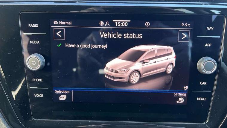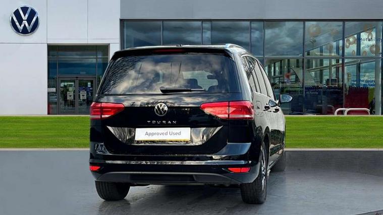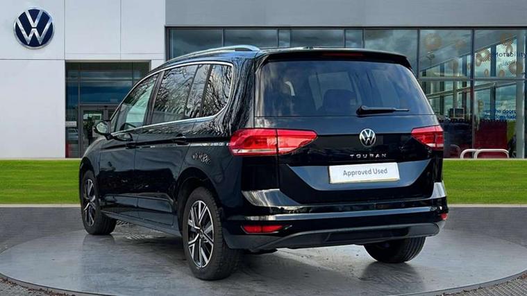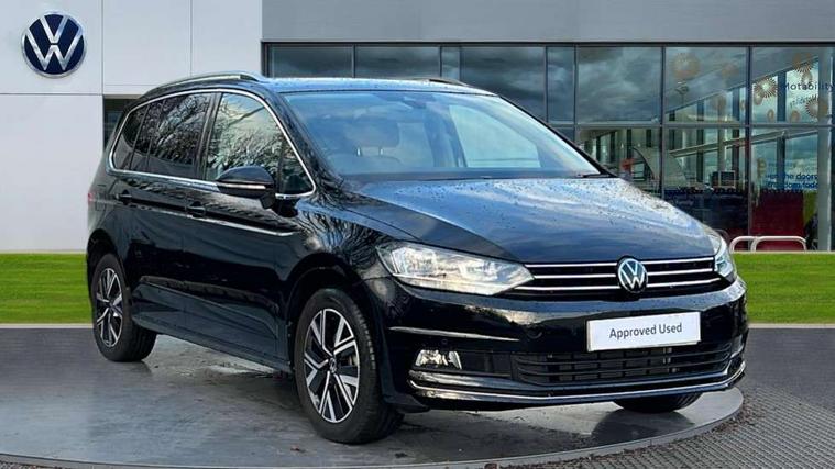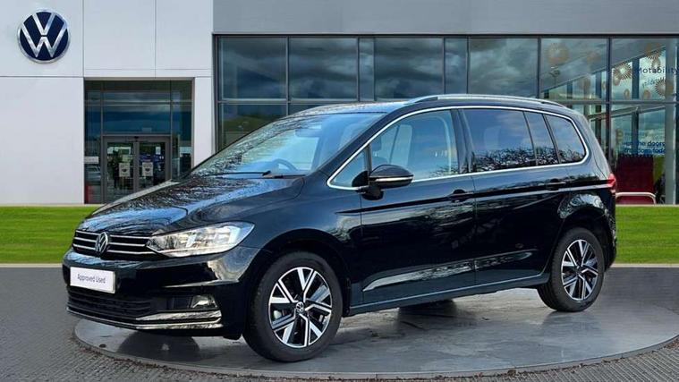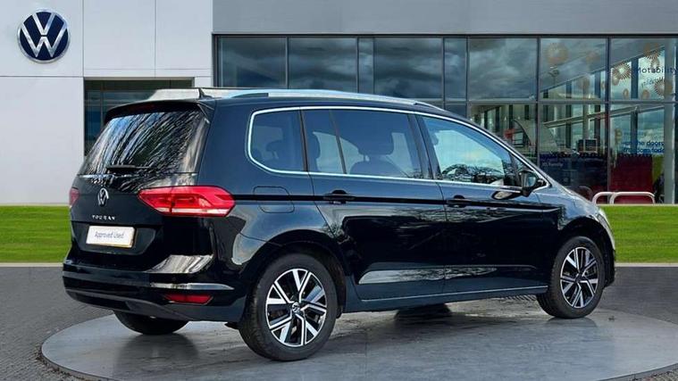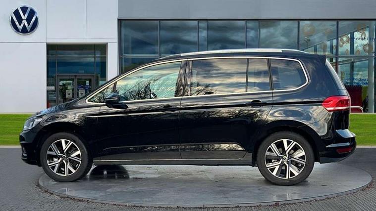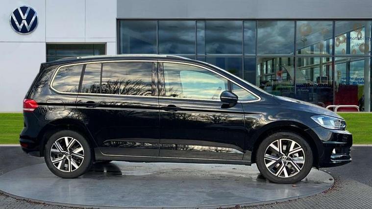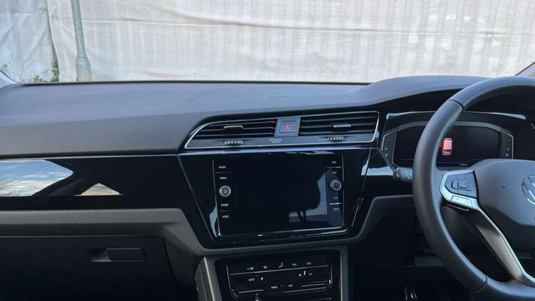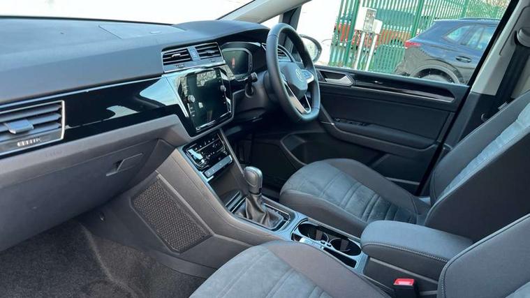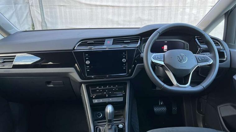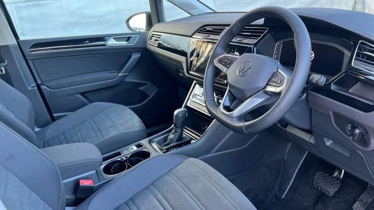 Active info display - Digital cockpit 10.25" HD display screen, Adaptive cruise control, Audible lights on warning, Discover media navigation touchscreen navigation/radio system with streaming and internet, Driver alert system, Driver electronic voice amplification function, Driver profile selection, Dynamic road sign display, Electronic odometer, Emergency services call system, Extended, crash-active and proactive Pedestrian and cyclist monitoring, External temperature gauge, Front parking sensors, Lane change system side assist and rear traffic alert, Lane keep assist, Mobile pairing with SMS function, Mobile phone interface with inductive charging, Rev counter with fuel gauge, Speed limiter, Speed sensitive power steering, Stop/start system, Think blue trainer driver tips and journey analysis, Trip and service interval display, Wireless app connect without mirror link, Petrol Particulate Filter, XDS electronic differential lock, 4x20 watt output, 8 Speakers, Audio Connectivity System, DAB Digital radio, External USB-C data socket with increased charging performance - 2 USB sockets 45W, MP3/WMA compatability, SD card slot, Title and cover art display, USB connection, Aerial integrated into side window, Auto dimming door mirrors, on driver side, surround lighting and front passenger side mirror lowering function, Auto dimming rear view mirror, Automatic coming/leaving home lighting function, Body colour bumpers, Body colour door handles, Body colour door mirrors with integral indicators, Chrome fog light surround, Chrome lower front bumper insert, Chrome trimmed front air intake surrounds, Chrome trimmed radiator grille louvre inserts, Chrome trimmed side windows, Dusk sensor + auto driving lights, Front and rear electric windows, Front fog lights with static cornering function, Fully galvanised body, Gloss black finish B pillar, Green tinted heat insulating glass, High level third brake light, Rain sensor, Rear side wing doors, Rear tinted glass from B-pillar backwards approx 65% tinted, Rear wash/wipe with intermittent wipe setting, Silver roof rails, Tailgate wiper- reverse gear activation, Twin chrome exhaust tailpipes, Volkswagen roundel, Windscreen wipers intermittent wipe, 12V power point for Row 2, 12V socket in luggage compartment, 2 individual fold flat 3rd row seats, 2 three point seatbelts in 3rd row, 2nd row centre armrest, 2nd row centre seat converts into table, 3 single slide/fold/removable 2nd row seats, 3 spoke steering wheel, 3 Zone electronic climate control with automatic air recirculation, 3x3 point seatbelts on 2nd row with height adjust on outer seats, 4 boot load lashing points, 4 way adjustable front head restraints, 5 headrests, Ambient lighting in door trim and foot well, Art velour/Microfibre cloth upholstery, Driver and front passenger under seat drawer, Dust/pollen filters, Foldable front passenger seat backrest, Front + rear carpet mats, Front and rear reading lights, Front centre armrest with storage compartment, Front comfort seats with lumbar support, Front cupholders x 2, Front passenger seat height adjust, Front seat storage pockets, Front seatback folding tables, Height adjustable driver's seat, Height/reach adjust steering wheel, Illuminated glovebox, Illuminated vanity mirrors, Instrument lighting white adjustable panel illumination with red night time illumination, Interior light with delay, Isofix on 2nd row outer seats, Isofix on 3rd row seats, Large storage compartment in roof console, Leatherette on rear of front seats, Low tunnel 2nd row seat, Luggage compartment lighting, Media box in dashboard on passenger side, Multi storage in passenger/luggage areas, Multi-function centre console with storage facilities, Multifunction leather trimmed steering wheel including leather trimmed gear knob with 3.5" screen with multifunction computer, Retractable luggage cover, Split folding rear seat backrests, Storage bins on all doors, Mirror pack - Touran, 3 point height adjustable front seatbelts, Auto hold function, Automatic post collision braking system, Door open warning reflectors, Driver/Front Passenger airbags, Drivers knee airbag, EDL + ASR, Electrically operated child locks on rear doors, Electronic parking brake, Energy recovery system, ESC with ABS, First aid kit, Front and rear (row 2) curtain airbags, Front assist including city emergency braking, Front seat side impact airbags, Front seatbelt pretensioners, Front/rear disc brakes, Hill hold control, Hydraulic Brake Assist (HBA), Loose wheel warning function, Manual passenger airbag deactivation function, Pre crash preventive occupant protection, Proactive passenger protection system with front and side assist, Rear child proof door locks, Seatbelt warning lamp and buzzer, Traction control, Two tone horn, Warning triangle, Alarm with remote central locking and interior protection, Electronic engine immobiliser, Chrome plated instrument surrounds, Piano black decorative inserts, 17" Alexandria alloy wheels with self sealing tyres and anti-theft wheel bolts,