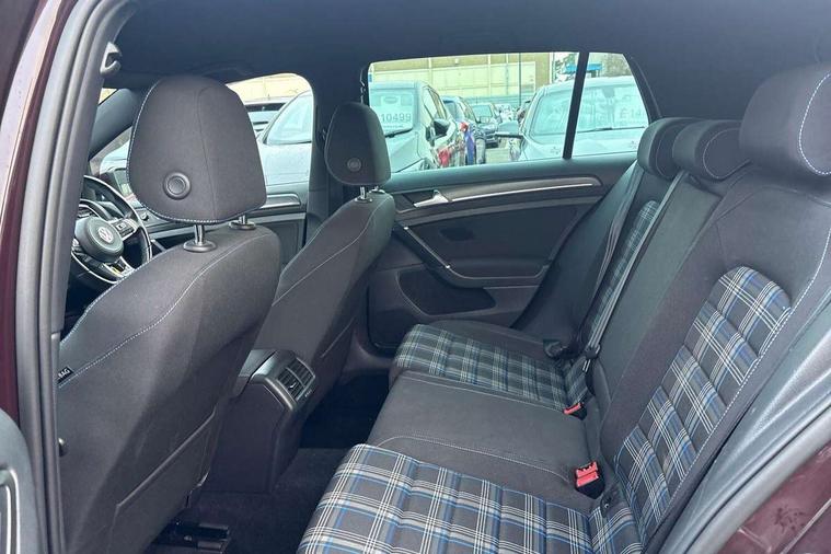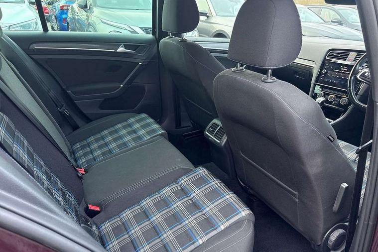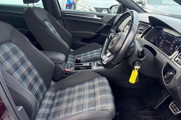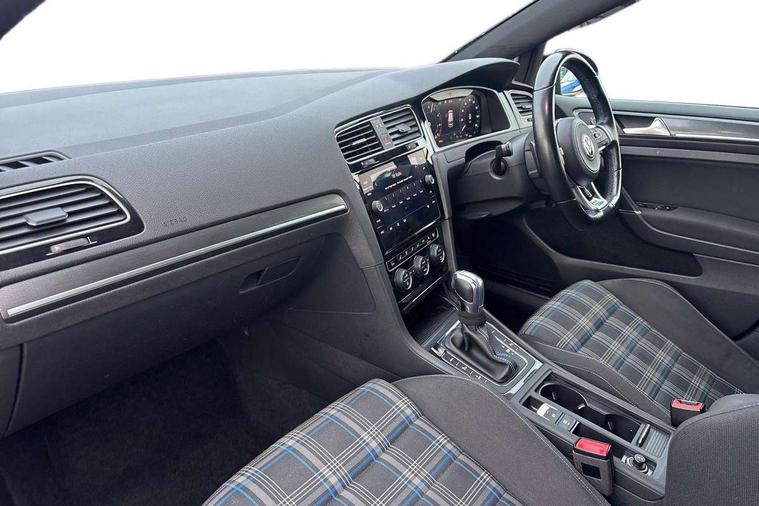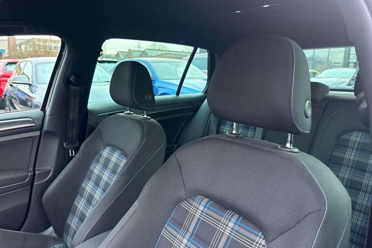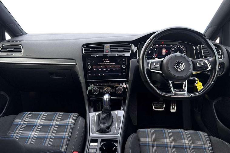 App-Connect, 'Lights On' Reminder warning buzzer, 8" touch screen, Adaptive Cruise Control with pedestrian detection and speed limiter, Bluetooth hands free telephone connection, Brake pad wear indicator warning light, Driver alert system, Driver profile selection, Exterior temperature gauge, Front assistant collision mitigation, Instrument cluster in white, Multifunction computer, PAS - speed related, Rev counter, Trip and service interval display, Ultrasonic front and rear optical and audible parking sensors, Warning buzzer and light for front seatbelts unfastened, XDS electronic differential lock, CD/MP3/WMA, USB and SD card reader, aux-in, Composition media system, DAB Digital radio, 3D-LED-SBBR with sweeping indicator, Auto dimming rear view mirror, Automatic coming/leaving home lighting function, Automatic headlights, Black front air intake and radiator grille with chrome insert, Black rear diffuser, Body colour bumpers, Body colour door handles, Body colour door mirrors, Chrome grille surround, Electric front windows, Electric rear windows, Electrically adjustable and heated door mirrors, Heated rear windscreen, LED daytime running lights, LED rear lights, Rain sensor, Rear roof spoiler, Rear windscreen washer and wiper with interval delay, Side skirts, Twin exhaust tailpipe, 12V socket in luggage compartment, 3 rear headrests, 3 spoke steering wheel, 60/40 split folding rear seat, Air conditioning - 2 zone electronic climate control, Aluminium/leather gear knob, Bag hook in luggage compartment, Black headlining, Boot lashing points, Cooled glovebox, Courtesy light delay, Cover for storage compartment in centre, Dust/pollen filter, Front + rear carpet mats, Front centre armrest with storage box and rear air vents, Front passenger seat height adjust, Front seat back storage pockets, Gearshift paddles, Grab handles, Height adjustable driver's seat, Height/reach adjust steering wheel, Illuminated vanity mirrors, Isofix preparation for 2 rear child seats, Load through provision with rear centre armrest and cupholders x2, Luggage compartment cover, Luggage compartment lighting, Multifunction leather steering wheel with blue stitching, Overhead storage box, Stainless steel pedals, Storage box in luggage compartment, Storage compartments in doors, Sun visors, Ambient lighting pack - Golf, Mirror pack - Golf, 3 point height adj front seatbelts + pretensioners, 3 rear 3 point seatbelts, ABS, Automatic post collision braking, Blue brake callipers, Child locks on rear doors, Driver/Front Passenger airbags, Driver/Passenger whiplash optimised head restraints, Drivers knee airbag, Electronic parking brake with auto hold, ESP with EDL + ASR, Front and rear curtain airbags, Front passenger airbag deactivation, Front side airbags, Pre crash system, Tyre pressure monitor, Alarm with interior protection, Electronic engine immobiliser, Remote central locking with 2 remote folding keys, Chrome-plated light switch surround, Honeycomb black decorative inserts, Piano black centre console, 18" Marseille alloy wheels, Tyre repair kit,