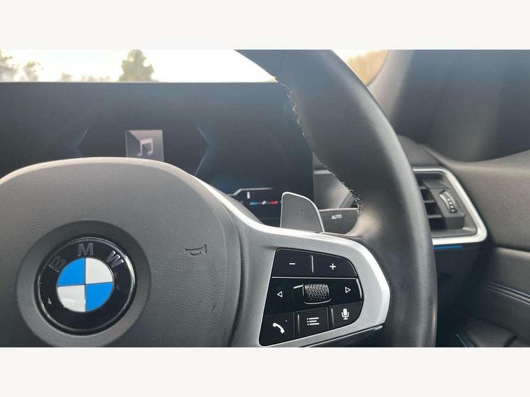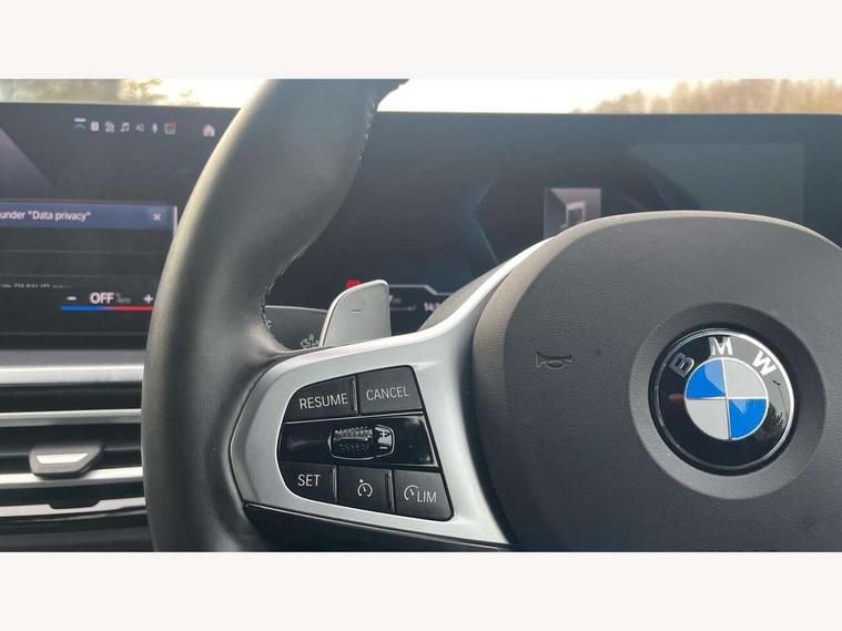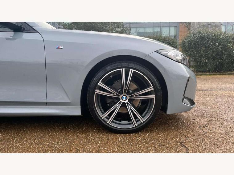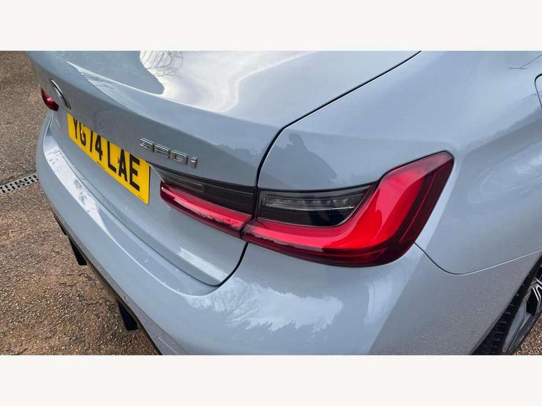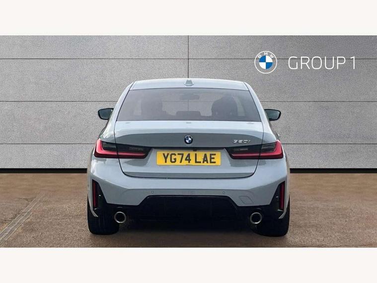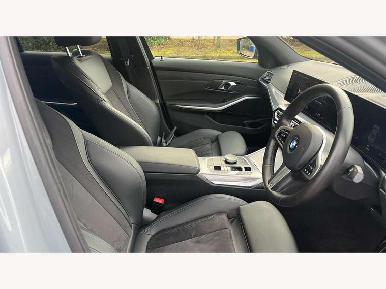 Active guard plus, Attentiveness assist, Automatic Start/stop button, BMW iDrive, BMW Teleservices, Condition based service, ConnectedDrive Services, Driving experience switch, Live cockpit plus with Navigation + 12.3" instrument display + 14.9" display, Intelligent voice assist, 2 USB, 4G LTE connect, Oil sensor for level and grade, PAS, Preparation for driver assistance, Shifting point display, Variable sport steering, Double joint spring strut front axle, Fuel tank breather system, Sport automatic transmission with steering-wheel mounted gearshift paddles and launch control, DAB tuner, 3rd brake light, Auto dimming rear view mirror, Auto dimming with folding wing mirrors, Automated High beam assist, Automatic headlight beam throw control with load dependent regulating reaction, dynamic compensation of braking dive and acceleration squat, BMW emblem, engine compartment lid and tailgate, Body colour roof fin, Door sill strips, Electric windows - front and rear, with open/close fingertip control, anti-trap facility and comfort closing, Follow me home headlight function, Front and rear bumper system with replaceable deformation elements, Front apron plastic in body colour, Fuel filler flap - right rear in body colour, Heated washer jets, High gloss shadow line exterior trim, Illuminated bow type door handles in body colour drivers side with door lock, Interior rear view electrochromatic mirror with automatic anti dazzle function, LED headlights with LED daytime running lights and LED turn indicator, LED rear lights, Licence plate panel integrated into front bumper and tailgate, Matt black B-pillar finsher, Matt black window recess cover, Model designation on right side of tailgate, One piece front bumper cover including towing eye cover in body colour, Rain sensor with automatic headlight activation, Rear boot, Rear side wing doors, Reversing lights, Side frame decorative moulding black matt, Visible exhaust tailpipe finisher, Welcome lights in interior and door handle area, 12V power socket in front storage compartment, 2 front cupholder in centre console with clamping elements and matt black inlay, 3 seat bench in 2nd row, 3 zone automatic air conditioning, 40:20:40 split folding rear seat with loading system, Ambient inside door handle light, Ambient light design projected onto the left and right entering and exiting area, Ambient storage compartment lighting in the centre console, Anthracite headlining, Armrest integrated in front and rear door trim + front centre console armrest, BMW ID, Contour lighting in instrument panel and door trim panel, Cruise control operation in steering wheel, Driving experience mode switch, Extended storage, Folding rear centre armrest with 2 cupholders, Front and rear ambient footwell lighting, Front and rear door exit lighting (left / right), Front and rear headrests, Front and rear reading lights, Front and rear velour floor mats, Heated front seats, Height adjustable mechanically and infinitely variable steering column, Illuminated armrest storage compartment, Illuminated glove compartment, Illuminated luggage compartment, Lashing eyelets in luggage compartment, M Sport multifunction leather steering wheel, Make-up mirror lights, Single front passenger seat, Standard seat for driver and passenger with manual adjustment, Sunvisors with illuminated vanity mirrors and ticket pocket, Toolkit located in luggage compartment, Connected pack professional - 3 Series Saloon/Touring, Interior and exterior mirror pack - 3 Series Touring/Saloon, M Aerodynamics package - 3 Series Saloon/Touring, M sport exterior styling pack - 3 Series Saloon/Touring, Parking assistant pack - 3 Series, Storage compartment pack - 3 Series Saloon/Touring, 3x3 point rear seatbelts, BMW emergency call, Child locks on rear doors, Crash sensor activating of airbags, Unlocking doors, hazard warning lights, interior light, safety battery terminal, Driver and front passenger with seat occupancy detection for driver's and passenger side, Driver and passenger side airbags, body protection at side and airbags deploy from seat backrests, Dynamic brake control, Dynamic stability control + (DSC+) - Anti-lock Braking System (ABS) with brake assist and cornering brake control + Automatic Stability Control (ASC), Dynamic Traction Control - DTC, Electric parking brake including automatic hold function and automatic release of the parking brake when driving off, Electronic differential lock control (EDLC), Front airbag deactivation, Head airbags in 1st and 2nd row, head protection at side, curtain airbags open from headliner above 1st and 2nd row, Plastic fuel tank, Side impact protection, Tyre pressure monitoring with three level warning strategy, Ventilated front and rear disc brakes, Warning triangle and first aid kit, Alarm system, Centre lock switch, Closing system with central locking, Electronic vehicle immobiliser, Locking wheel bolts, Tyre repair kit,
