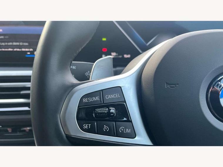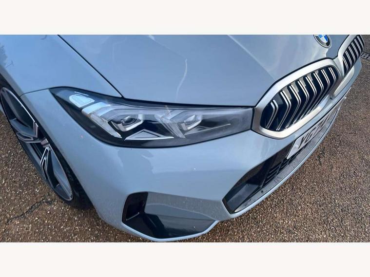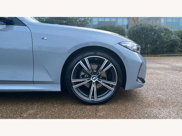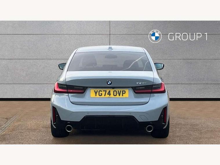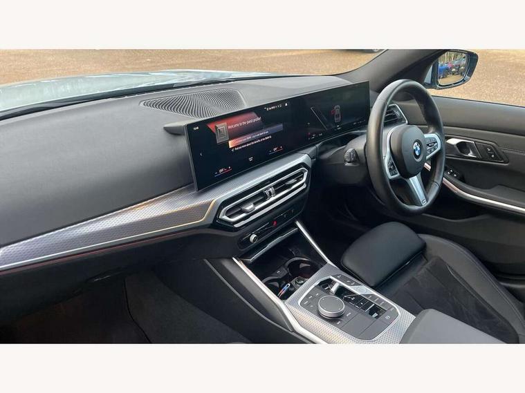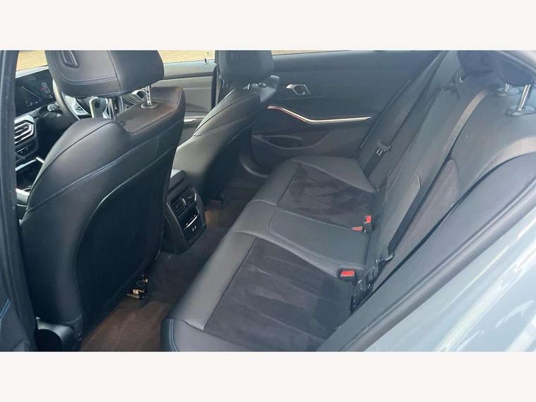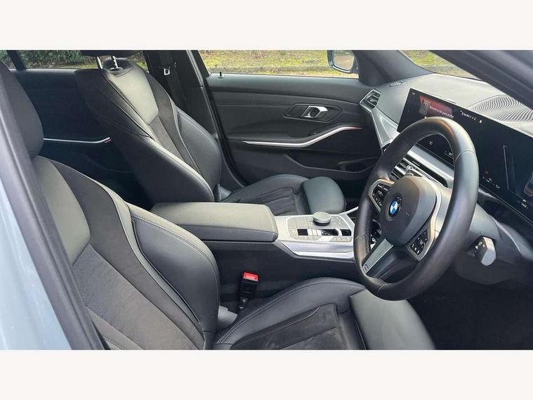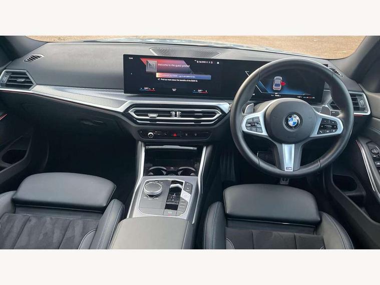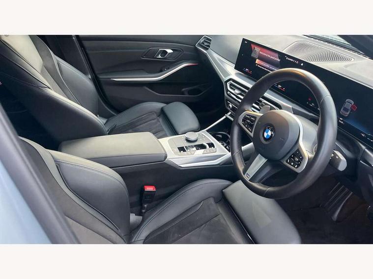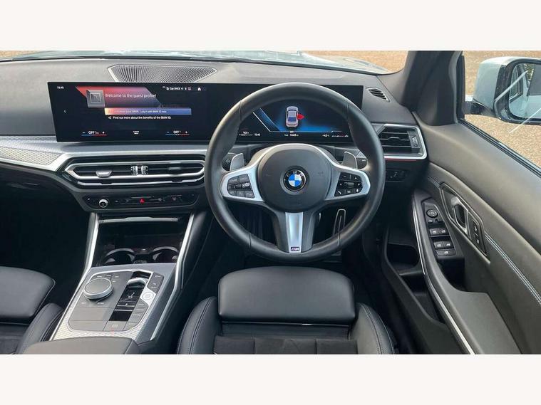 Active guard plus, Attentiveness assist, Automatic Start/stop button, BMW iDrive, BMW Teleservices, Condition based service, ConnectedDrive Services, Driving experience switch, Live cockpit plus with Navigation + 12.3" instrument display + 14.9" display, Intelligent voice assist, 2 USB, 4G LTE connect, Oil sensor for level and grade, PAS, Preparation for driver assistance, Shifting point display, Variable sport steering, Double joint spring strut front axle, Fuel tank breather system, Sport automatic transmission with steering-wheel mounted gearshift paddles and launch control, DAB tuner, 3rd brake light, Auto dimming rear view mirror, Auto dimming with folding wing mirrors, Automated High beam assist, Automatic headlight beam throw control with load dependent regulating reaction, dynamic compensation of braking dive and acceleration squat, BMW emblem, engine compartment lid and tailgate, Body colour roof fin, Door sill strips, Electric windows - front and rear, with open/close fingertip control, anti-trap facility and comfort closing, Follow me home headlight function, Front and rear bumper system with replaceable deformation elements, Front apron plastic in body colour, Fuel filler flap - right rear in body colour, Heated washer jets, High gloss shadow line exterior trim, Illuminated bow type door handles in body colour drivers side with door lock, Interior rear view electrochromatic mirror with automatic anti dazzle function, LED headlights with LED daytime running lights and LED turn indicator, LED rear lights, Licence plate panel integrated into front bumper and tailgate, Matt black B-pillar finsher, Matt black window recess cover, Model designation on right side of tailgate, One piece front bumper cover including towing eye cover in body colour, Rain sensor with automatic headlight activation, Rear boot, Rear side wing doors, Reversing lights, Side frame decorative moulding black matt, Visible exhaust tailpipe finisher, Welcome lights in interior and door handle area, 12V power socket in front storage compartment, 2 front cupholder in centre console with clamping elements and matt black inlay, 3 seat bench in 2nd row, 3 zone automatic air conditioning, 40:20:40 split folding rear seat with loading system, Ambient inside door handle light, Ambient light design projected onto the left and right entering and exiting area, Ambient storage compartment lighting in the centre console, Anthracite headlining, Armrest integrated in front and rear door trim + front centre console armrest, BMW ID, Contour lighting in instrument panel and door trim panel, Cruise control operation in steering wheel, Driving experience mode switch, Extended storage, Folding rear centre armrest with 2 cupholders, Front and rear ambient footwell lighting, Front and rear door exit lighting (left / right), Front and rear headrests, Front and rear reading lights, Front and rear velour floor mats, Heated front seats, Height adjustable mechanically and infinitely variable steering column, Illuminated armrest storage compartment, Illuminated glove compartment, Illuminated luggage compartment, Lashing eyelets in luggage compartment, M Sport multifunction leather steering wheel, Make-up mirror lights, Single front passenger seat, Standard seat for driver and passenger with manual adjustment, Sunvisors with illuminated vanity mirrors and ticket pocket, Toolkit located in luggage compartment, Connected pack professional - 3 Series Saloon/Touring, Interior and exterior mirror pack - 3 Series Touring/Saloon, M Aerodynamics package - 3 Series Saloon/Touring, M sport exterior styling pack - 3 Series Saloon/Touring, Parking assistant pack - 3 Series, Storage compartment pack - 3 Series Saloon/Touring, 3x3 point rear seatbelts, BMW emergency call, Child locks on rear doors, Crash sensor activating of airbags, Unlocking doors, hazard warning lights, interior light, safety battery terminal, Driver and front passenger with seat occupancy detection for driver's and passenger side, Driver and passenger side airbags, body protection at side and airbags deploy from seat backrests, Dynamic brake control, Dynamic stability control + (DSC+) - Anti-lock Braking System (ABS) with brake assist and cornering brake control + Automatic Stability Control (ASC), Dynamic Traction Control - DTC, Electric parking brake including automatic hold function and automatic release of the parking brake when driving off, Electronic differential lock control (EDLC), Front airbag deactivation, Head airbags in 1st and 2nd row, head protection at side, curtain airbags open from headliner above 1st and 2nd row, Plastic fuel tank, Side impact protection, Tyre pressure monitoring with three level warning strategy, Ventilated front and rear disc brakes, Warning triangle and first aid kit, Alarm system, Centre lock switch, Closing system with central locking, Electronic vehicle immobiliser, Locking wheel bolts, Tyre repair kit,
