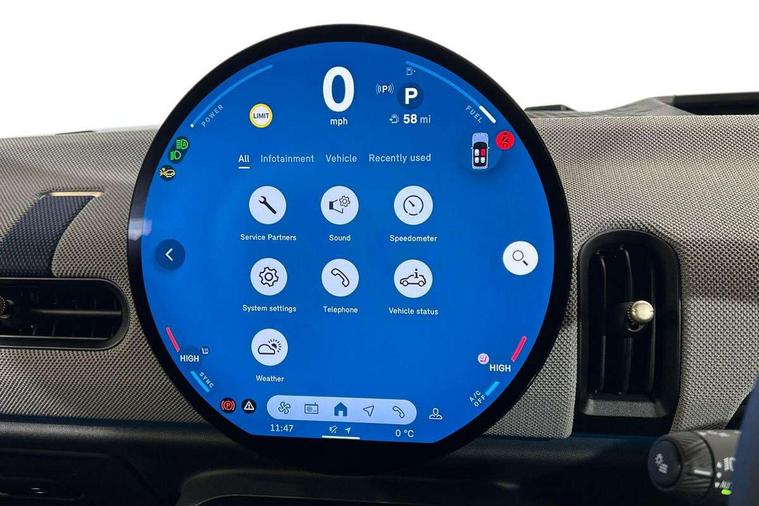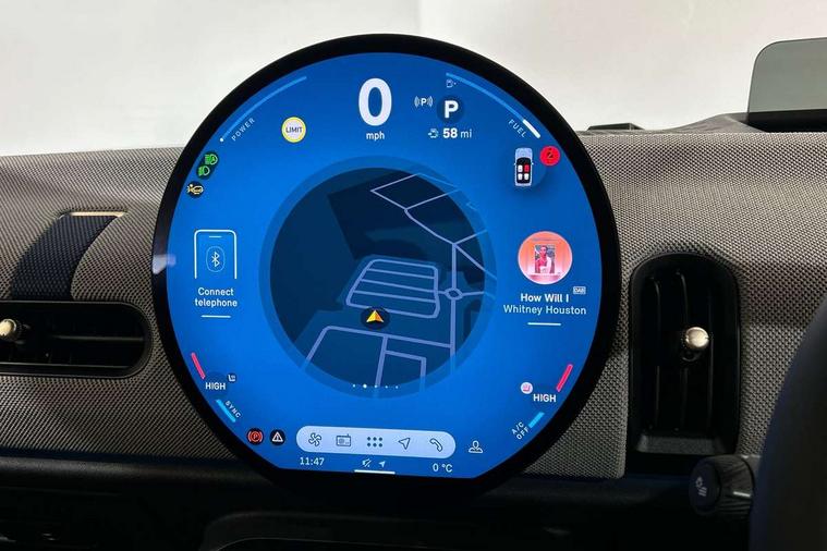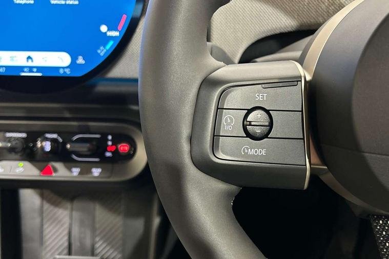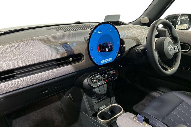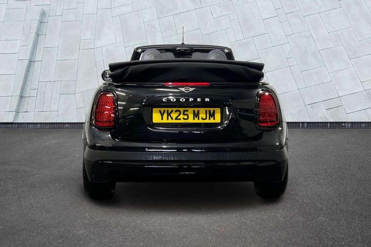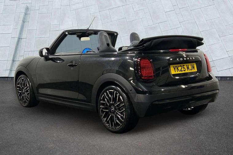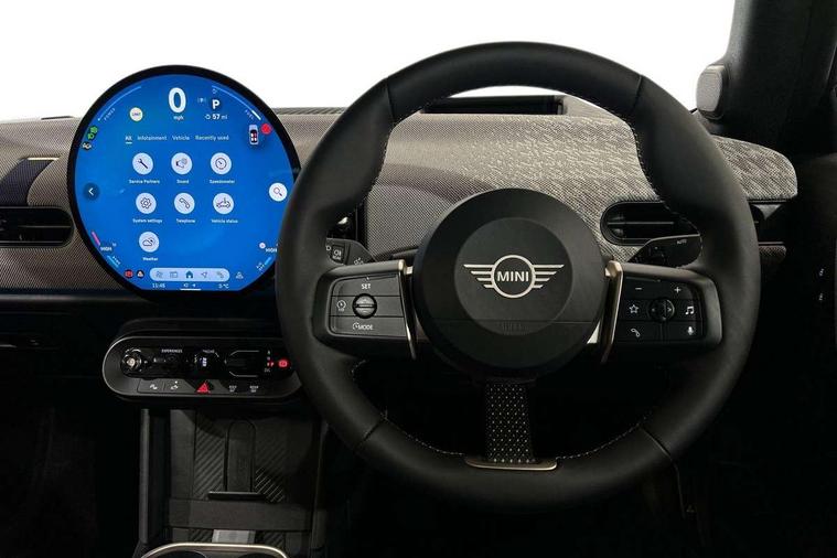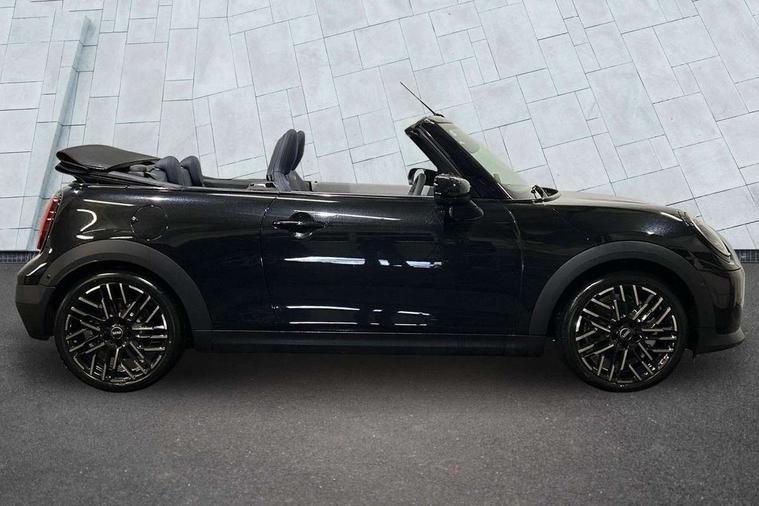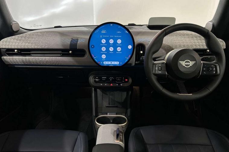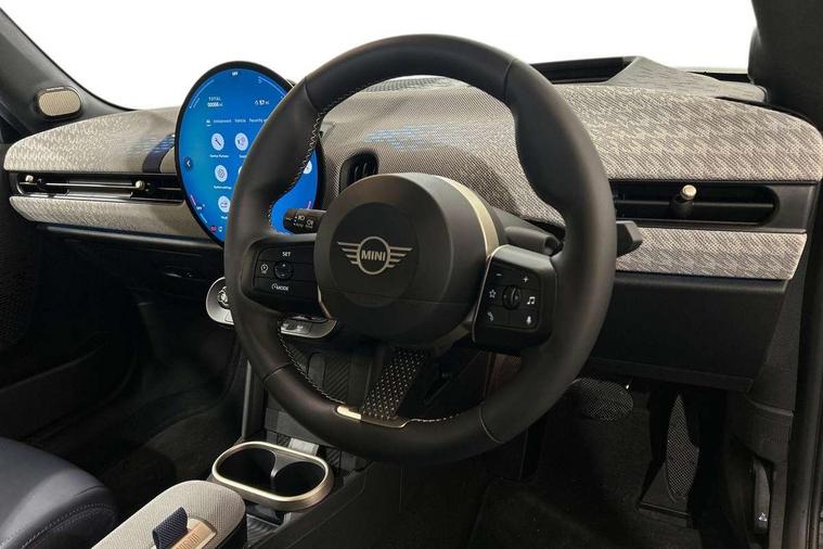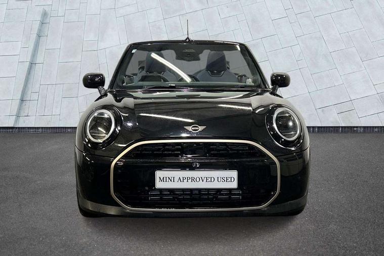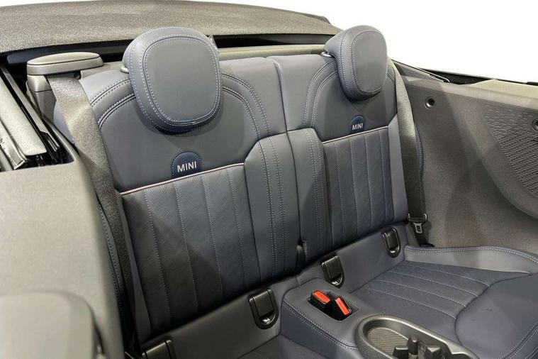 Always open timer, Central toggle bar, Circular OLED Screen, Compatible mobile phone bluetooth with audio streaming, Cruise control, Digital instrument cluster, e-Call (emergency call), MINI Experience Modes, Mini navigation system, On board computer, PAS, Service interval indicator, 7 speed steptronic transmission with double clutch, DAB Digital radio, Personal eSim, Auto headlights, Electric front windows, LED 3rd brake light, LED daytime running lights, LED Headlights, LED indicator lights, LED rear lights, Logos in Vibrant Silver, Rain sensor window wipers, Rear boot, Rear fog lights, Vibrant silver grille surround, Wind deflector, 2 seat bench in second row, 2 zone automatic air conditioning, 60/40 rear seat bench, Ambient lighting, Floor mats, Front and rear head restraints, Front compact armrest, Heated steering wheel, Height adjustable passenger seat, Lidded storage box in grey knit, Light headliner, Luggage compartment lighting, Single front passenger seat, Sport Vescin Steering Wheel black with vibrant silver accents, Sunvisors with vanity mirrors, Vescin synthetic leather upholstery includes dash knit in beige with grey accents, Driving assistant pack - Cooper Convertible, Park assistant pack - Cooper Convertible, 3 point seatbelts on all four seats, 6 Airbags - front, side, head and seat belt tensioners, Anti-lock braking system (ABS), DSC - Dynamic Stability Control, Electronic parking brake, Front and rear disc brakes, Front ISOFIX (iSize), Front passenger airbag deactivation, Traction control, Tyre pressure monitoring system, Alarm, Immobiliser, Physical spare key (not digital), Remote central locking, Blue decorative dash strap, Tyre repair kit,