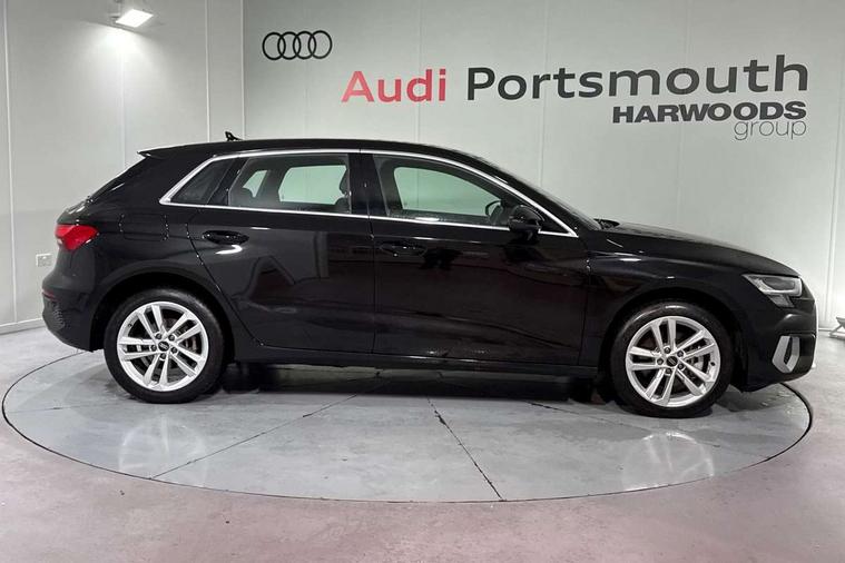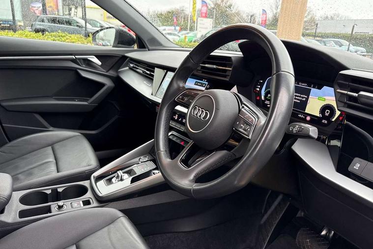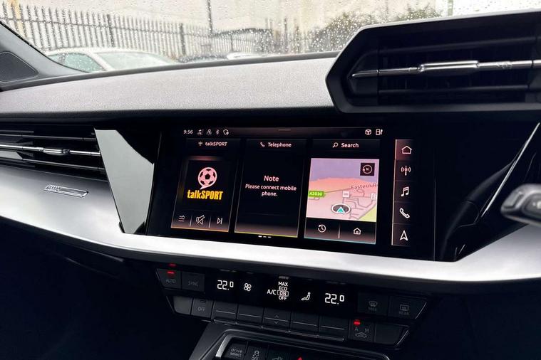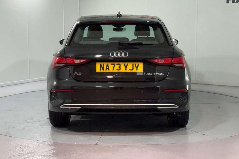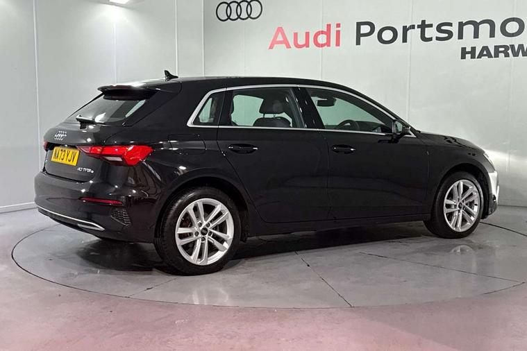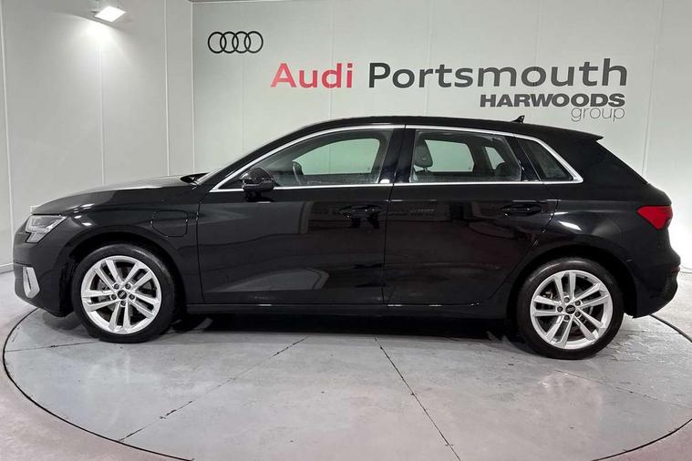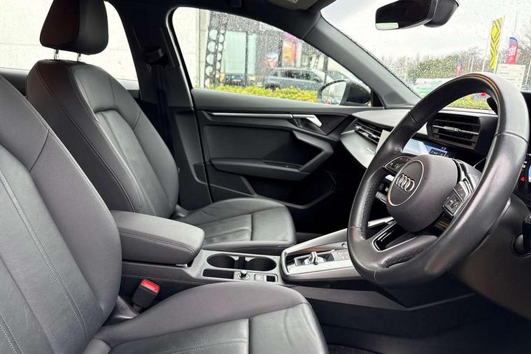 Audi drive select (Auto, Comfort, Dynamic, Efficiency and Individual), Audi smartphone interface, Audi Virtual Cockpit - 10.25" digital and colour instrument cluster, Automatic start/stop system with recuperation, Bluetooth interface, Camera based traffic sign recognition, Collision avoidance assistant, e-Call (emergency call), Electromechanical power speed sensitive steering, Lane departure warning system, MMI Navigation Plus with high resolution 10.1" colour touch screen display, Service indicator, Trip computer, Voice control system with natural language interaction, 3 pin 10 amp domestic charging cable, 3.6 kw On-board charger, Standard suspension, Type 2 mode 3 32 amp charging cable, Type 2 socket for AC charging, 2xUSB-C connection with data and charging functions, 6 passive loudspeakers, DAB Digital radio, 3rd brake light, Acoustic glass windscreen, Aluminium window trim, Auto dimming frameless rear view mirror, Body colour exterior mirrors, Body colour roof spoiler, Electrically adjustable/heated/folding/auto dimming door mirrors with integrated LED indications + kerb view function for passenger side, Front electric windows, LED daytime running lights, LED headlights and halogen rear lights, Light and rain sensors, Rear electric windows, Rear side wing doors, Rear window, rear door windows and rear side windows in clear glass, Rear wiper, 12V socket and storage compartment in front centre console, 3 seat bench in 2nd row, 3 spoke leather multifunction steering wheel with paddle shift, 4 way electrically adjustable lumbar support for driver and front passenger, 60/40 split folding rear seat bench, Dual zone electronic climate control, Front and rear headrests, Front centre armrest, Front door sill trims with aluminium inlay, Front/rear floor mats, Height and reach adjustable steering wheel, Interior lighting - Front and rear roof module including reading lights, glove compartment light and right hand side, Interior lighting - glove compartment light and right hand side, Luggage compartment floor covering, Manual boot compartment lid, Manually adjustable front seats, Routine cloth upholstery with front sports seats, Seat side bolsters, Single front passenger seat, Steel grey cloth headlining, Aluminium interior elements pack - A3 Sportback, LED interior lighting pack - A3 Sportback, Sport styling pack - A3 Sportback, 3x3 point rear seat belts, Driver and front passenger airbag with passenger airbag deactivation, Electronic Stabilisation Control (ESC) including ABS, ASR and EDL, First aid kit with warning triangle and 2 safety vests, Front side airbags with head airbags and interaction airbag, Pre-sense front with pedestrian and cyclist detection, Seatbelt monitoring, Tyre pressure loss indicator, Anti theft alarm, Anti-theft wheel bolts, Electronically operated child locks, Immobiliser, Remote control central locking, Inlays with silk effect paint in platinum grey, Tool kit, Tyre repair kit,