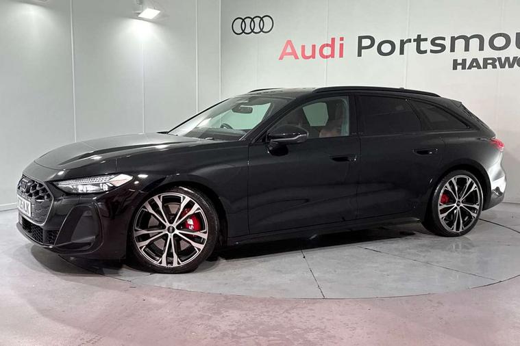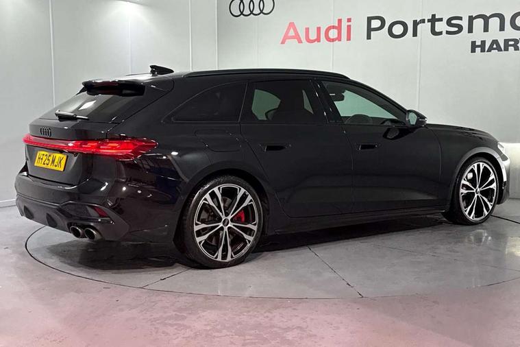 Adaptive cruise assist plus with steering intervention, Advanced driver attention and fatigue montior, Audi application store, Audi assistant, Audi connect emergency call and service, Audi drive select, Audi smartphone interface, Audi virtual cockpit plus with 11.9" OLED colour display, Automatic start/stop system with coasting functionality, Camera based traffic sign recognition, Garage door opener, Intersection assist, Lane change assistant with exit warning system, rear cross traffic alert and rear turn assist, Lane departure warning with emergency assist, MMI 10.9" front passenger touch display, MMI navigation plus with high resolution 14.5" OLED touchscreen colour display, Park assist plus, Parking system plus with 360 display, Progressive steering with servotronic, Swerve assist and turn assist, Top view camera, Traffic sign based speed limiter, Quattro with sport differential, S sports suspension with damper control lowered by 20mm, 2 USB-C ports in both the front and rear, DAB digital radio reception, Smartphone compartment with wireless charging, Aluminium window trims, Auto dimming rear view mirror, Black door handles, Black roof rails, Dark chrome-plated tailpipe trims, Digital OLED tail lights including communication light, Door mirrors - electrically adjustable, heated, folding and auto dimming on both sides, Front and rear electric windows, Front door sill trims with aluminium inlays, illuminated with 'S' logo, Headlight cleaning system, High beam assist, LED daytime running lights, LED third brake light, Matrix LED headlights with eight light signatures selectable via the MMI or the myAudi app, Panoramic glass roof with switchable transparency, Privacy glass, Rear and side windows with heat insulating glass, Rear side wing doors, Rear wash/wipe, Red S rhombus badging with S lettering on rear, S bumpers, radiator grille and diffuser in titanium matt black and diffuser insert in matt silver, White rhombus logo projection light in exterior mirrors, Windscreen with acoustic glazing, 3 rear headrests, 3 seat rear bench, 3 spoke leather steering wheel with multi-function buttons with touch control, flattened on top and bottom, with S badging and contrast stitching, 3-zone automatic climate control, 40:20:40 split folding rear seat bench with centre armrest and cup holders, Comfort front centre armrest, Electric steering wheel adjustment, Electrically adjustable front seats, Front and rear floor mats, Front sport seats plus with integrated headrest and S embossed logo, Headlining in black cloth, Heated front and outer rear seats, Heated steering wheel, i-Size child seat mounting on the front passenger side and outer rear seats, i-Size and top tether on the outer rear seats, Luggage compartment lid, electrically opening and closing, Memory function for driver seat, Pearl Nappa leather upholstery, Pneumatically adjustable lumbar support, Single front passenger seat, Stainless steel pedals and footrest, Steering wheel grips in perforated leather and shift paddles, Ventilation seat and massage function for the driver and front passenger, Black styling package plus - A5, Sound and vision pack - A5, 3x3 point rear seat belts, Acoustic vehicle alerting system, Convenience key with safelock, Driver airbag, Electric child safety locks, First aid kit with warning triangle and vests, Front emergency brake assist, Front passenger airbag, Front passenger airbag deactivation, Hill hold assist, Occupant detection in rear seat area, Proactive passenger protection system for front, sides and rear, Red brake calipers, Seat belt monitoring with rear seat occupant reminder, Side airbags in front and rear with head airbag system and front interaction airbag, Tyre pressure loss indicator, Anti theft alarm, Anti-theft wheel bolts, Keyless Go, Accent surfaces and control buttons in gloss black, Black dashboard with contrast stitching, Softwrap in Dinamica with contrast stitching, Upper and lower interior elements in dinamica microfiber, 20" 5 twin spoke design Audi Sport alloy wheels in metallic black and gloss turned finish, Tyre repair kit,